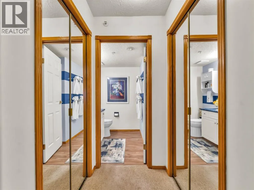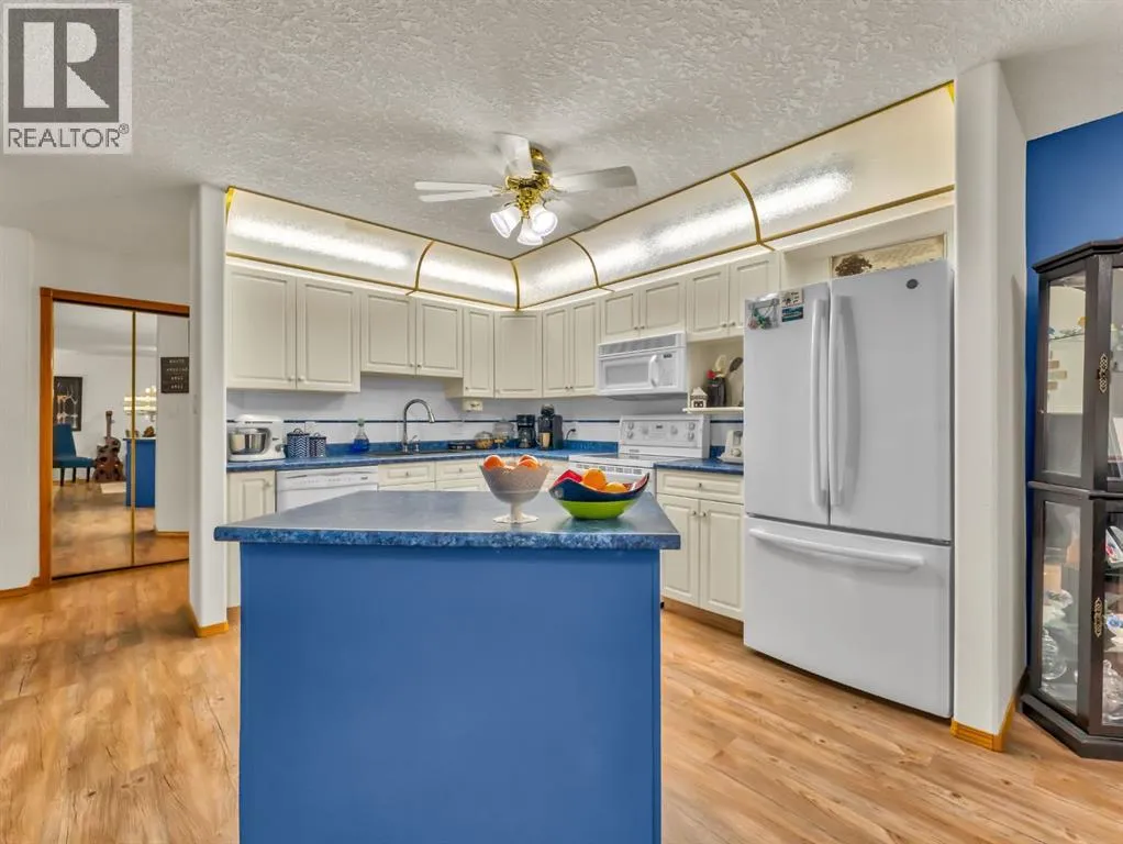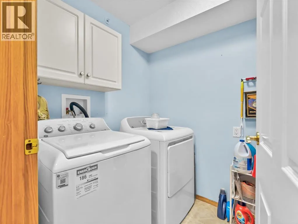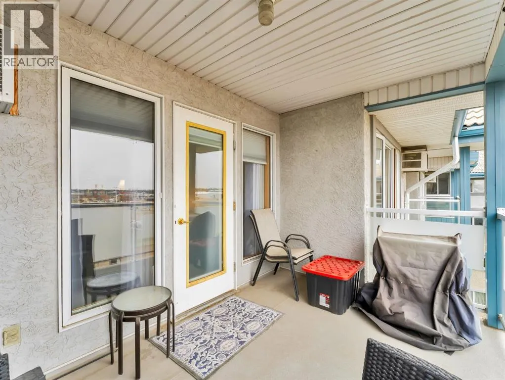 Welcome to Grandview Village â one of Medicine Hatâs most desirable 55+ condo communities.Step into this immaculate 4th-floor, 2-bed, 2-bath unit, proudly offered for sale. Lightly lived in and beautifully updated, this home is ideal for anyone looking to downsize without compromising on space, comfort, or lifestyle. The bright, open floor plan features a spacious kitchen with an updated fridge, crisp white cabinetry, generous counter space, and a convenient moveable island. The dining and living areas flow seamlessly to a large, private deck where fourth-floor views stretch all the way to the edge of the city â the perfect spot to enjoy morning coffee or evening sunsets. This unit has seen considerable updates including, paint, vinyl plank flooring, carpet in living room, black out blinds throughout, new washer + dryer. Inside, the suite is equipped with two air conditioners for exceptional summer comfort. Just steps from the elevator, and only a few more to your underground parking stall and storage, convenience is built right into daily living. Grandview Village is known for its thoughtful design with two elevators and multiple entryways, including a side/back door for quick, easy access.But what truly sets Grandview Village apart is its incredible amenities and the warm, welcoming community that thrives here. Residents enjoy a beautifully maintained indoor pool and hot tub, fitness room, billiards room, party and coffee rooms, guest suites, and a gorgeous outdoor patio for socializing or relaxing. The underground parkade features a car wash and a woodworking shop, making hobbies and upkeep a breeze.The building is ideally located close to shopping, restaurants, and everyday amenities â yet it feels peaceful, secure, and wonderfully cared for. Grandview Village is known for its friendly, like-minded residents who create a genuine sense of belonging. Whether youâre looking for connection, comfort, or convenience, youâll find it here.This is more than a cond o â itâs a lifestyle. Come experience the beauty and community of Grandview Village for yourself. (id:27476)