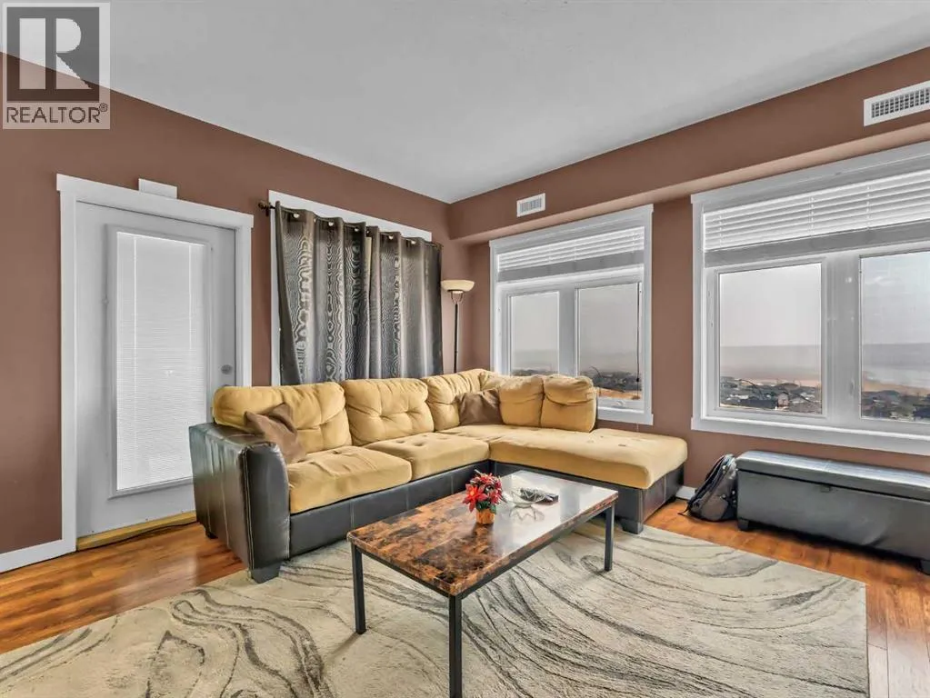 #322 19 Terrace View NE â Bright Corner Unit with Gorgeous River Valley Views. This inviting 2-bedroom, 2-bathroom corner condo offers a modern, easy-living lifestyle with sweeping views of the river valley. Thoughtfully maintained and filled with natural light, the home features a spacious open layout that feels both stylish and comfortable. The kitchen stands out with its granite countertops, stainless steel appliances, and a generous islandâperfect for meal prep, casual dining, or entertaining. It opens seamlessly into the dining area and living room, where large windows create a warm and airy atmosphere. From here, step onto your private covered deck, an excellent place to relax with a morning coffee, unwind in the evening, or fire up the barbecue in the summer. The primary bedroom includes a walk-through closet that leads to a private 3-piece ensuite, offering great storage and convenience. A second bedroom and full 4-piece bathroom add versatility for guests, work-from-home needs, or hobbies. Youâll also appreciate the in-suite laundry and the included underground parking stall. The building is pet-friendly (with restrictions) and has no age restrictions, making it an excellent option for a wide range of buyers. Condo fees are $457/month and cover all utilities and maintenance, including electricity, heat, water, sewer, trash, snow removal, grounds upkeep, parking, and the reserve fundâproviding truly worry-free living. A fantastic opportunity to enjoy comfort, convenience, and exceptional views in a desirable NE location. (id:27476)