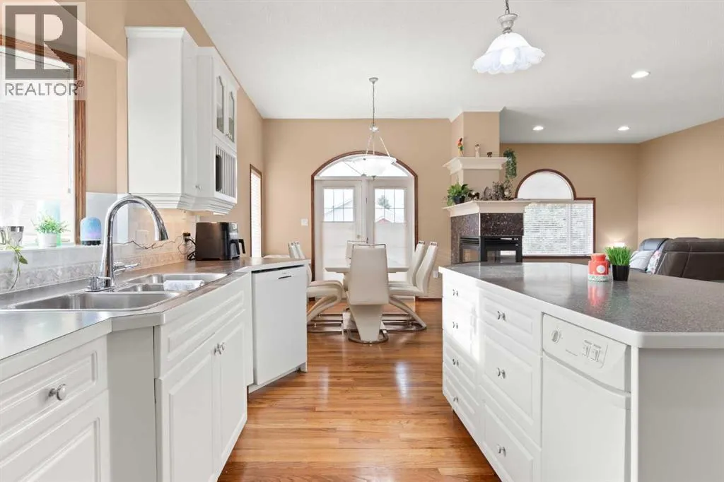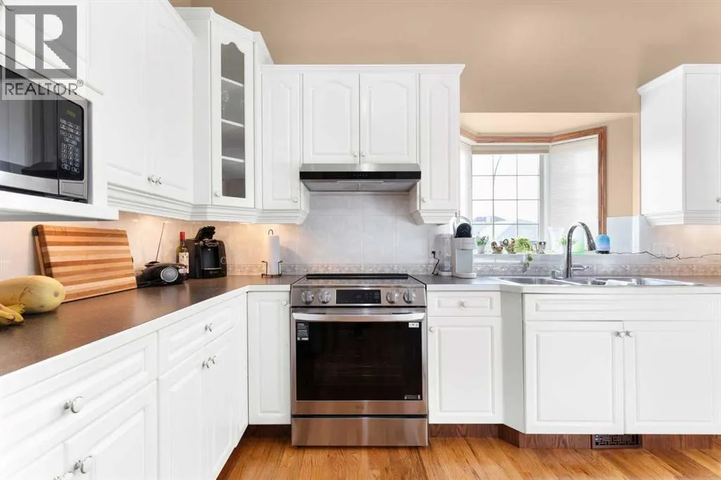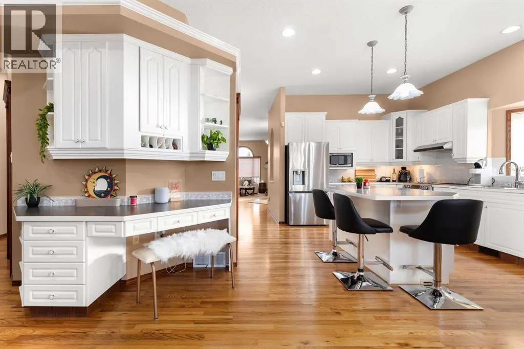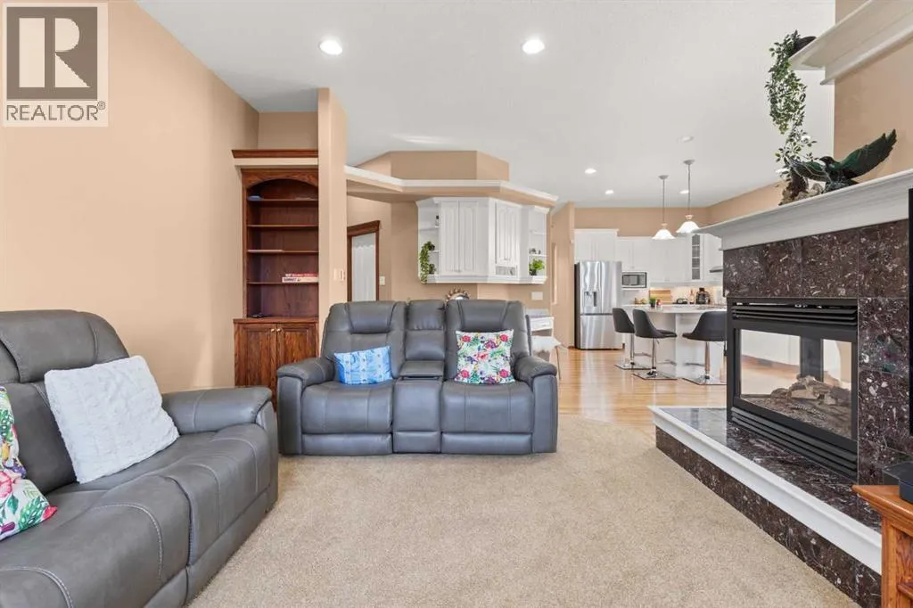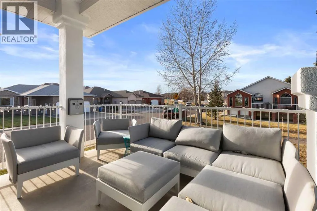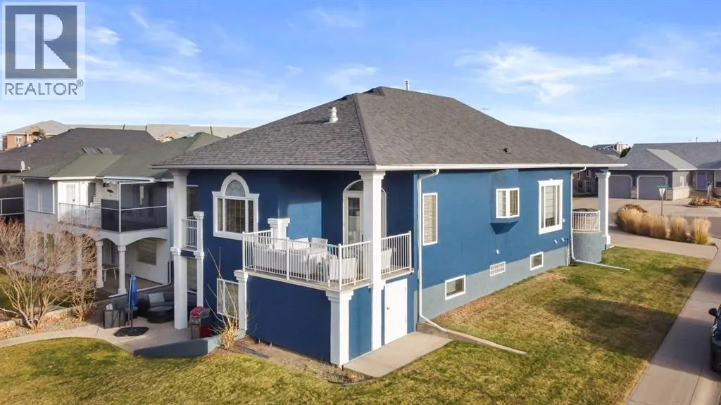 Executive walkout bungalow backing onto green space - designed for comfort, style, and everyday practicality. This impressive walkout bungalow offers an exceptional blend of luxury and livability in one of Medicine Hatâs most established neighbourhoods. From the moment you step inside, the bright, open atmosphere and meticulous care are impossible to miss. The main floor welcomes you with soaring 9â ceilings, warm hardwood flooring, and an abundance of natural light. Just off the entry are two flexible rooms that can adapt to your lifestyle...perfect for a professional couple needing dual offices, a craft or music space, or with a bit of work it could be an additional bedroom if required. The kitchen is bright and functional, offering plenty of cabinetry and an island that makes prep work easy, and features a brand new fridge and induction stove! Kitchen overlooks the dining and living areas, all tied together by a beautiful three-sided gas fireplace that creates a cozy atmosphere throughout the main living space. A well-designed mudroom sits off the laundry area and includes extra storage, an additional refrigerator for entertaining, and the potential to create a walk-in pantry. The primary suite provides a peaceful getaway with its own access to the private upper balcony, an ideal spot for morning coffee overlooking the green space behind the home. A relaxing ensuite with a soaker tub and a generous walk-in closet complete this private haven. Downstairs, the walkout level offers incredible space and versatility. A large family room, four roomy bedrooms, and two full bathrooms, including a Jack-and-Jill, make this floor perfect for a growing family that wants all the kidsâ bedrooms together on one level. It also caters beautifully to professionals or couples who need multiple workspaces or room for guests. Large windows and direct access to the covered patio make the lower level feel bright and connected to the outdoors. The yard is fully landscaped, features under ground sprinklers, and opens directly onto peaceful green space and walking paths. With no neighbours directly behind, the setting feels private and serene. Additional features youâll appreciate - Updated exterior for modern curb appeal, some newer appliances, 24x26 attached and finished garage, drive-through driveway for easy parking and trailer convenience, extra storage tucked beneath the back deck. Key mechanical upgrades: newer shingles, high-efficiency zoned furnace, hot water tank, central A/C, and fresh interior paint. If youâve been searching for a spacious, beautifully kept home with a walkout basement and an unbeatable location, this one checks every box. Move-in ready and designed for a professional couple, a growing family, or anyone who values both space and quality. (id:27476)
