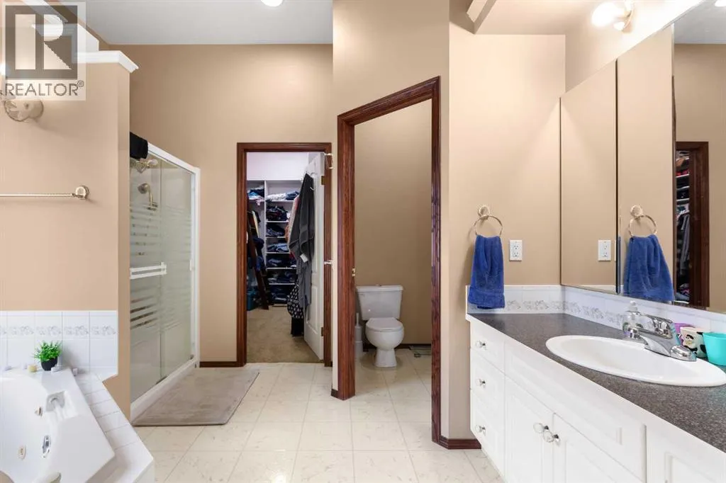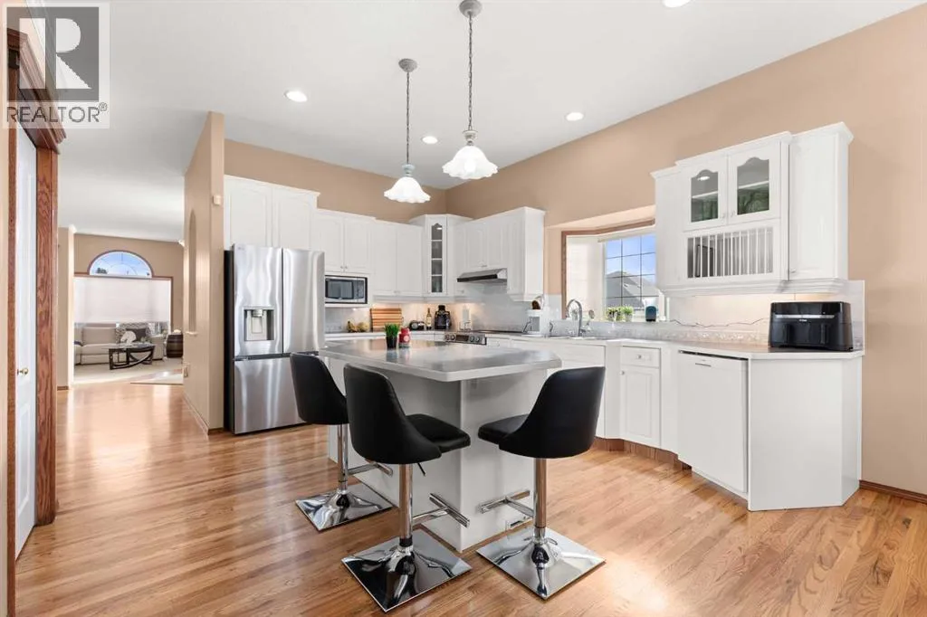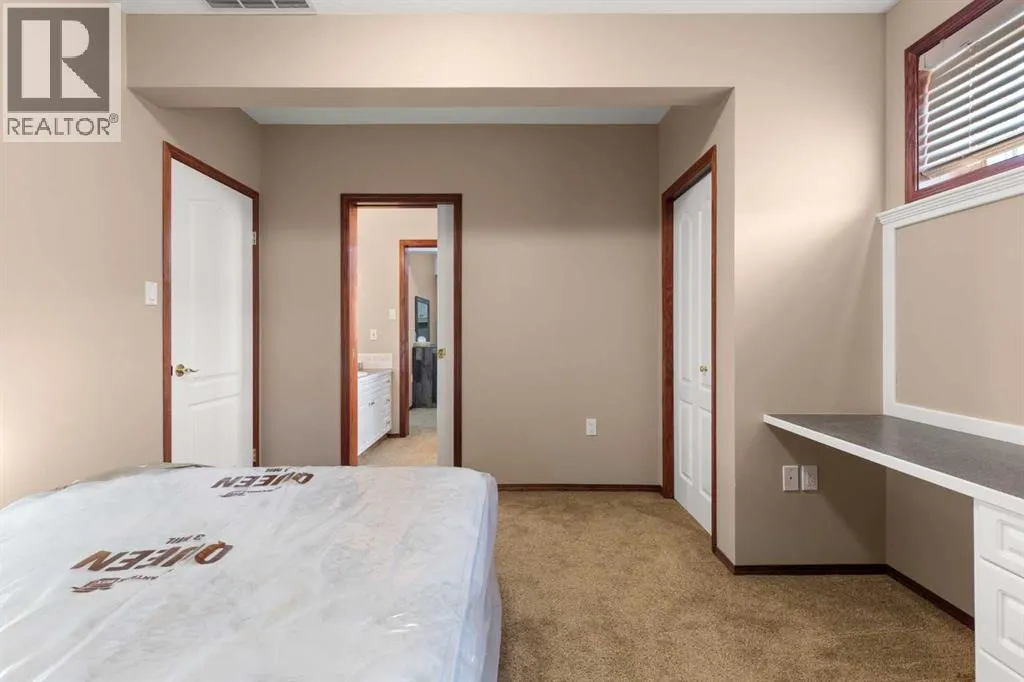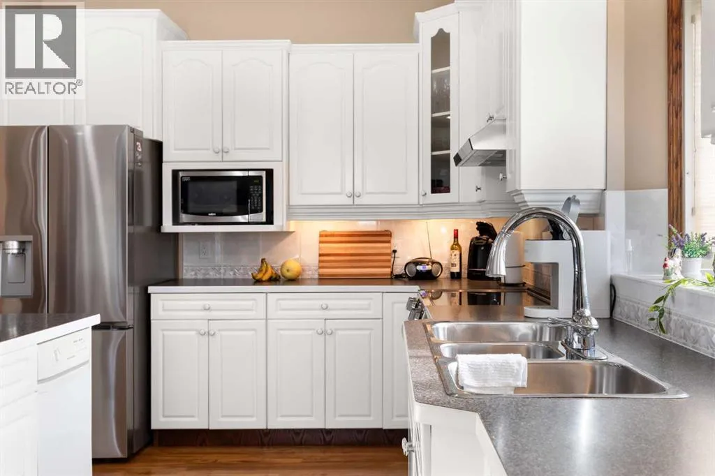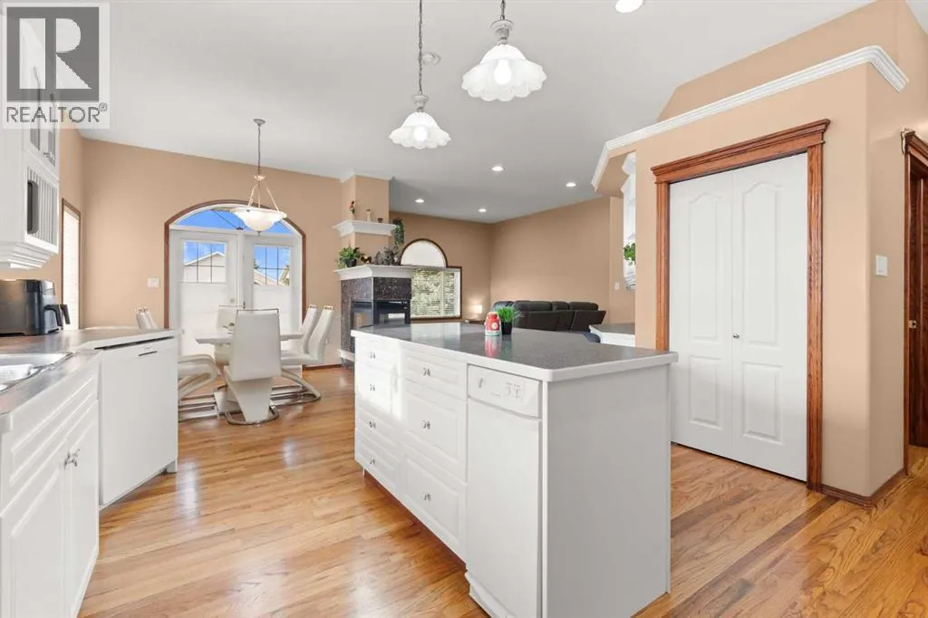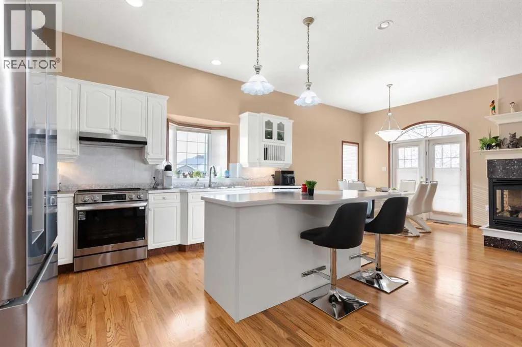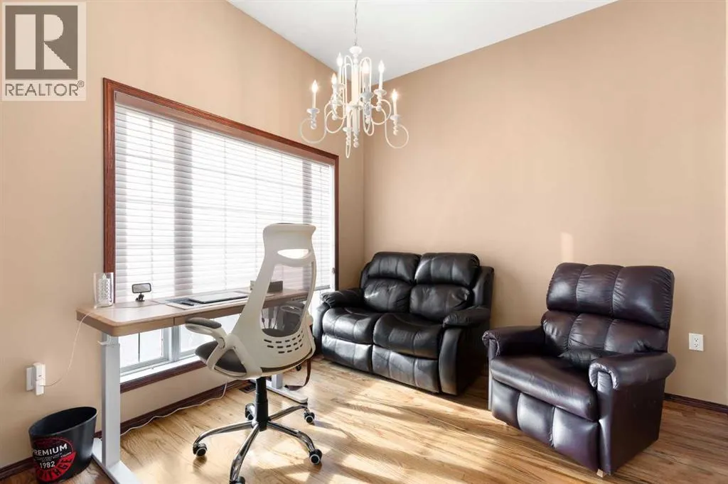 Executive walkout bungalow backing onto green space - designed for comfort, style, and everyday practicality. This impressive walkout bungalow offers an exceptional blend of luxury and livability in one of Medicine Hatâs most established neighbourhoods. From the moment you step inside, the bright, open atmosphere and meticulous care are impossible to miss. The main floor welcomes you with soaring 9â ceilings, warm hardwood flooring, and an abundance of natural light. Just off the entry are two flexible rooms that can adapt to your lifestyle...perfect for a professional couple needing dual offices, a craft or music space, or with a bit of work it could be an additional bedroom if required. The kitchen is bright and functional, offering plenty of cabinetry and an island that makes prep work easy, and features a brand new fridge and induction stove! Kitchen overlooks the dining and living areas, all tied together by a beautiful three-sided gas fireplace that creates a cozy atmosphere throughout the main living space. A well-designed mudroom sits off the laundry area and includes extra storage, an additional refrigerator for entertaining, and the potential to create a walk-in pantry. The primary suite provides a peaceful getaway with its own access to the private upper balcony, an ideal spot for morning coffee overlooking the green space behind the home. A relaxing ensuite with a soaker tub and a generous walk-in closet complete this private haven. Downstairs, the walkout level offers incredible space and versatility. A large family room, four roomy bedrooms, and two full bathrooms, including a Jack-and-Jill, make this floor perfect for a growing family that wants all the kidsâ bedrooms together on one level. It also caters beautifully to professionals or couples who need multiple workspaces or room for guests. Large windows and direct access to the covered patio make the lower level feel bright and connected to the outdoors. The yard is fully landscaped, features under ground sprinklers, and opens directly onto peaceful green space and walking paths. With no neighbours directly behind, the setting feels private and serene. Additional features youâll appreciate - Updated exterior for modern curb appeal, some newer appliances, 24x26 attached and finished garage, drive-through driveway for easy parking and trailer convenience, extra storage tucked beneath the back deck. Key mechanical upgrades: newer shingles, high-efficiency zoned furnace, hot water tank, central A/C, and fresh interior paint. If youâve been searching for a spacious, beautifully kept home with a walkout basement and an unbeatable location, this one checks every box. Move-in ready and designed for a professional couple, a growing family, or anyone who values both space and quality. (id:27476)