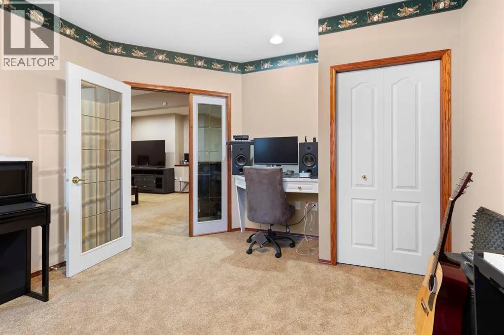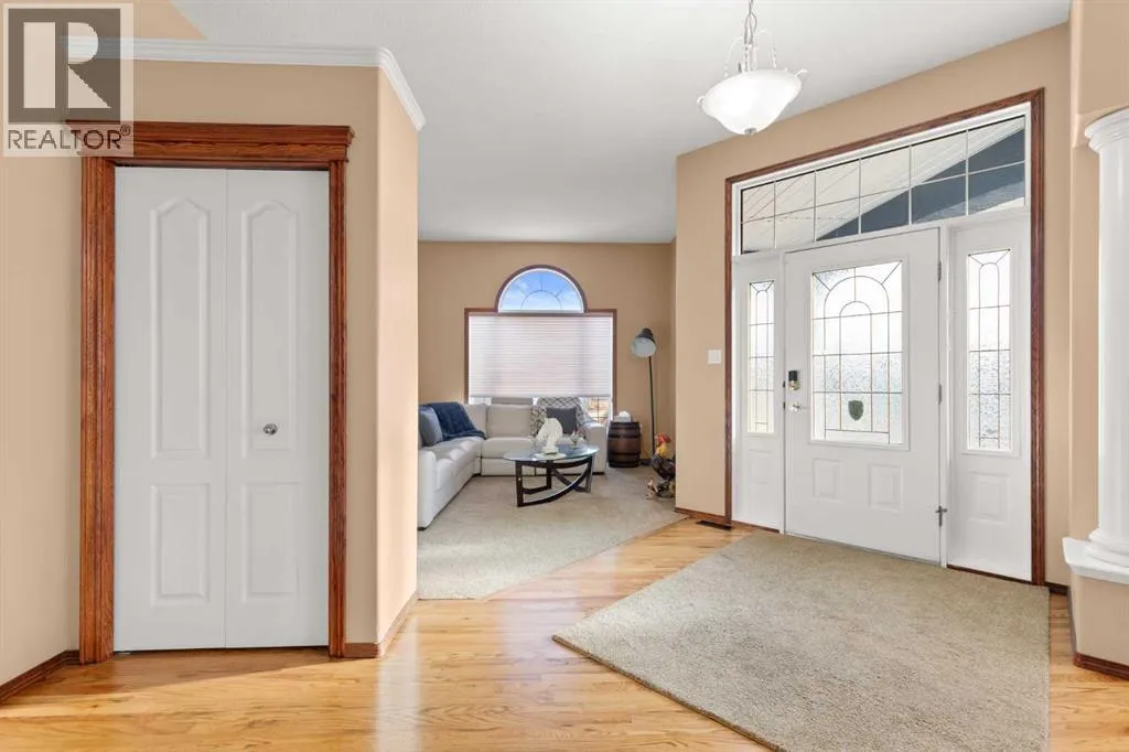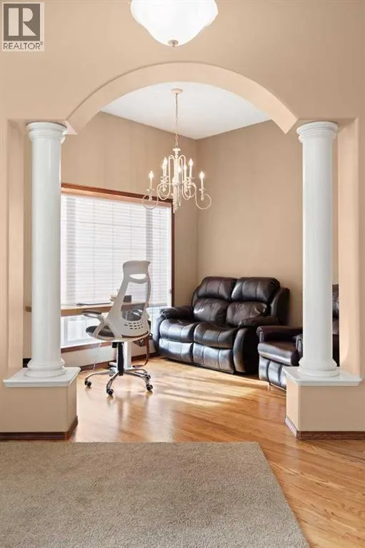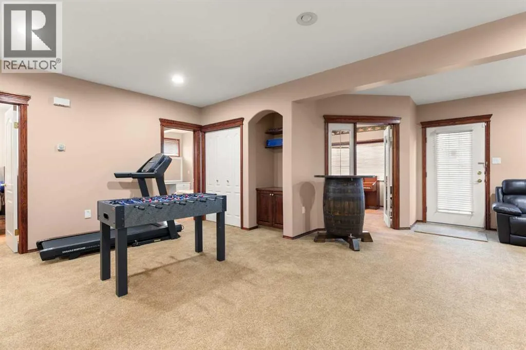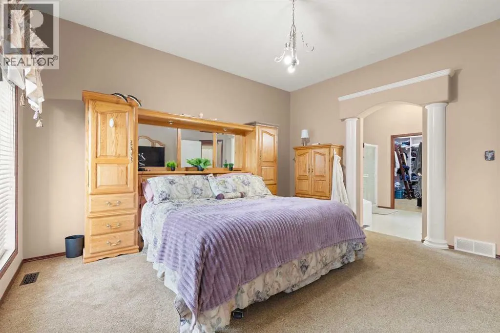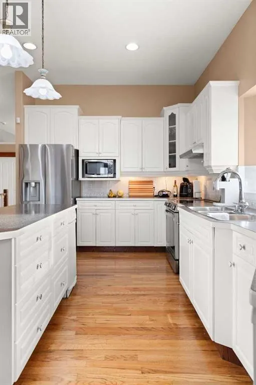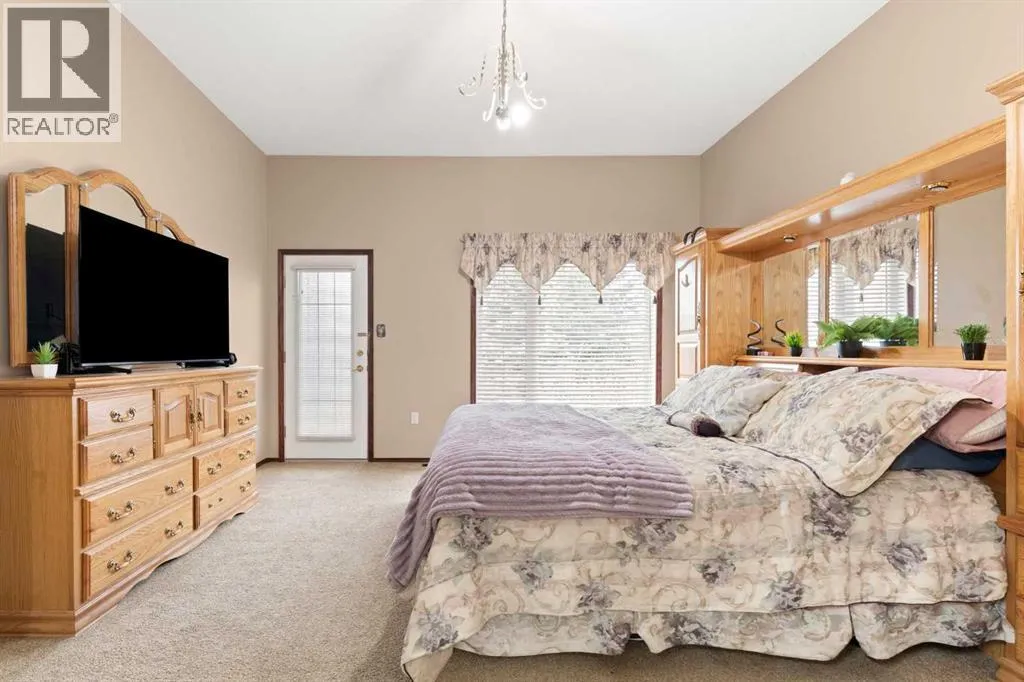 Executive walkout bungalow backing onto green space - designed for comfort, style, and everyday practicality. This impressive walkout bungalow offers an exceptional blend of luxury and livability in one of Medicine Hatâs most established neighbourhoods. From the moment you step inside, the bright, open atmosphere and meticulous care are impossible to miss. The main floor welcomes you with soaring 9â ceilings, warm hardwood flooring, and an abundance of natural light. Just off the entry are two flexible rooms that can adapt to your lifestyle...perfect for a professional couple needing dual offices, a craft or music space, or with a bit of work it could be an additional bedroom if required. The kitchen is bright and functional, offering plenty of cabinetry and an island that makes prep work easy, and features a brand new fridge and induction stove! Kitchen overlooks the dining and living areas, all tied together by a beautiful three-sided gas fireplace that creates a cozy atmosphere throughout the main living space. A well-designed mudroom sits off the laundry area and includes extra storage, an additional refrigerator for entertaining, and the potential to create a walk-in pantry. The primary suite provides a peaceful getaway with its own access to the private upper balcony, an ideal spot for morning coffee overlooking the green space behind the home. A relaxing ensuite with a soaker tub and a generous walk-in closet complete this private haven. Downstairs, the walkout level offers incredible space and versatility. A large family room, four roomy bedrooms, and two full bathrooms, including a Jack-and-Jill, make this floor perfect for a growing family that wants all the kidsâ bedrooms together on one level. It also caters beautifully to professionals or couples who need multiple workspaces or room for guests. Large windows and direct access to the covered patio make the lower level feel bright and connected to the outdoors. The yard is fully landscaped, features under ground sprinklers, and opens directly onto peaceful green space and walking paths. With no neighbours directly behind, the setting feels private and serene. Additional features youâll appreciate - Updated exterior for modern curb appeal, some newer appliances, 24x26 attached and finished garage, drive-through driveway for easy parking and trailer convenience, extra storage tucked beneath the back deck. Key mechanical upgrades: newer shingles, high-efficiency zoned furnace, hot water tank, central A/C, and fresh interior paint. If youâve been searching for a spacious, beautifully kept home with a walkout basement and an unbeatable location, this one checks every box. Move-in ready and designed for a professional couple, a growing family, or anyone who values both space and quality. (id:27476)