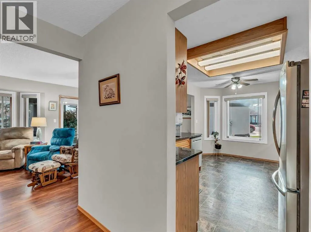 Spacious and inviting, this 1,324 sq. ft. half-duplex is located in the highly desirable, executive 55+ bareland condominium community of Park Meadows Estates. This well-kept bungalow offers a walk-out basement and backs onto the gorgeous park, providing beautiful views and a serene setting. A double attached heated garage, updated windows throughout, a newer hot water tank, a brand-new high-efficiency furnace, comfort-height toilets, and new taps allow you to simply move in and enjoy. Inside, a large front entry welcomes you into the home. To your left sits the generous primary bedroom complete with a 3-piece ensuite and walk-in shower. The kitchen features granite countertops, a newer stainless steel appliance package, and a charming nook perfect for an eat-in area, coffee bar, or bistro table. Adjacent to the kitchen is the spacious formal dining room and living room, with access to a partially enclosed, partially open deck ideal for relaxing or BBQing. Down the hall youâll find a 4-piece main bathroom, convenient main-floor laundry, and an additional well-sized bedroom. The bright walk-out basement offers abundant natural light, a cozy gas fireplace, a wet bar, and access to a lovely covered patio area. A versatile room with a closetâperfect for a den, office, or craft roomâa 3-piece bathroom, and ample storage complete the lower level. This beautifully maintained home offers comfort, convenience, and an unbeatable location. (id:27476)
