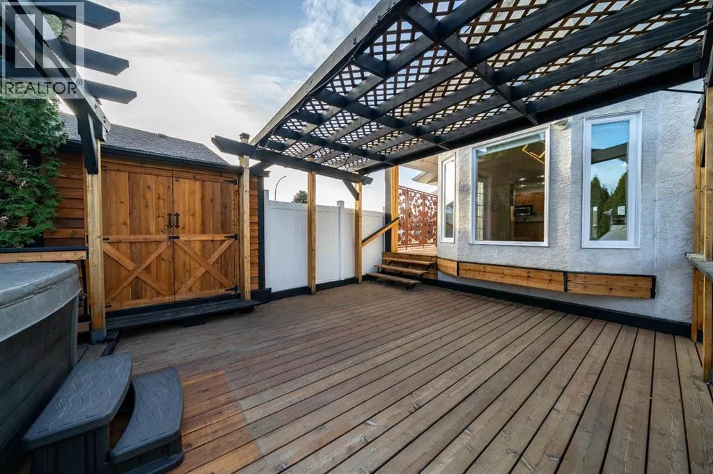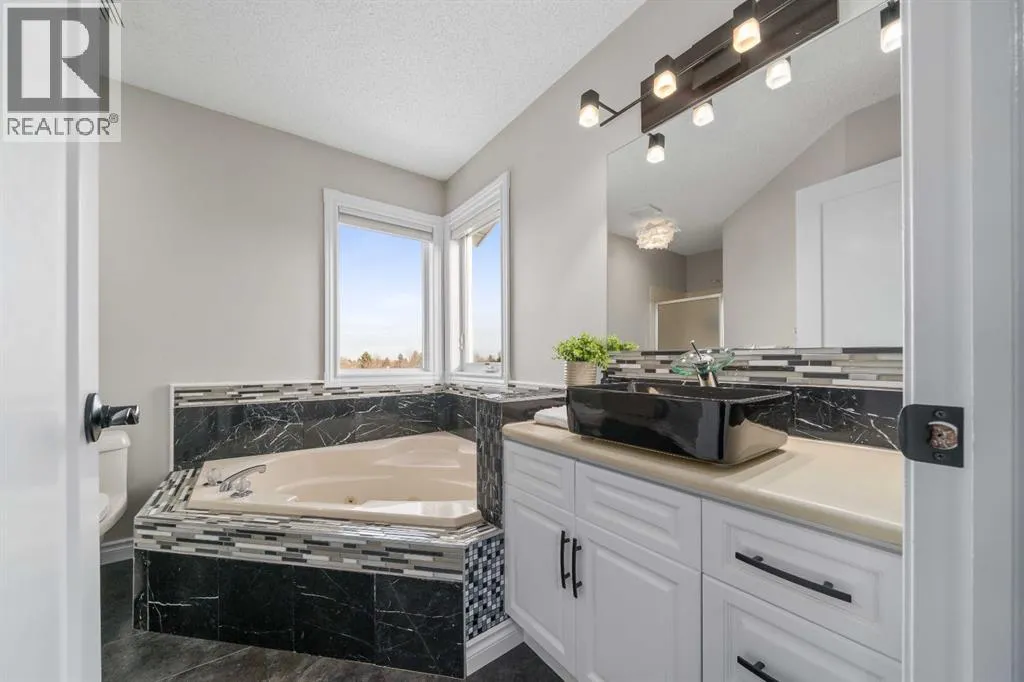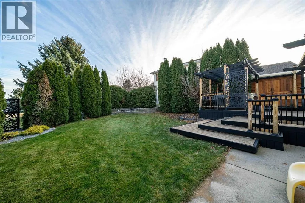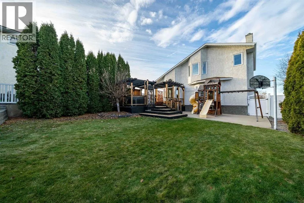 Welcome to this beautiful 2-Storey Split backing onto a green space! Offering 2,024 sq/ft above grade, plus a fully finished basement of 1,195 sq/ft, giving his home a total of 3,219 sq/ft of finished living space! This thoughtfully designed home delivers incredible space, natural light, and a layout perfect for families. The main floor is warm and welcoming with vaulted ceilings, a bright skylight, and a formal living room and dining space at the front of the home. Toward the back, youâll find the kitchen along with a second dining space, as well as a cozy sunken family room with a gas fireplace, ideal for movie nights. A convenient main-floor 4th bedroom or office, 3pc bathroom, and a laundry room with ample storage provide everyday function. Direct access to the double attached garage is an added bonus. Upstairs features three bedrooms, including a generous primary suite with a 4pc ensuite and walk-in closet, plus an additional 4pc bathroom for kids or guests. The basement expands your living space with a large rec room featuring a second gas fireplace, one bedroom, 4pc bathroom and a denâperfect for hobbies, a playroom, or extra storage. Outside, the yard is private and mature with beautiful trees, a large deck with pergolas, hot tub, concrete patio space, and a good-sized yard to boot. Best of all, it backs onto a green space, giving you a peaceful, open feel. Recent upgrades include: New vinyl windows (2023/24), Deck ~4 years ago, A/C unit ~6 years old, Shingles updated in 2012. This home is spacious, comfortable, and in a desirable location close to the Medicine Hat Mall, lots of restaurants and other shopping. Come see for yourself and take a look at this move-in ready family home, with some big-ticket updates already taken care of! (id:27476)