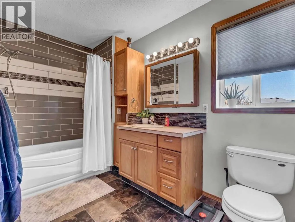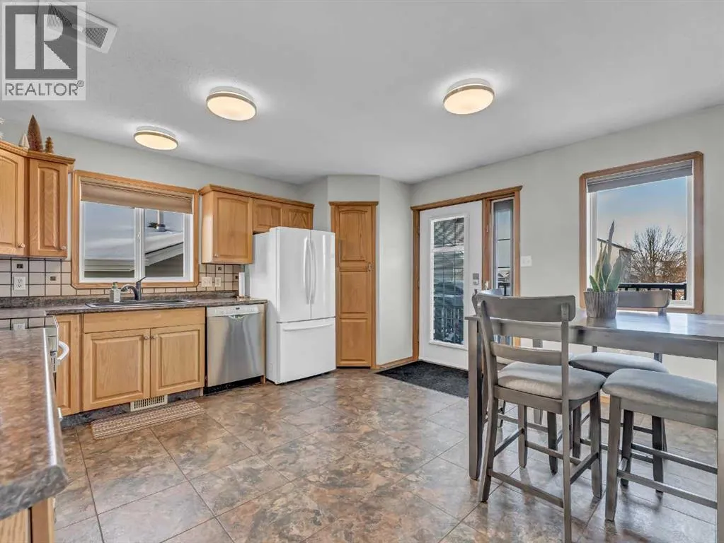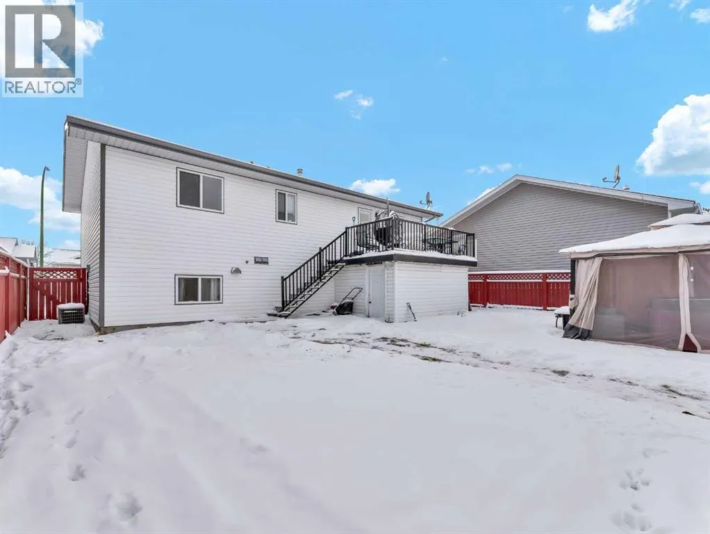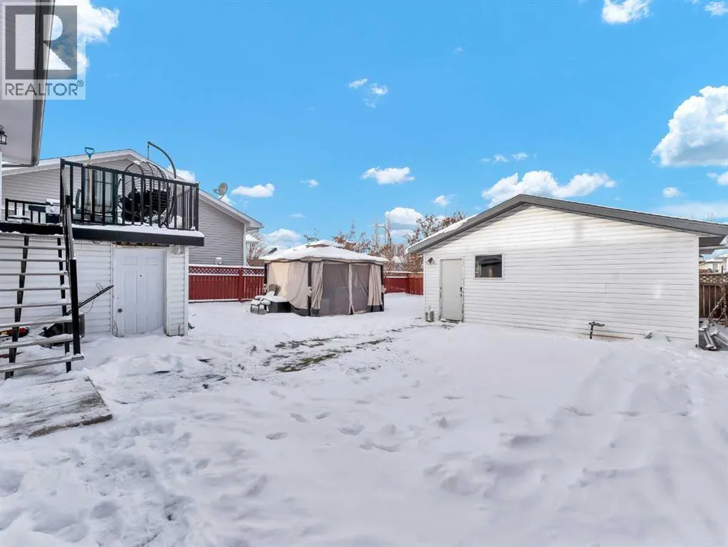 Bright and inviting, this great home offers 4 bedrooms and 3 bathrooms across a functional and comfortable layout. The upper level features a distinctive living room that creates impressive ceiling height, with two short steps leading up to a spacious, eat-in kitchen. This kitchen offers an efficient L-shaped design, a pantry and door onto the back deck over looking the yard. Down the hall, youâll find main-floor laundry, a generous 4-piece bathroom, a secondary bedroom, and the primary suite, complete with a 3-piece ensuite and double closets. The fully developed basement provides a versatile open area. It also includes a 2-piece bathroom with a door to one of the basement bedrooms, along with an additional fourth bedroom to complete the floor plan.Outside, the property offers an upper deck, a fully fenced and landscaped yard, and a double heated detached garage with alley access. The charming curb appeal is enhanced by a double driveway, providing ample overflow parking. This is a perfect place to call home. (id:27476)