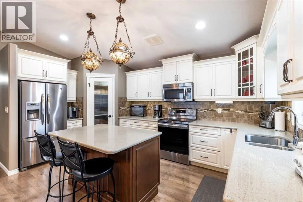 This charming bungalow in Southlands offers great curb appeal and a layout that works well for a variety of lifestyles.When you enter the home, youâre greeted by a bright office (or extra bedroom) off the front, followed by an east-facing living room that fills with morning light. The kitchen and dining area provide plenty of space for gathering with family and friends, and the kitchen is thoughtfully designed with slow-close cabinets, quartz countertops, a walk-in pantry, stainless steel appliances, and a door off the dining area that leads to the deckâperfect for barbecuing and enjoying the outdoors.The primary bedroom features a tray ceiling with ambient lighting, a walk-in closet, and a 4-piece ensuite. Thereâs also a second bedroom and a 4-piece bathroom on the main floor, along with main-floor laundry. From the hallway, youâll find access to the attached garage, which is a standout feature with its 13-foot ceilings, heat, and excellent storage options.Downstairs offers a ton of additional living space, including a large bedroom with a walk-in closet, a comfortable family room with a feature wall and electric fireplace, and a beautifully finished 3-piece bathroom with a walk-in shower. An additional unfinished room provides great storage or could easily be developed into a yoga room, playroom, or craft space.The home also includes a central vac, tankless water heater, underground sprinklers, vinyl fencing, and low-maintenance landscaping. Itâs in a great locationâclose to shopping, restaurants, parks, and all the amenities Southlands has to offer. (id:27476)