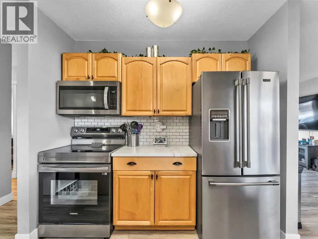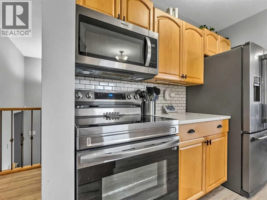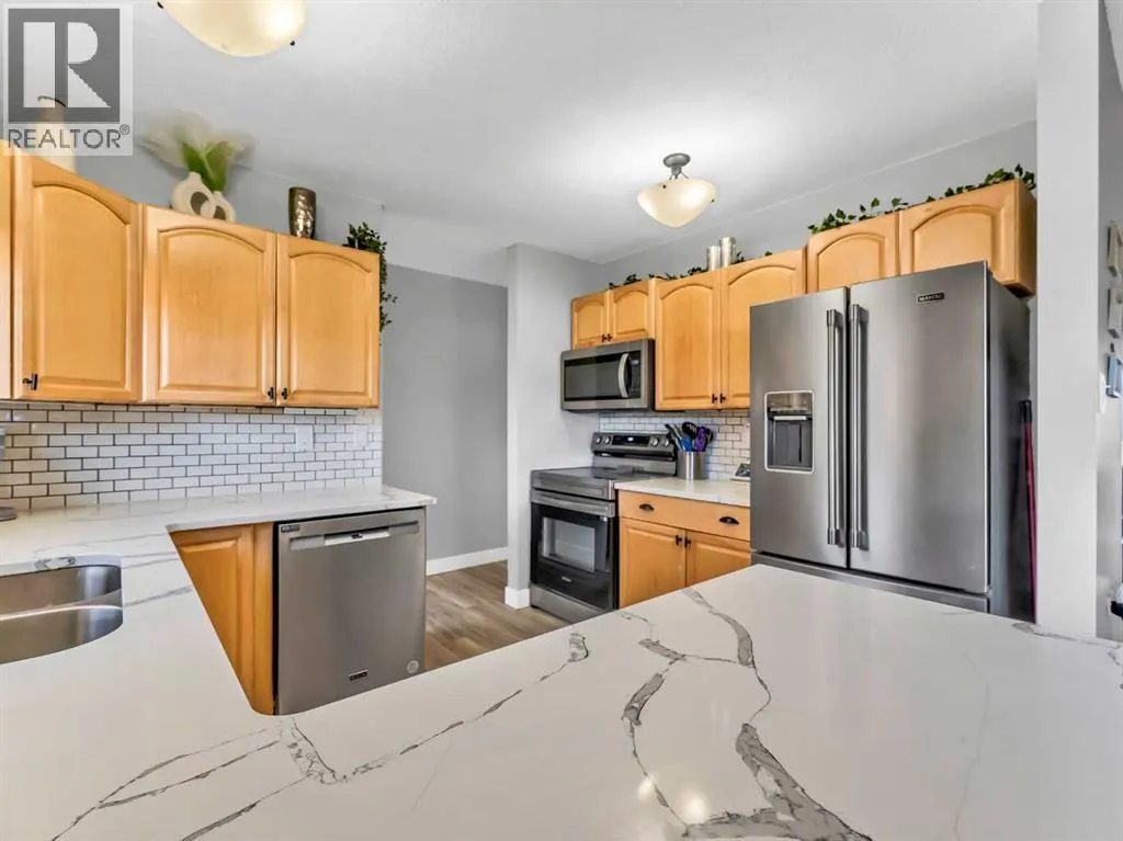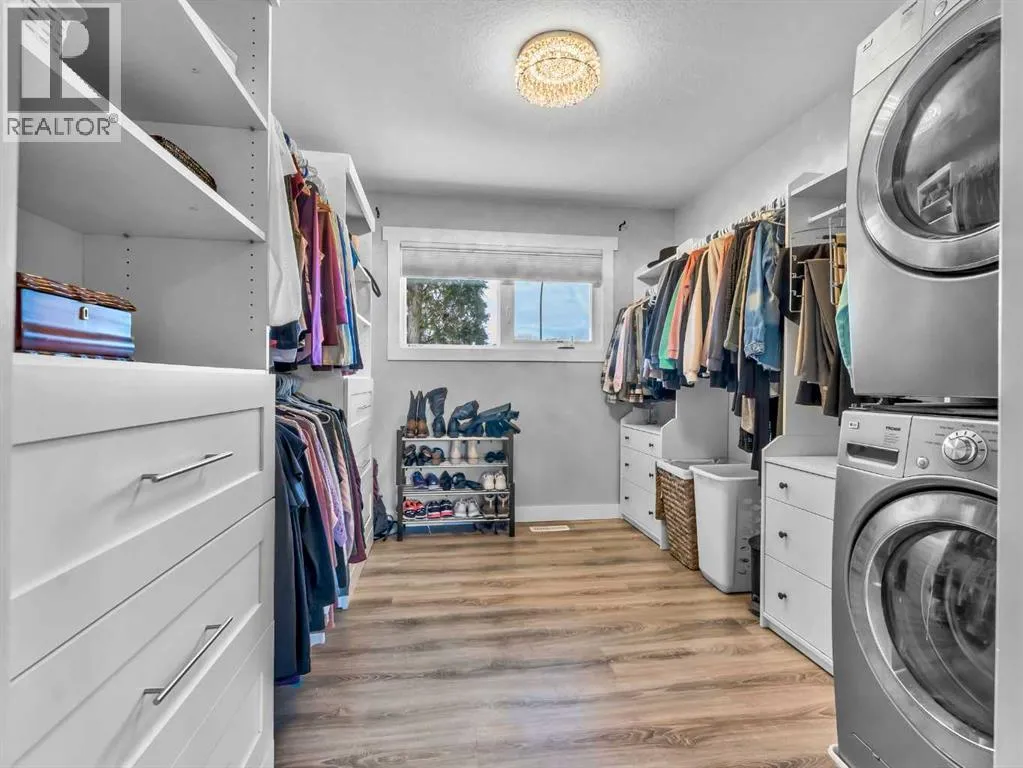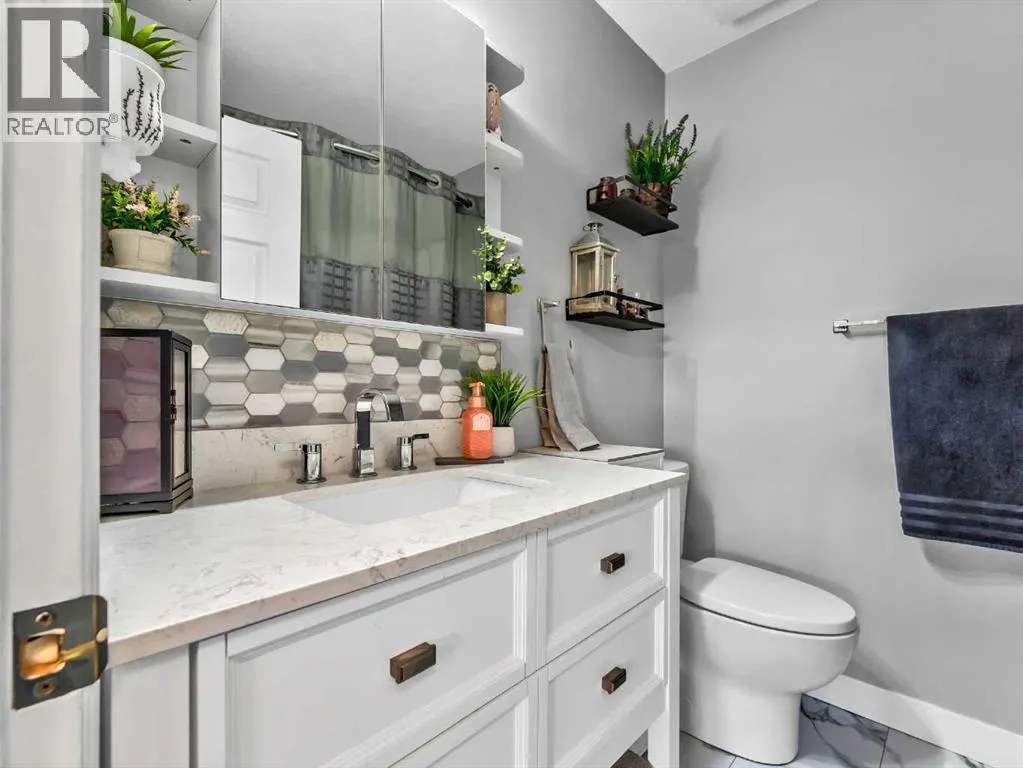 Welcome to this beautifully renovated bi-level home, ideally situated on a large corner lot in a NE Crescent Heights sought-after neighborhood. Located adjacent to a green space with a playground, this home is perfectly positioned for families, kids, or visiting grandkids to enjoy outdoor fun just steps from your door. Updated from top to bottom, this move-in-ready home showcases modern flooring, updated lighting, new windows, new kitchen and bathrooms, and fresh paint throughout. The inviting layout is filled with bright natural light and offers a warm, cozy feel from the moment you step inside. Convenient locker-style closets at both the front and back entrances add everyday functionality and organization. The main level features two bedrooms, including a spacious primary bedroom with a two-piece ensuite, a generous walk-in closet with built-in shelving, and the added convenience of a stackable washer and dryer. The fully developed basement offers a comfortable family room, two additional bedrooms, a four-piece bathroom, ample storage, and a second laundry area with washer and dryerâperfect for busy households or guests. Outside, the fully fenced yard is beautifully landscaped with underground sprinklers, offering both privacy and ease of maintenance. An oversized 24â x 28â garage, ample driveway space, and additional off-street parking provide excellent parking options. Added features include all window coverings, exterior security cameras, and a doorbell camera for peace of mind. Located close to the Medicine Hat Golf & Country Club, Big Marble Go Centre, shopping, dining, and amenities, this home combines lifestyle, location, and quality in one exceptional package. With outstanding curb appeal and nothing left to do but move in, this home wonât last long. (id:27476)