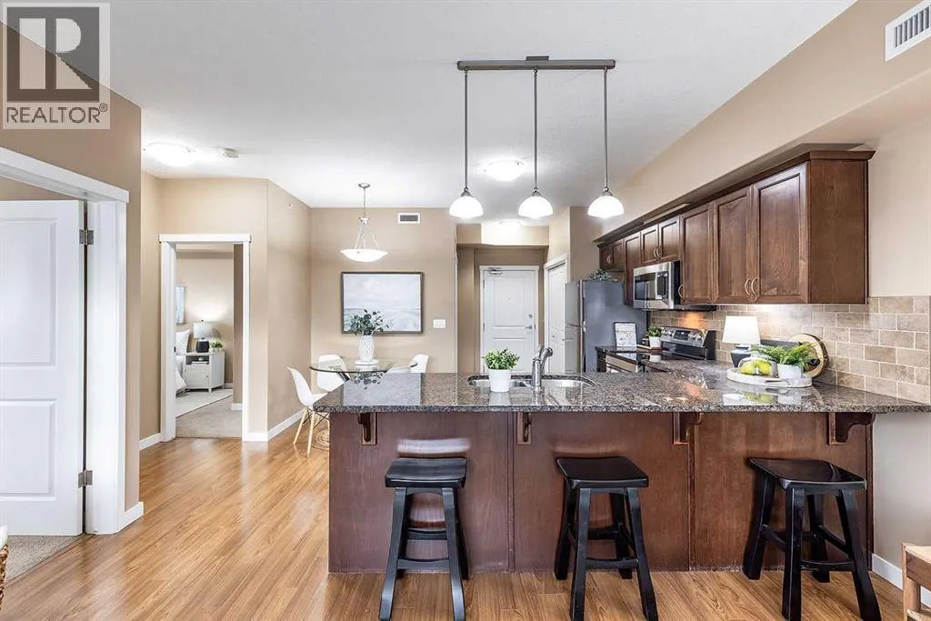 Top-Floor Corner Condo with River Valley Views from Balcony! Welcome to this bright and inviting two-bedroom, one-bath condo perfectly situated in one of Terrace's most desirable neighbourhoods. Enjoy peaceful living and beautiful views from your top-floor corner unit - with no one above you and no shared bedroom walls! Step inside to discover a spacious open concept layout ideal for relaxing or entertaining. The well-designed kitchen offers abundant cabinetry and counter space, a convenient island, granite countertops, tile backsplash, and a full BRAND NEW appliance package. The dining area provides plenty of room for everyday meals or hosting friends. The living room is flooded with natural light from large windows and enjoys direct access onto the covered balcony - the perfect spot to unwind and take in the serene views of the river valley. The primary bedroom is a bright retreat with window on two sides, while the second bedroom is equally versatile - perfect for a roommate, guest space, child's room, or home office. A four-piece bathroom is conveniently located between the bedrooms, and in-suite laundry adds everyday ease. Extras include a heated underground parking stall and secure storage locker, ensuring your vehicle and belongings are safe and protected year-round. Condo fees conveniently include all utilities, pets are welcome with some restrictions, and there are no age restrictions. There's even an option to purchase a second titled exterior parking stall - ask your Realtor for details. With immediate possession available, all that's left to do is move in and enjoy the low-maintenance lifestyle you've been looking for - complete with stunning views and a prime location! (id:27476)