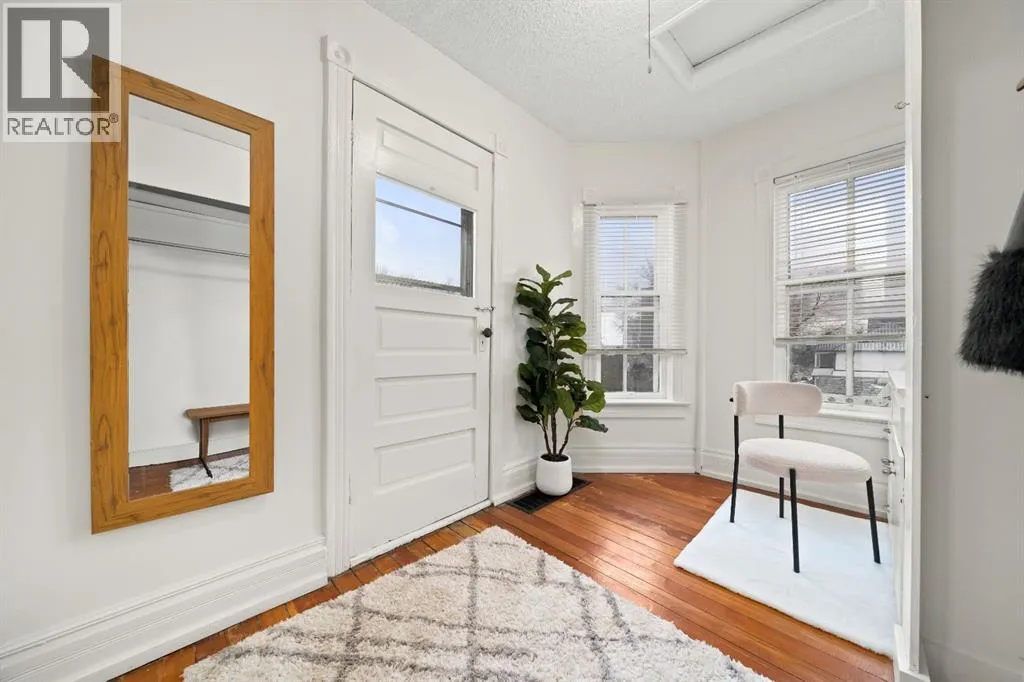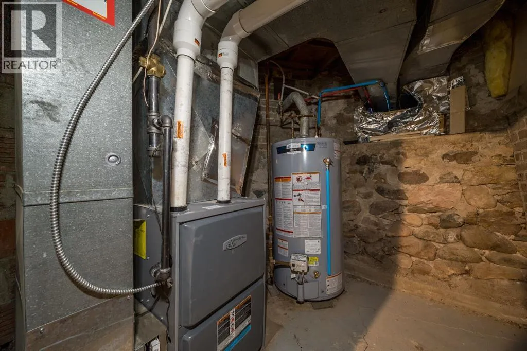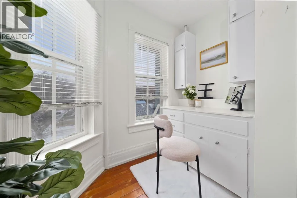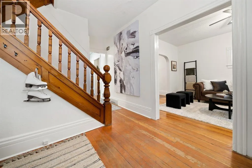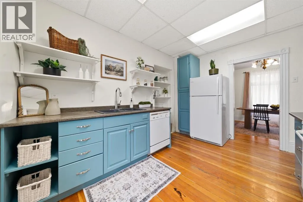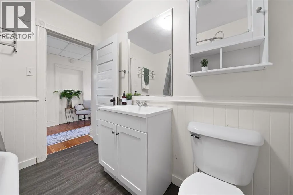 Step into a storybook at this enchanting 1906 character home. With its striking turret and castle like presence, this home is truly one of a kind!! Inside, youâre greeted by a warm and welcoming entryway showcasing the grand original staircase. The main floor flows beautifully through the living room, dining area and upgraded kitchen, making it perfect for both everyday living and entertaining. Upstairs features 2 bedrooms, an office that could easily be used as a bedroom and a 4-piece bathroom with a classic clawfoot tub. The primary bedroom offers a walk-in closet / dressing room with direct access to the patio. The basement provides a large laundry room and additional versatile space ideal for storage, a recreation room, or creative use. At the back of the home, an attached non-conforming suite adds incredible flexibility, complete with one bedroom, one bathroom, and private patio doors opening onto its own deck. Perfect for guests, extended family, or even supplemental income! Completing the property is a heated double detached garage along with ample off street parking for an RV or motorhome . The home is situated on a multi-use lot. Upgrades to the property include a recently updated bathroom, plumbing updates, a newer hot water tank (2022), a high-efficiency furnace (2023). Call your favourite REALTOR® today to book a showing! (id:27476)