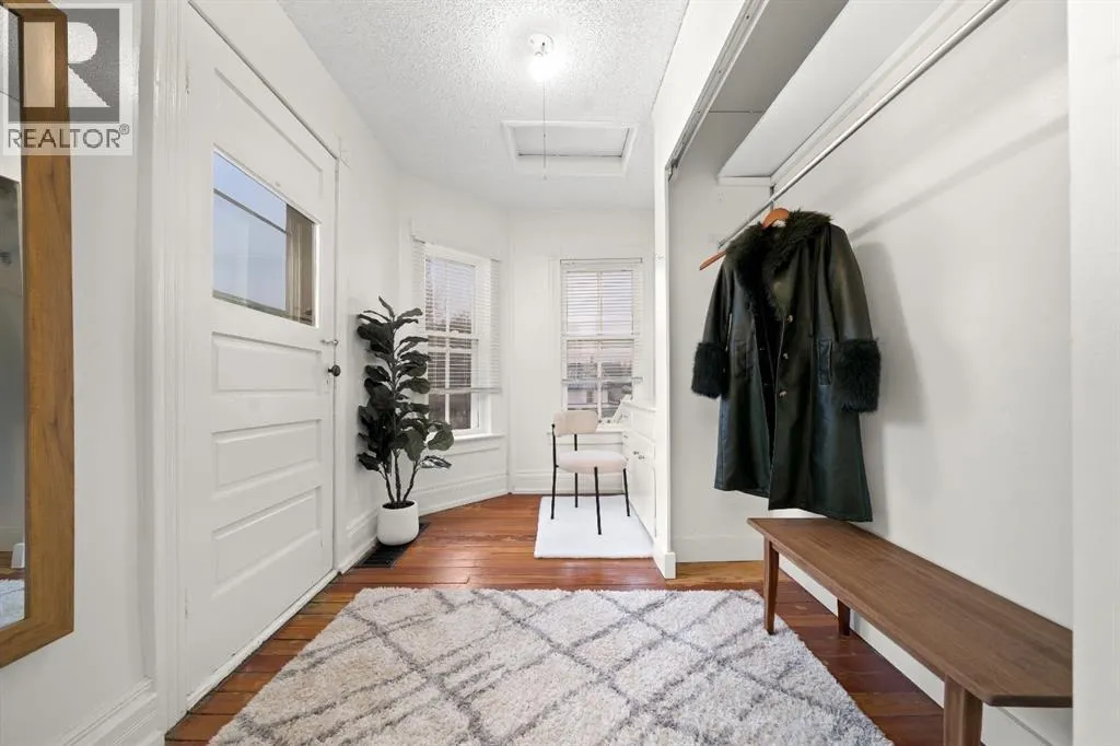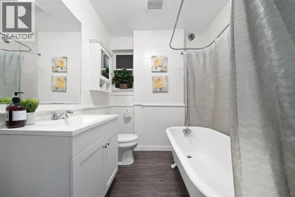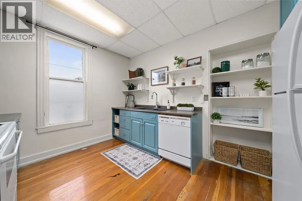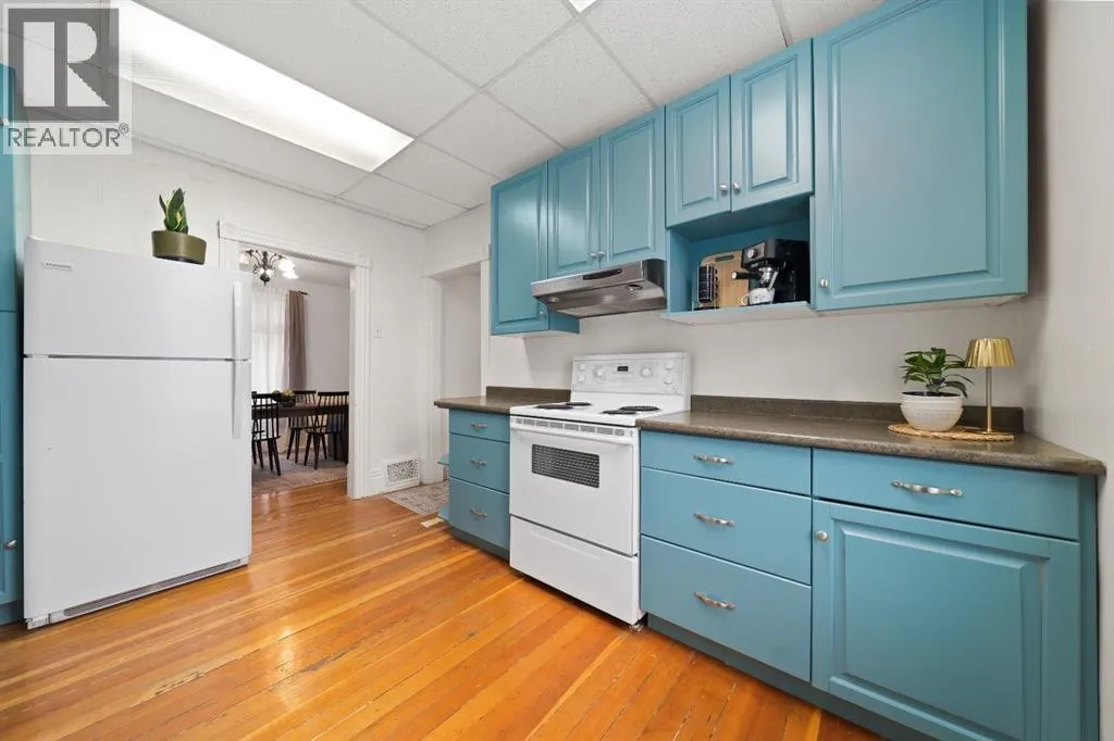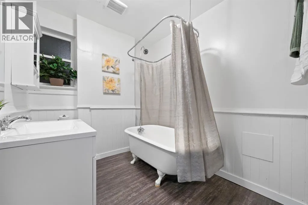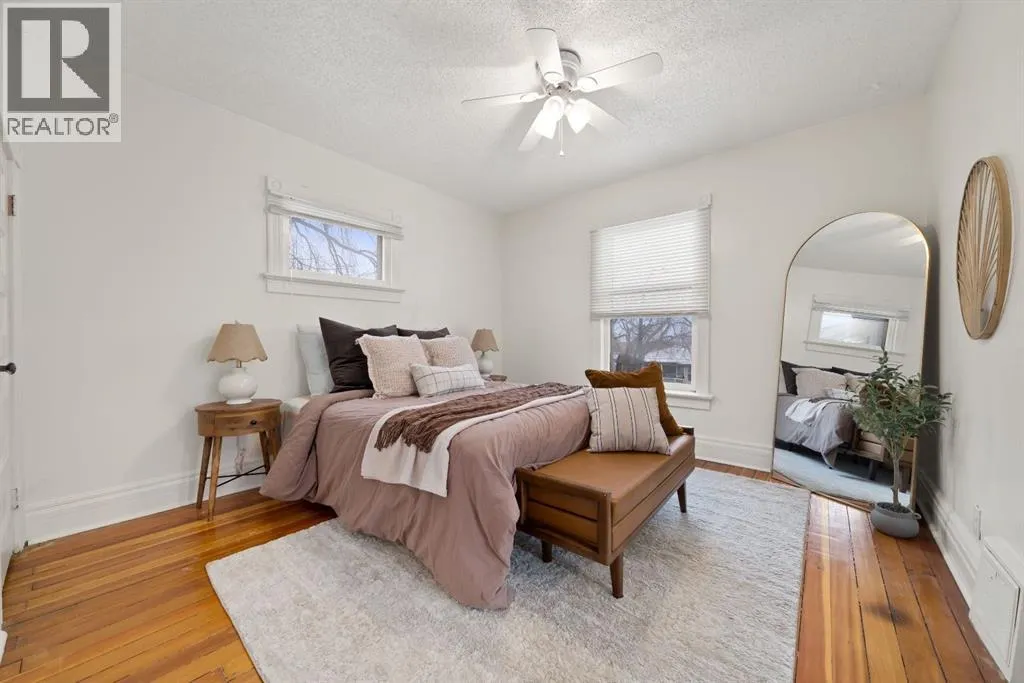 Step into a storybook at this enchanting 1906 character home. With its striking turret and castle like presence, this home is truly one of a kind!! Inside, youâre greeted by a warm and welcoming entryway showcasing the grand original staircase. The main floor flows beautifully through the living room, dining area and upgraded kitchen, making it perfect for both everyday living and entertaining. Upstairs features 2 bedrooms, an office that could easily be used as a bedroom and a 4-piece bathroom with a classic clawfoot tub. The primary bedroom offers a walk-in closet / dressing room with direct access to the patio. The basement provides a large laundry room and additional versatile space ideal for storage, a recreation room, or creative use. At the back of the home, an attached non-conforming suite adds incredible flexibility, complete with one bedroom, one bathroom, and private patio doors opening onto its own deck. Perfect for guests, extended family, or even supplemental income! Completing the property is a heated double detached garage along with ample off street parking for an RV or motorhome . The home is situated on a multi-use lot. Upgrades to the property include a recently updated bathroom, plumbing updates, a newer hot water tank (2022), a high-efficiency furnace (2023). Call your favourite REALTOR® today to book a showing! (id:27476)