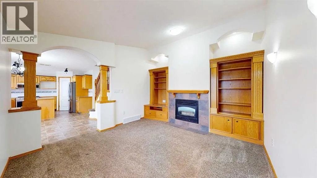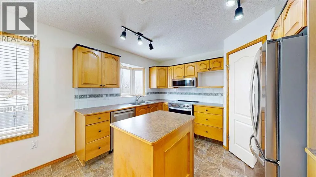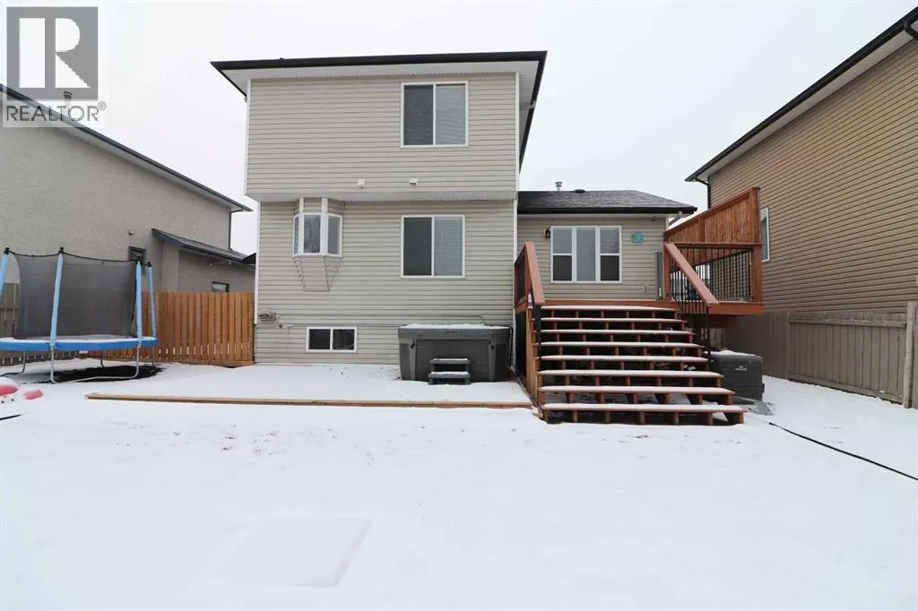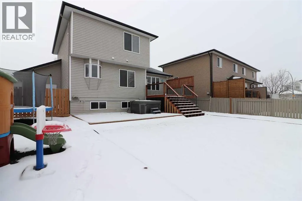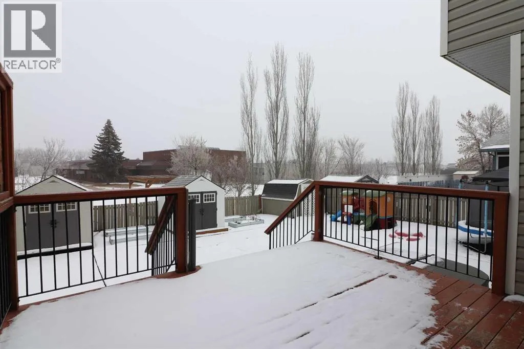 Welcome to this stunning 1.5-storey home offering excellent curb appeal and located in a desirable neighbourhood. This spacious property features 4 bedrooms and 3.5 bathrooms, thoughtfully designed for both comfort and functionality.Upon entry, you are welcomed by a generous foyer and a bright office/flex room to the left, highlighted by glass-front double doors. The main floor continues with a convenient 2-piece bathroom and main-floor laundry located just off the double attached garage. Completing the main level is a well-appointed kitchen with island, dining area, and full appliance package, flowing seamlessly into the open-concept living room with a cozy gas fireplace. Upstairs, the primary bedroom offers a private retreat with a walk-in closet and ensuite. Two additional bedrooms and a full 4-piece bathroom complete the upper level.The fully developed lower level boasts a spacious family room with large windows and excellent ceiling height, providing plenty of room for family enjoyment. An additional bedroom and 3-piece bathroom complete the basement.Outside, enjoy the beautifully landscaped, fully fenced backyard featuring a private deck conveniently located off the kitchen, garden beds, and multiple storage sheds. This home offers ample space inside and out and is perfect for families seeking comfort, style, and a great location. The play house and trampoline can stay if new owners want them. New washing machine as of 2025, New dishwasher as of 2024. All other appliances are from 2020. Furnace, AC & Water Heater new as of 2021. (id:27476)