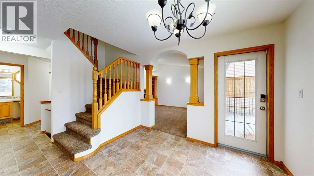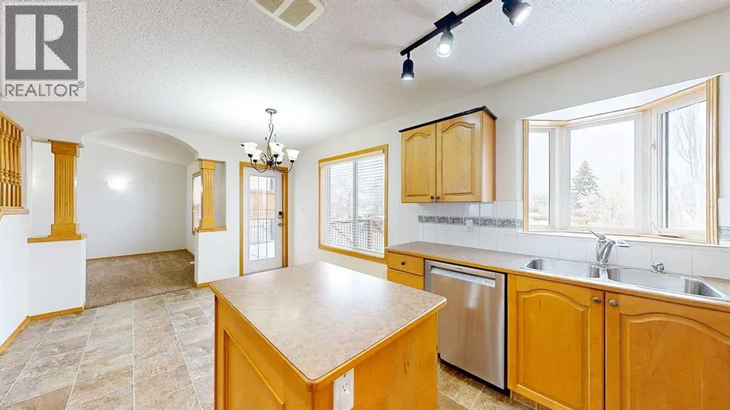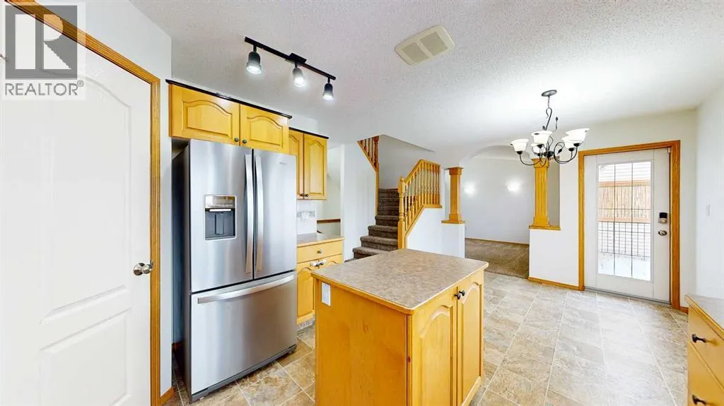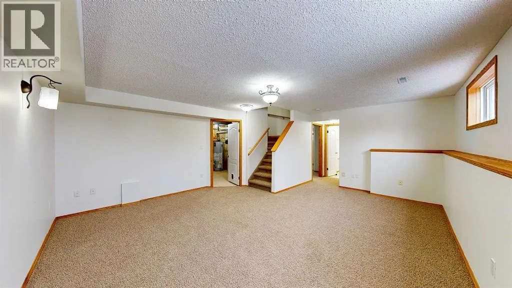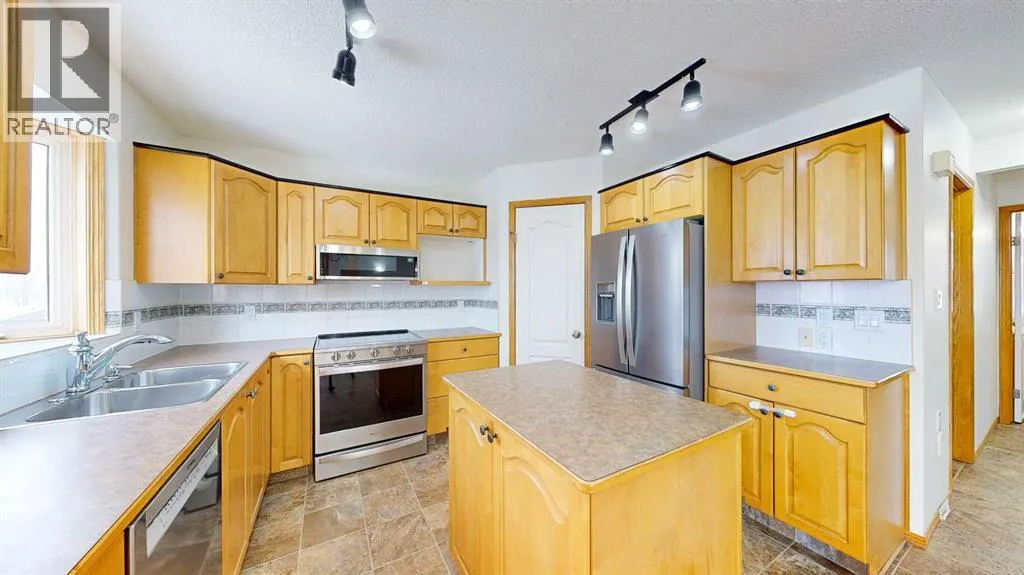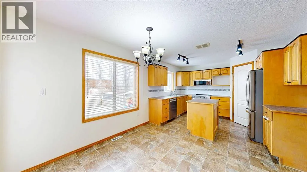 Welcome to this stunning 1.5-storey home offering excellent curb appeal and located in a desirable neighbourhood. This spacious property features 4 bedrooms and 3.5 bathrooms, thoughtfully designed for both comfort and functionality.Upon entry, you are welcomed by a generous foyer and a bright office/flex room to the left, highlighted by glass-front double doors. The main floor continues with a convenient 2-piece bathroom and main-floor laundry located just off the double attached garage. Completing the main level is a well-appointed kitchen with island, dining area, and full appliance package, flowing seamlessly into the open-concept living room with a cozy gas fireplace. Upstairs, the primary bedroom offers a private retreat with a walk-in closet and ensuite. Two additional bedrooms and a full 4-piece bathroom complete the upper level.The fully developed lower level boasts a spacious family room with large windows and excellent ceiling height, providing plenty of room for family enjoyment. An additional bedroom and 3-piece bathroom complete the basement.Outside, enjoy the beautifully landscaped, fully fenced backyard featuring a private deck conveniently located off the kitchen, garden beds, and multiple storage sheds. This home offers ample space inside and out and is perfect for families seeking comfort, style, and a great location. The play house and trampoline can stay if new owners want them. New washing machine as of 2025, New dishwasher as of 2024. All other appliances are from 2020. Furnace, AC & Water Heater new as of 2021. (id:27476)