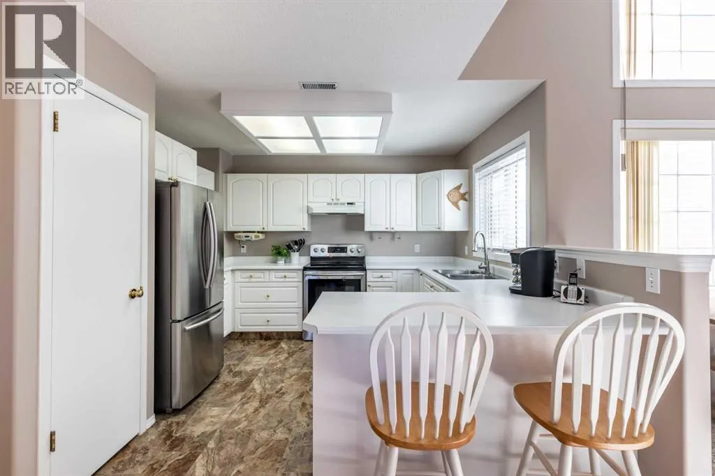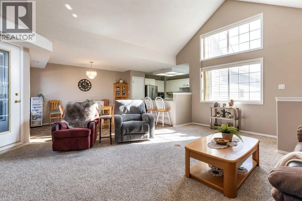 Welcome to this Bright & Spacious Condo located in The Casitas in Ross Glen. This light filled condo is complete with 2 bedrooms, 2 bathrooms featuring vaulted ceilings, an open-concept layout, and tons of natural light. Relax by the cozy fireplace or enjoy morning coffee on the large private deck. The crisp white kitchen offers plenty of cabinetry, counter space, and a sit-up bar for casual dining. The spacious primary suite includes a 4-piece ensuite, a large second bedroom plus and full laundry room, central A/C, and roughed-in vac. The single car garage is an added convenience you're going to love! This a well-maintained 35+ community a true âlock-and-leaveâ lifestyleâperfect for easy, carefree living. Donât miss your chance to see this exceptional home! Pet allowed with restrictions. (id:27476)