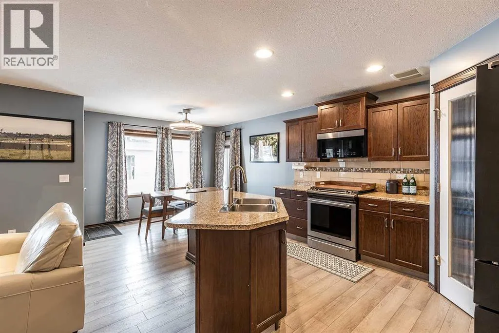 Welcome to your dream family home located in the convenient SE Southridge neighbourhood! Situated near various schools, parks, walking paths and amenities, everything you need is right out your front door. This great two-storey residence nestled on a spacious corner lot offers desirable features and a peaceful ambiance. As you step inside, you'll immediately notice the inviting atmosphere, featuring durable luxury vinyl plank flooring that adorns the home. The heart of the home lies in the open concept living, dining and kitchen area, where you'll find ample space for gatherings and everyday activities. The beautiful kitchen is equipped with a gas stove, a convenient pantry, and a spacious island. The living area offers the perfect blend of style and comfort. Complete with a cozy gas fireplace, this vibrant space is the perfect area to relax and unwind. Completing the main floor is a lovely 2 pc powder room as well as a laundry room with convenient garage access. Upstairs, a family bonus room awaits, providing additional space for relaxation and entertainment. The Primary Suite features a 3 pc Ensuite and walk-in closet. The upper level also hosts two generously sized bedrooms complemented by a full bath for the convenience of the entire household. Venture downstairs to discover the fully finished basement, offering a fantastic recreational area perfect for movie nights or game days. An additional bedroom and bathroom provide flexibility and accommodation for guests or growing families. The basement's styrofoam subfloor ensures warmth and comfort underfoot, enhancing the overall coziness of the space. Step outside to the East facing backyard where you can enjoy those warm summer evenings. The landscaped yard offers a designated dog run as well as underground sprinklers with a smart timer, taking the hassle out of lawn maintenance. Completing this exceptional property is a spacious 25x23 attached garage, providing ample room for parking and storage. Don't miss out on the opportunity to make this wonderful family home your own. (id:27476)
