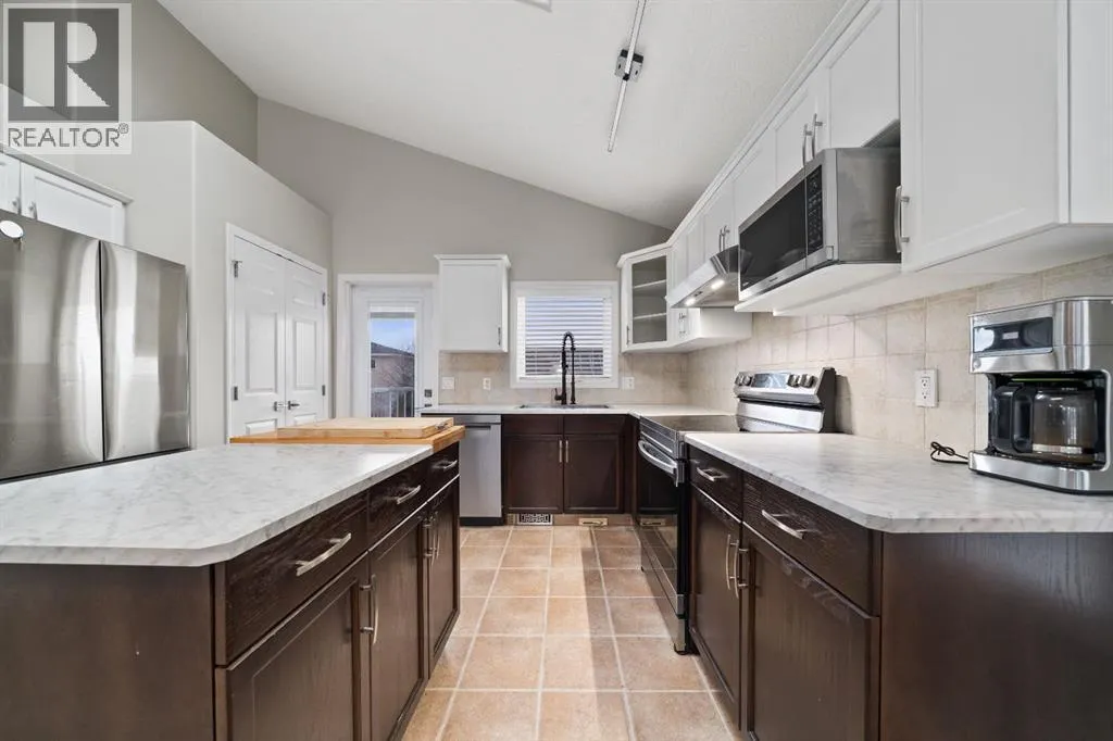 Welcome to this inviting family home located on a quiet close in Cottonwood, just minutes from the Cottonwood Golf Course. This established neighbourhood is known for its peaceful setting, scenic walking paths, and open views. Schools, parks, and everyday amenities are all close by.The main floor features a bright, open layout with vaulted ceilings, comfortable living and dining spaces, and the convenience of main floor laundry. With 4 bedrooms and 3 bathrooms, there is plenty of room for family life, guests, or a home office.The walk-out basement adds flexible living space and opens directly to a covered patio, making it easy to enjoy the fully fenced backyard. Enjoy summer days and evenings on the upper deck, while underground sprinklers help keep the yard looking its best. Hot water on demand adds everyday comfort and efficiency. A great opportunity to enjoy the Cottonwood lifestyle. (id:27476)
