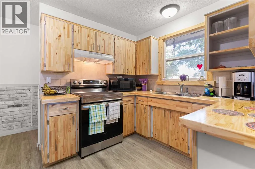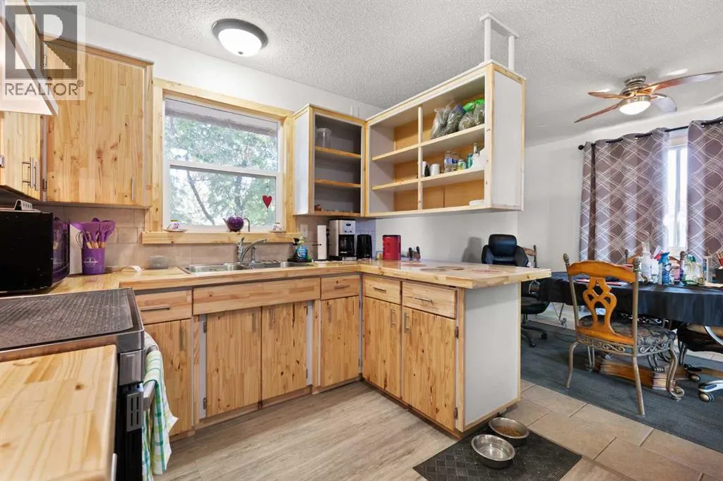 Welcome to this spacious 1100 sq/ft bi-level home offering 6 bedrooms and plenty of room for the whole family! The main floor features a bright, updated kitchen with new cupboard doors, countertops, and flooring, along with fresh paint throughout both levels. The home also includes a new front and back door, new trim, and updated closet and bedroom doors on the main level.There is currently one fully operational bathroom, with the second roughed in bathroom in the basement just awaiting your final touches and style! Other notable updates include a deck and metal roof completed in 2020, a new hot water tank, stove, and fence in 2023, and a new fridge in 2024. The maintenance-free backyard makes outdoor living easy and enjoyable. A convenient carport provides additional covered parking for up to two vehicles.With all the recent improvements already taken care of â and with some work, the potential to suite the basement â this home is ready for you to move in and make it your own! (id:27476)