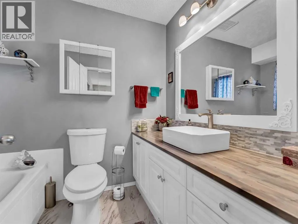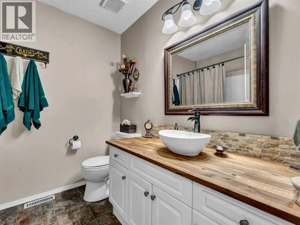 Move right in to this updated BUNGALOW on Turner Circle. Located on a court close to a park and playground, and not far from all major shopping and services, this 4 bedroom , 3 bathroom home has an attractive list of features. The main floor welcomes you in with a spacious combined living / dining room with updated flooring. The kitchen is next, featuring updated counter-tops and cabinet fronts, as well as light fixtures, sink and taps. There is also a kitchen table area - so great to have the space for an eat-in kitchen as well as formal dining! There is easy access from the kitchen to the COVERED DECK and a beautiful back yard featuring a large brick patio, U/G sprinklers ( front and back ) a nice variety of flora including a well established row of Raspberry Bushes , Rhubarb , Apple Tree, Mountain Ash Tree, Lilacs , Peonies , Tulips, and More! There is also a newer AC unit and a Fountain Water Feature. The remainder of the main floor is home to 3 large bedrooms including an En-Suite and Double Closets in the Primary Bedroom, a 4 piece bathroom, as well as a MAIN FLOOR LAUNDRY with a wash sink that is adjacent to the ATTACHED DOUBLE GARAGE. The partly developed lower level consists of a nice sized family room with a gas fireplace to cozy up to during the colder seasons, the 4th large bedroom, a 3 piece washroom, and a surprising amount of additional space that is easily utilized for a gaming area, workout room, den , storage , or could even be developed into additional bedrooms if desired. The large lot also has an RV parking space next to the front driveway. This great Bungalow in a great area is waiting for its next owner! (id:27476)