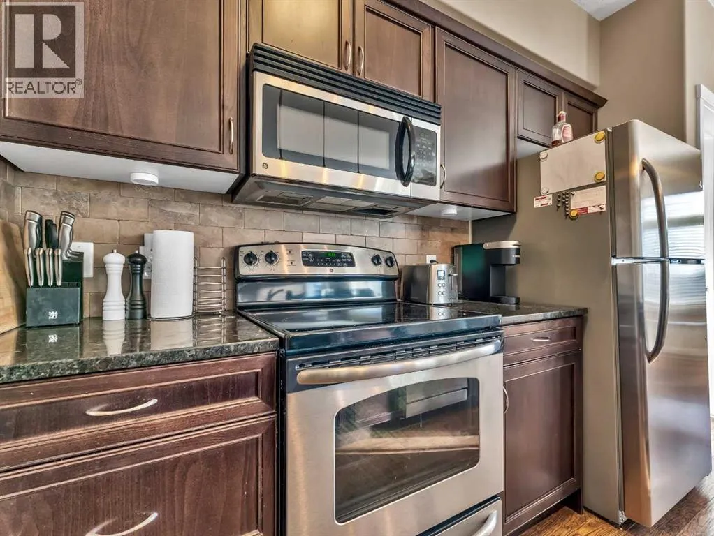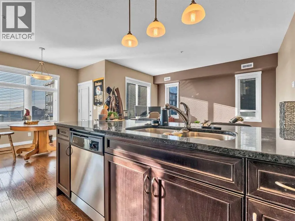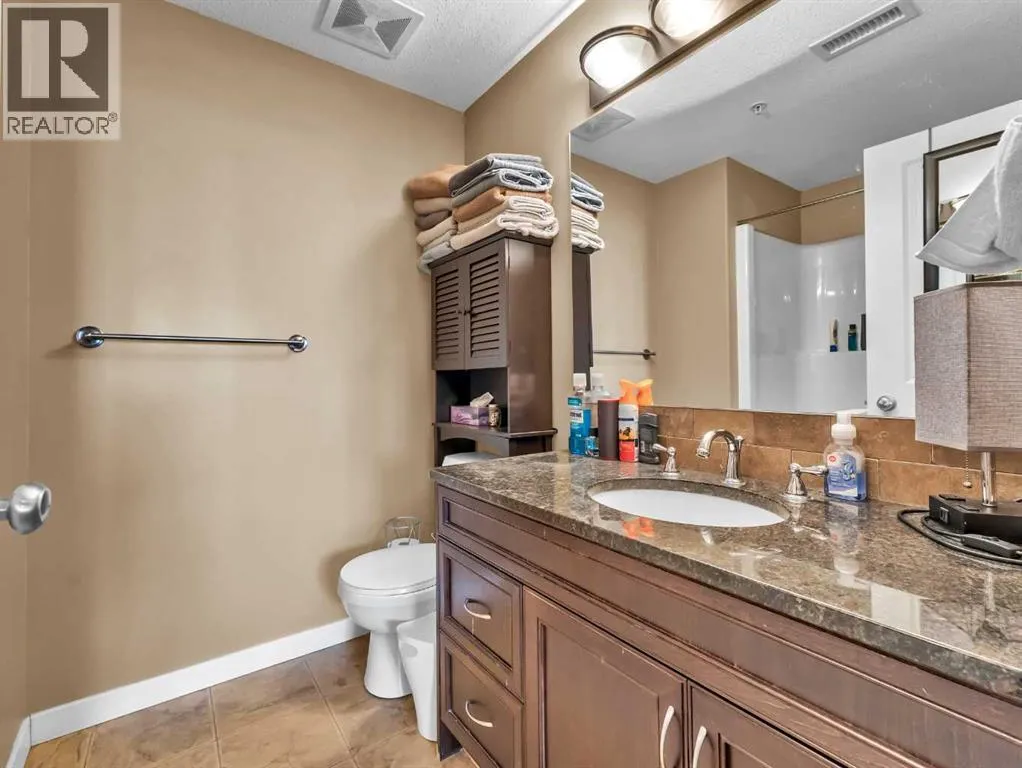 Welcome to #313 â 19 Terrace View NE, a well-designed 2-bedroom, 2-bathroom condo offering comfortable, low-maintenance living in a desirable location. The open-concept floor plan features a good-sized living room and dining area, perfect for everyday living or entertaining. The functional kitchen is equipped with ample cabinetry and a large centre eat-at island, providing plenty of prep and gathering space. The primary bedroom includes a walk-through closet leading to a private 3-piece ensuite bathroom, while the second bedroom and additional full bathroom offer flexibility for guests, roommates, or a home office. Enjoy the convenience of in-suite laundry and relax on your private covered balcony, ideal for morning coffee or evening downtime. This unit comes complete with one underground parking stall and a secure storage locker. The building is pet-friendly with restrictions, has no age restrictions, and is well-managed. Condo fees are $396.48/month and include all utilities and maintenance, covering electricity, heat, water, sewer, trash removal, snow removal, grounds upkeep, parking, and contributions to the reserve fundâmaking budgeting simple and stress-free. A great opportunity for first-time buyers, investors, or anyone looking to enjoy easy condo living. (id:27476)