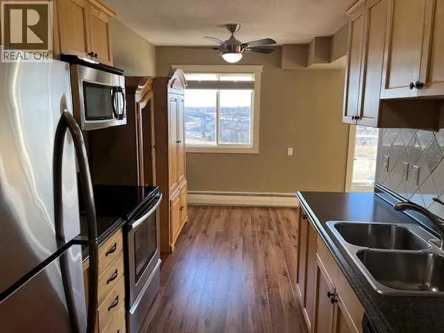 This is a top floor corner condo unit offering an unobstructed panoramic view of the South Saskatchewan river and the south end of the city. This immaculately maintained apartment is awash in natural light and shows two ample bedrooms, a nicely laid out kitchen and dining area, a spacious living room, a 4-piece bath and a convenient laundry/storage room. It comes with a complete appliance package: refrigerator, stove, dishwasher, built-in microwave and stackable washer/dryer. In 2025 new laminate flooring was installed in both bedrooms, the entire apartment was repainted (including the baseboards) and classy cellular curtains were positioned on all windows. Also included in the purchase price is a convenient kitchen hutch/pantry, electric fireplace, 3 ceiling fans, keyless unit door entry and an assigned parking stall with a plug-in. The monthly condo fee of $499 includes landscaping, snow removal, reserve fund contribution, insurance, common area maintenance, property management, trash removal, water, heat and sewer. Valley View Estates is across the street from walking/biking paths, close to many amenities, and just a short drive to the Big Marble Go Center, Heights Rec Center and Co-op Place. It is pet friendly (with restrictions and board approval) and owners must be at least 21 years of age. (id:27476)