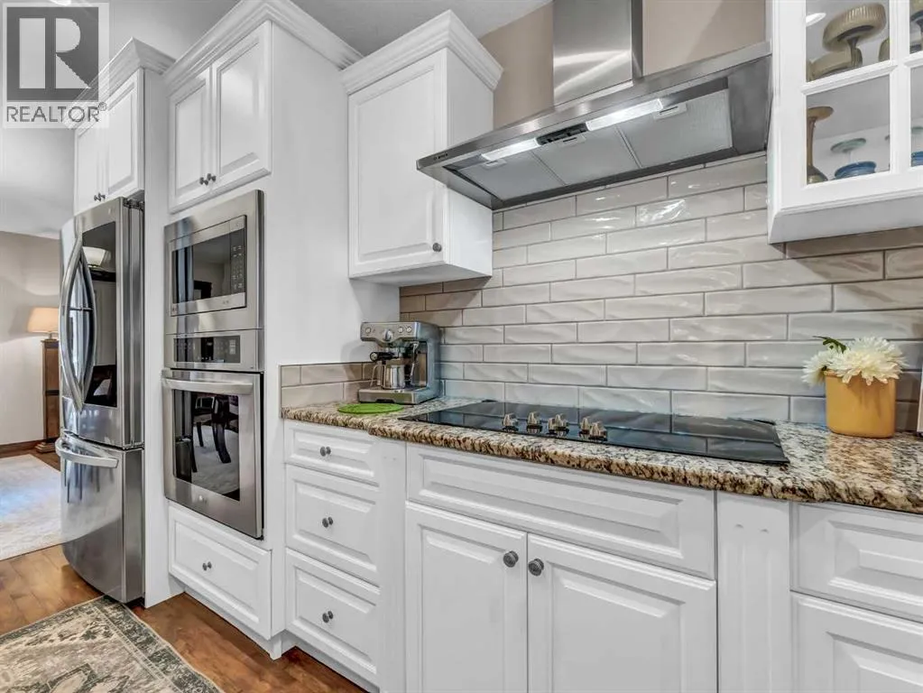 This stunning custom, Roth-built hillside bungalow offers 2,955 sq. ft. of beautifully updated living space with 5 bedroomsâ2 on the upper level and 3 on the lower. The main floor showcases a spacious living room with new luxury vinyl plank flooring and access to a massive covered deck featuring breathtaking east-facing coulee and sunrise views. The recently renovated chefâs kitchen is a showstopper with two-toned cabinetry, eye-catching tile backsplash, granite countertops, an oversized island with seating, and high-end appliances including a wall oven, built-in microwave, smart fridge, and ceramic cooktop. Hardwood flooring flows through the kitchen and dining room, which comfortably accommodates large gatherings and offers access to a second covered deck with gas line overlooking the low-maintenance backyard. The primary bedroom is a serene retreat with luxury vinyl plank flooring, a large walk-in closet, and a spa-like 3-piece ensuite with walk-in shower, while a generous second bedroom and 4-piece main bath complete the upper level. A large mudroom connects directly to the heated, finished double attached garage for ultimate convenience. The lower level features the main entrance opening to an expansive family room with high-end vinyl flooring and a gas fireplace with updated surround, three spacious bedrooms with built-in closet shelving (one currently used as a den with opaque glass French doors), a 5-piece bathroom with double sinks, and a functional laundry room with sink and cold storage room adjacent. Numerous updates include shingles, furnace, flooring, appliances, and window coverings. There are also solid maple doors throughout this entire home! Outside, enjoy a grassy front yard and a maintenance-free concrete backyard with a beautiful gazebo and ample parking for an RV or boatâthis exceptional home is truly move-in ready and ideal as your forever home. (id:27476)