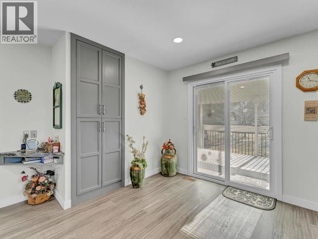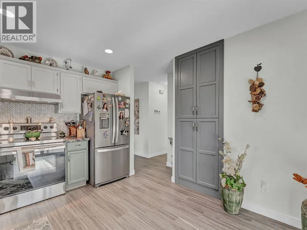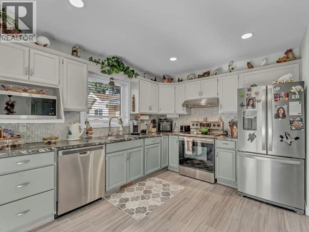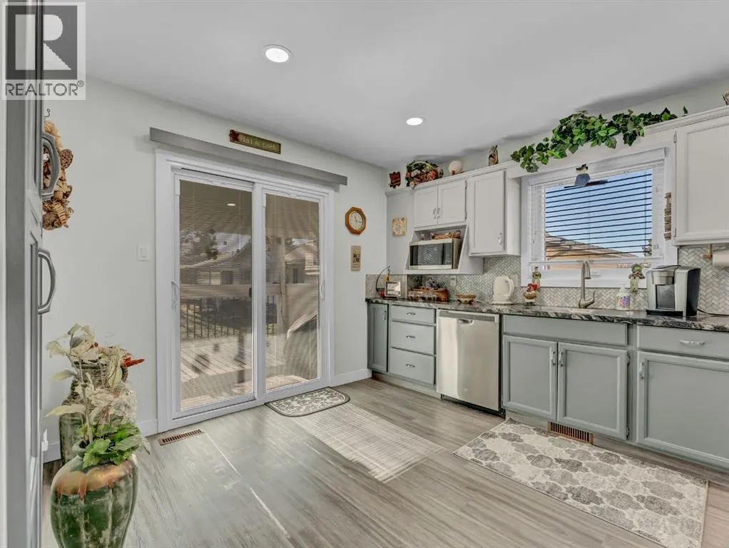 Location location!! Come see this lovely garden home in the sought after 50+ HORIZON VILLAGE COMMUNITY, that backs on to a beautifully treed green space and is PET FRIENDLY (some restrictions do apply) This 2+1 bedroom, 2 bath home is close to walking paths and shopping and also comes with a community clubhouse that has beautiful coulee views! The main floor is host to new vinyl plank flooring in the front entry,kitchen, living room,dining room and hallway. The kitchen has a pantry with pullouts, new sink and tap,freshly painted cabinets and new counter tops! Leading off the new patio doors is the south facing yard with maintenance free covered deck and a gasline to the BBQ! Sit back and relax and watch the deer as you overlook the beautifully treed greenspace behind you! Completing the main floor are 2 bedrooms, a 4 PCE bath with a Jack & Jill door, PLUS MAIN FLOOR LAUNDRY with new stackable washer/dryer. The lower level is host to a family room with a gas fireplace, 3rd bedroom a large 4 PCE bath and STORAGE GALORE!! Furnace was replaced Jan. 2020. If youâre looking for that quiet community garden home that you can turn a key and move in, then this one is for you ! Call today! (id:27476)