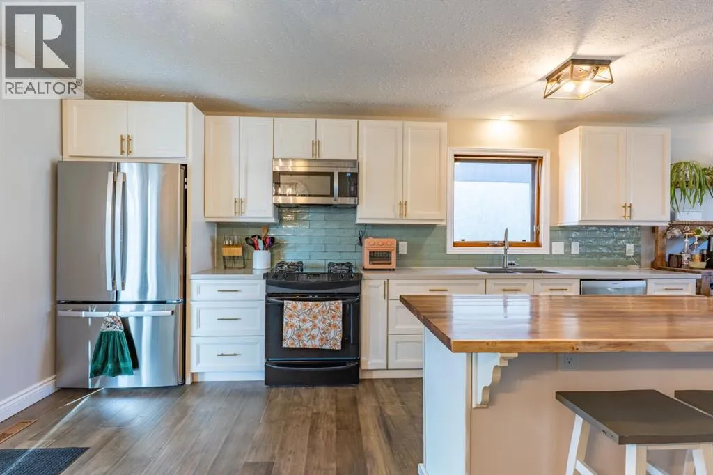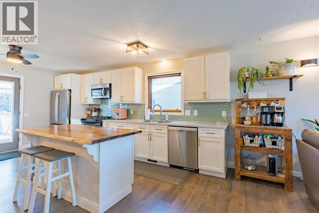 Welcome to this beautifully updated 3+2 bedroom, 4-level split in the heart of Ross Glen, offering space, style, and a layout that truly works for family living. Step inside and head up to the bright, open main level where natural light pours into the inviting living room, highlighted by a gas fireplace with a striking white stone feature. The space flows seamlessly into the fully renovated kitchen, showcasing timeless white cabinetry, quartz countertops, and a show-stopping island topped with a live-edge slab counter. The cozy dining area opens through garden doors to a two-tiered deck â perfect for BBQs, entertaining, or unwinding on warm summer evenings. Upstairs, youâll find a spacious primary suite complete with walk-in closet and private ensuite, two additional bedrooms, and a newly renovated 4 pc main bathroom. Just a few steps down from the main floor is a functional lower level featuring two additional bedrooms (both with egress windows), a 4 pc bathroom, and a dedicated laundry room. The lower basement level offers a versatile recreation room, perfect as a playroom, games room, or media space, along with a large utility room providing excellent storage. Outside, the landscaped backyard features both covered and open deck areas, underground sprinklers, and plenty of room to enjoy. Parking is abundant with a double attached garage, a spacious driveway, and extended side parking beside the garage. This is a thoughtfully updated home in a family-friendly neighbourhood close to schools, parks, walking paths, restaurants, and shopping. (id:27476)