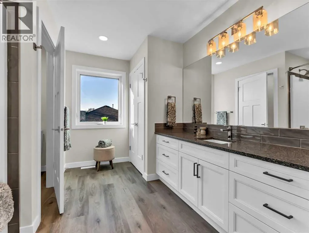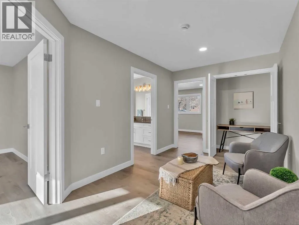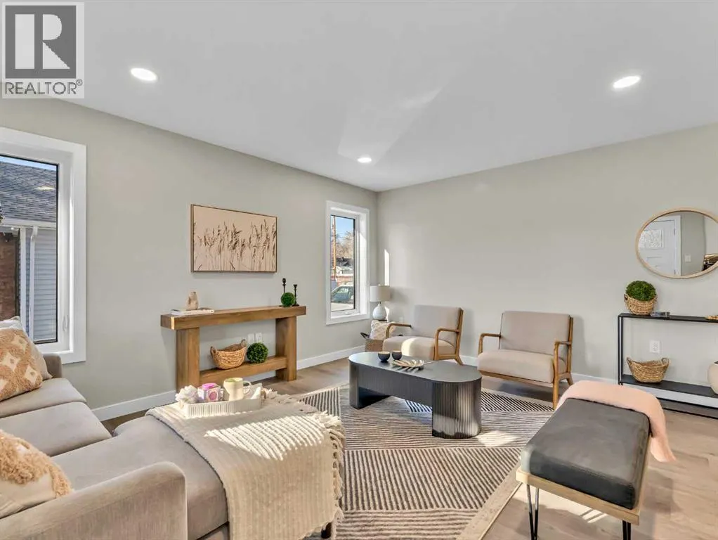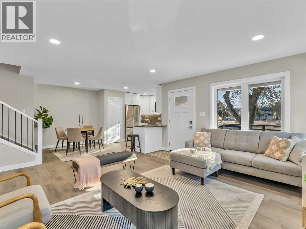 Stunning brand-new infill ½ duplex in a prime riverside location! Offering 1,770 sq ft of thoughtfully designed living space, this 2-storey home with double attached garage combines modern style with exceptional functionality. Enjoy the flexibility of main-floor living, ideal for those with mobility or stair considerations, featuring an open-concept layout and a spacious primary bedroom on the main level complete with a walk-in closet and elegant ensuite showcasing a large tiled shower.The upper level hosts two additional large bedrooms, a beautiful 5-piece bath, and a versatile flex space perfect for a home office, media area, or reading nook. Quality upgrades throughout include a full appliance package, hard-surface flooring, custom cabinetry, ICF party wall for superior soundproofing, and durable Hardi-board siding. Fully landscaped and ideally located with excellent walkability to the downtown core, plus the added value of future new development directly across the street. An exceptional opportunity to own a modern infill in one of the cityâs most desirable riverside settings. (id:27476)