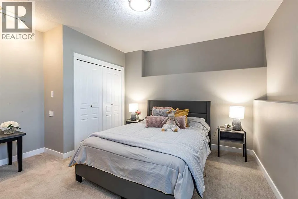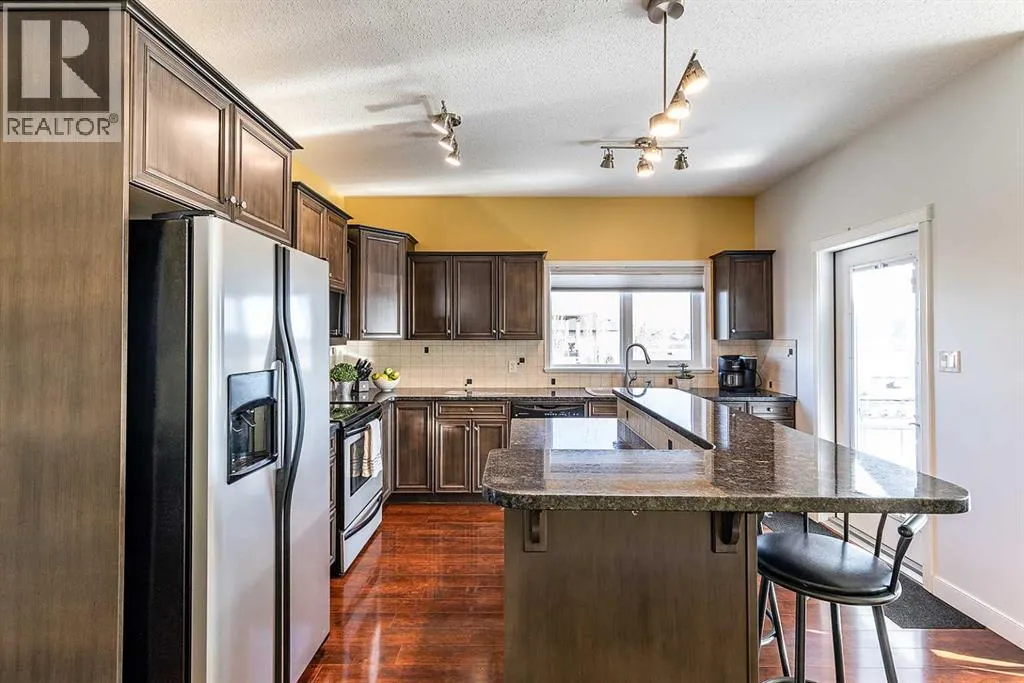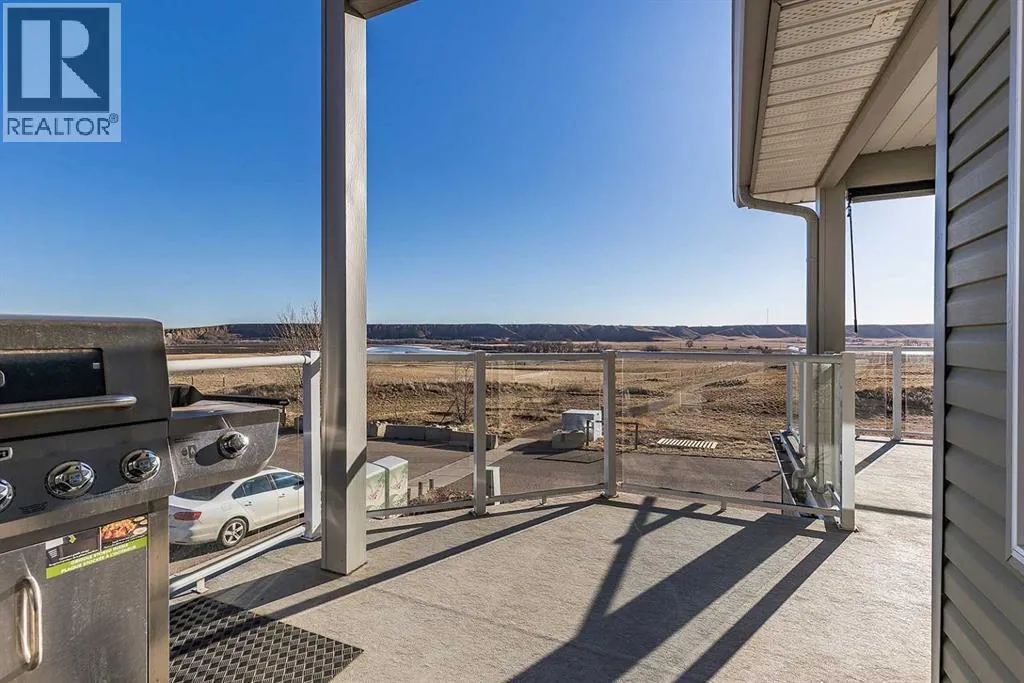 Executive Walk-Out Living with Sweeping River Valley Views - 137 Ranchlands Blvd NEFrom the moment you arrive, this executive walk-out half duplex makes a lasting impression with its distinctive architecture, charming curb appeal, and welcoming covered front veranda. Step inside to a spacious entryway with a generous closetâideal for busy households and everyday convenience. The main floor is thoughtfully designed for both comfortable daily living and effortless entertaining. At the front of the home, the inviting living room is accented by stylish acoustic panel features and modern LED lighting, creating a warm yet contemporary atmosphere. Toward the back of the home, the space opens to the kitchen and dining areaâwhere the true showstopper awaits. Unforgettable river valley views provide a breathtaking backdrop and can be enjoyed from nearly every angle.The kitchen is both functional and inviting, offering ample cabinetry, granite countertops, and excellent workspace for the home chef. Step outside to the expansive covered deck, complete with sunshade and a gas line for your BBQâan ideal setting to cook, dine, or relax while taking in the sweeping scenery. The main level also includes a convenient powder room, laundry area, and a smartly designed built-in desk with granite countertop, tucked neatly into a functional workspace nook. Upstairs, the primary suite is a true retreat featuring a walk-in closet, a spacious ensuite with heated floors, and its own private balcony, perfectly positioned to take in beautiful sunrise views and start your day with morning coffee. A versatile bonus room sits between the bedrooms, ideal for a family room, home office, or play space. The second generous bedroom also offers a walk-in closet and is serviced by a full 4-piece bathroom. The fully developed walk-out basement adds even more living space, featuring a comfortable family room, dining area with fridge and coffee bar, a large additional bedroom, a 4-piece bathroom, and ample storage. From here, enjoy direct access to the fully fenced and landscaped backyard with underground sprinklers, as well as the attached garage and large driveway conveniently located off the alley. Bonus Value: This home is being offered fully furnished, with the exception of a few staging piecesâproviding a rare, turnkey opportunity for buyers seeking a seamless move-in experience. Offering exceptional comfort, thoughtful design, and views that simply canât be replaced, this is a truly unique property. Homes like this donât come along oftenâschedule your private showing today. (id:27476)
