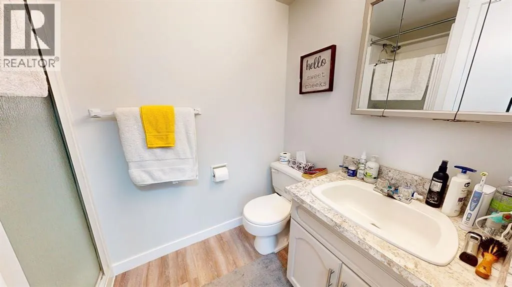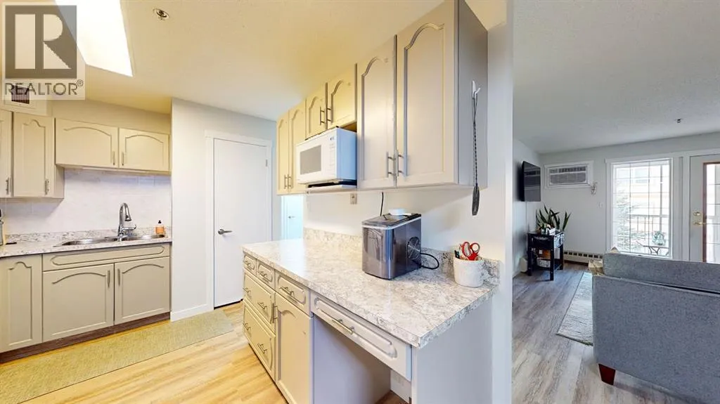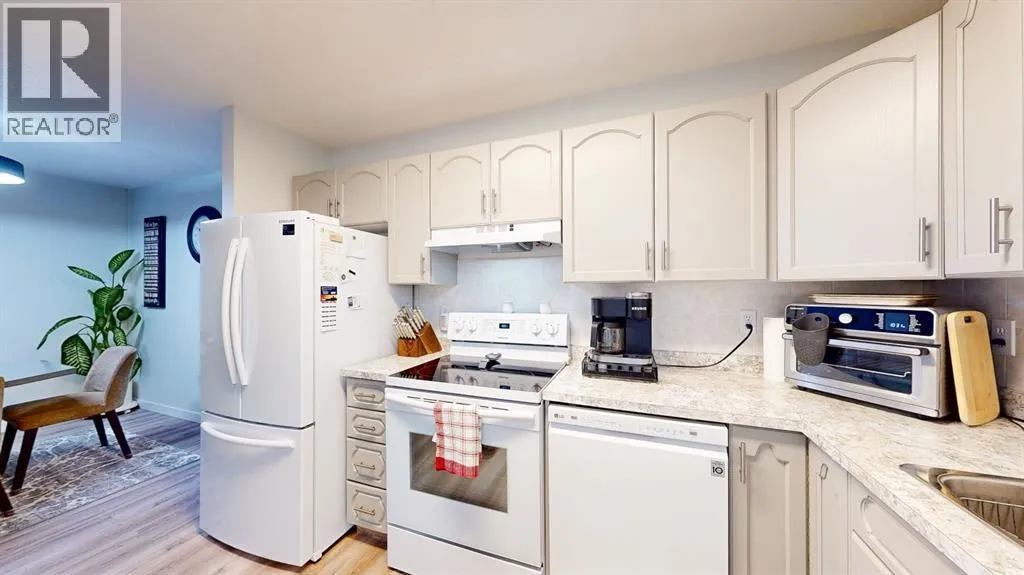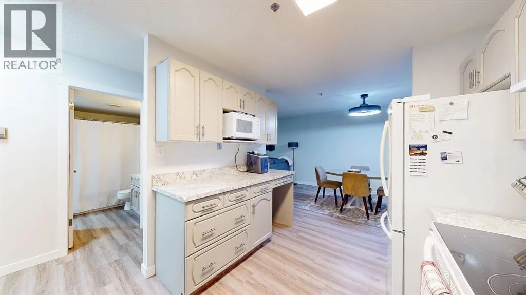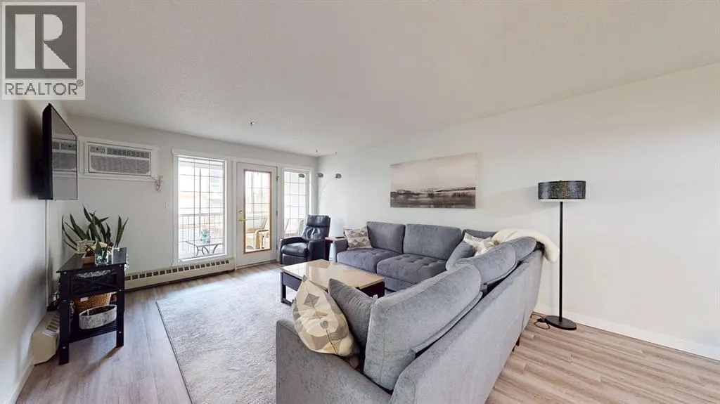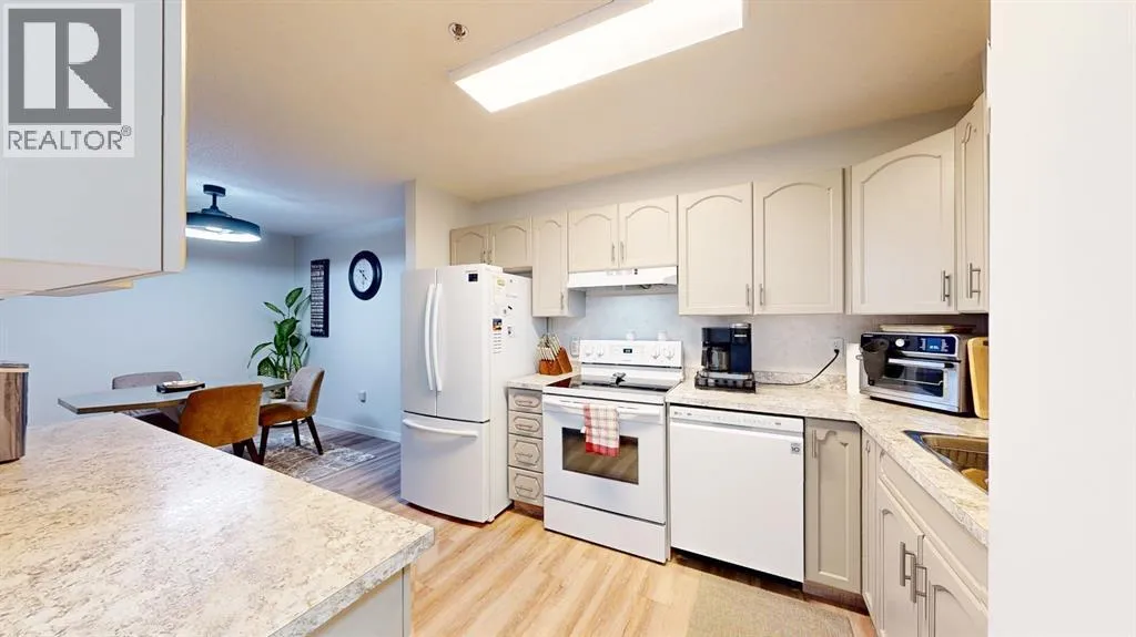 Park Meadows Village! Sought after location close to shopping, banking, walking paths etc. This two-bedroom, two-bathroom condo is perfect for anyone seeking convenience and comfort. Enjoy the ease of being only 30 steps from the elevator and your designated underground parking spot, no sweeping off the snow before driving away! The condo features beautiful freshly painted cabinetry with new countertops. Plenty of cupboard space, plus a walk-in pantry for added storage. Brand new good quality laminate flooring throughout this unit makes it feel clean and welcoming. The spacious dining area is ideal for family gatherings or entertaining guests. Step outside to your private enclosed 3-season deck, offering a peaceful space to relax. The large master bedroom includes two generous closets and a 3-piece ensuite bath for added convenience and privacy. All new paint, baseboards and trim throughout. Schedule a viewing for this great condo today! (id:27476)