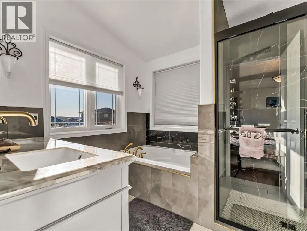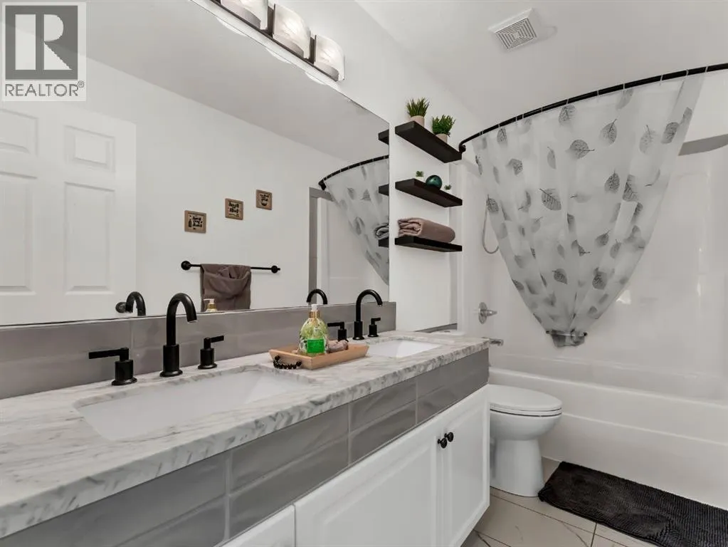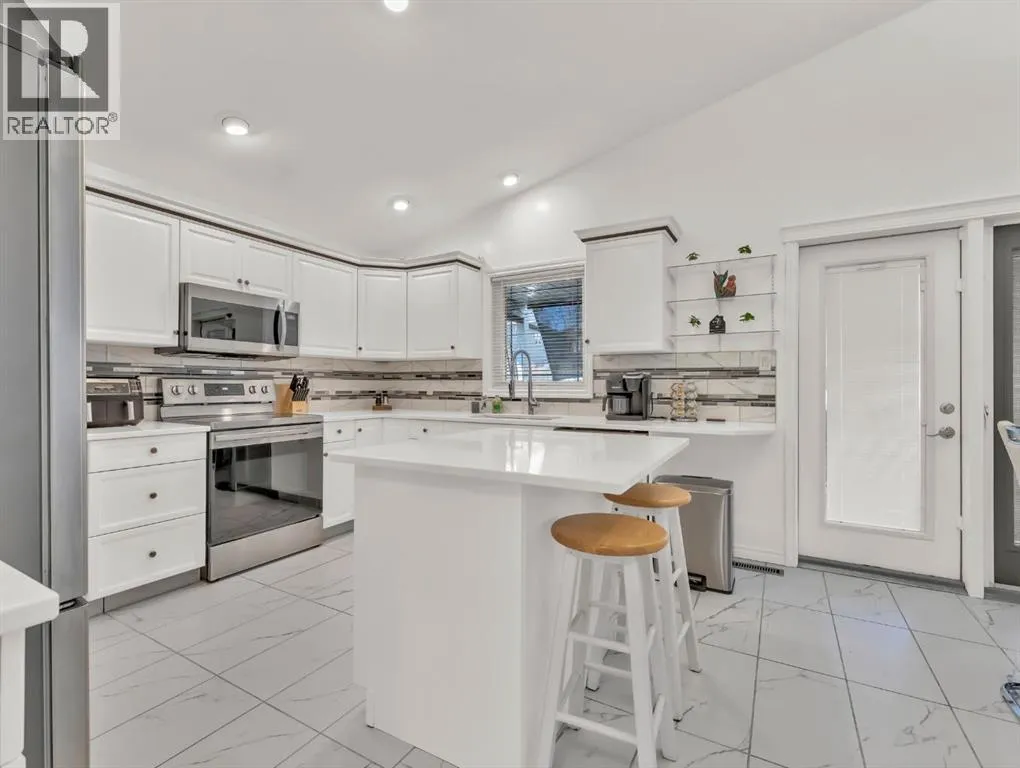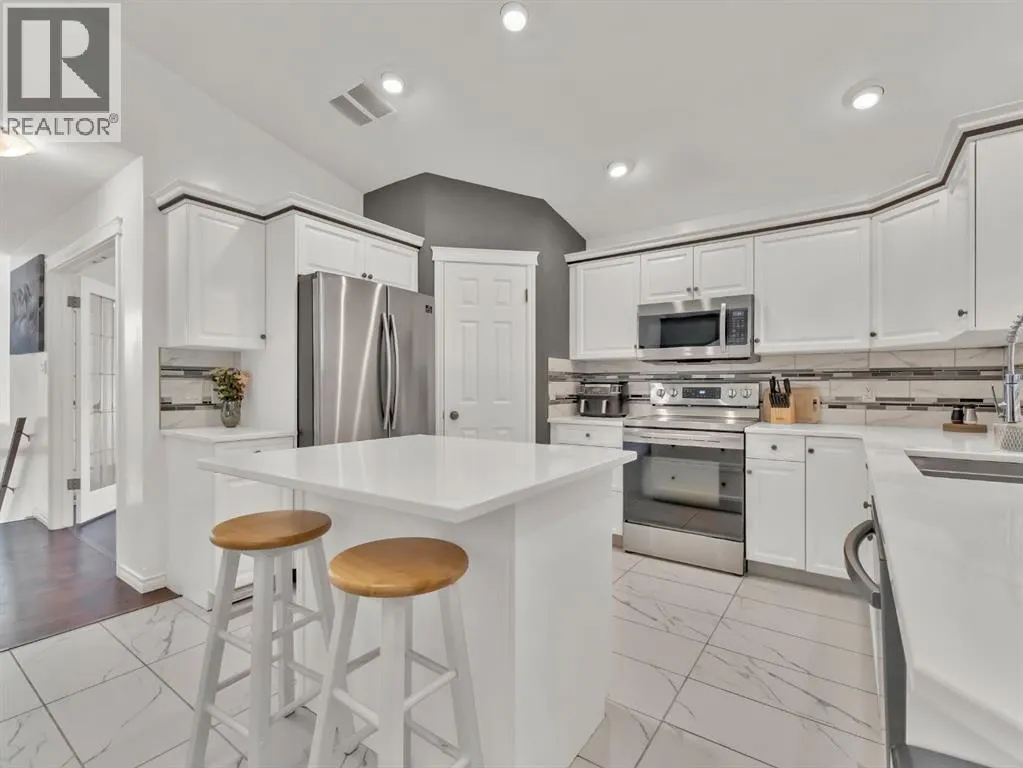 The home you need in the neighbourhood you've been waiting for. Welcome to 132 Ranchman Place NE. This gorgeous modified bi-level is tucked away into the back corner of a quiet court in one of Medicine Hat's most sought-after neighbourhoods. With a total of 2371 sq ft of developed living space, including 5 bedrooms + 3 bathrooms, this home has all the space your family needs, and all the upgrades you were hoping for. The main floor features an updated kitchen with classic white quartz countertops, centre island, spacious pantry, and a generous dining area. This space is open to a large livingroom with corner gas fireplace and large windows that look out to the backyard. The main floor also offers a sizeable office with french doors, a handy laundry room and 5pc bathroom. Head upstairs to one of the most incredible primary bedrooms you can imagine. This massive private suite features all the space you need for a sitting area or workout equipment. This bedroom also features a beautiful ensuite bathroom with a gorgeous custom shower, heated floors, relaxing soaker tub, and dual vanities, as well as a spacious walk-in closet. The basement was thoughtfully designed and finished offering a large rec room with custom wet bar, vinyl flooring, and an abundance of built-in shelving for all your family photos and collectibles. Relax in this space with family and friends, turn on the attractive electric fireplace, and enjoy the big game or family movie night! The basement also offers two spacious bedrooms and an outstanding 4pc bathroom with heated tile floors and a custom makeup desk. The beautiful backyard is truly an oasis, offering the peaceful space that your soul will truly appreciate. The large covered deck features roll-up screens for shade and privacy. The lower patio area features a relaxing gazebo, cooking area with gas barbeque (included), and plenty of seating space to host the backyard parties you have always wanted. There are underground sprinklers feeding the fl owers and trees. The double attached garage will protect your vehicles from Mother Nature, and offer the workspace you need for your hobbies. New A/C unit just over 2 years ago. Truly a wonderful home in a fantastic location, with a gorgeous park and playground nearby, and quick access to schools, shopping, golf, bike paths, and much more! *NOTE* New interior photos coming Wed Feb 11th. (id:27476)