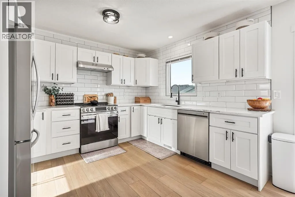 Welcome to 13 Rice Bay SE, nestled in a beautiful, quiet cul-de-sac in sought-after Medicine Hat SE. This fully updated home offers exceptional curb appeal with new cement board siding, a vinyl fence, and a double attached garage.Inside, youâll find modern finishes throughout, including durable vinyl plank flooring and ceramic tile in the bathrooms. The stunning updated kitchen features quartz countertops, updated appliances, and a clean, contemporary design perfect for everyday living and entertaining.The upper level offers 3 spacious bedrooms and 1.5 bathrooms, while both the main floor and basement feature cozy wood-burning fireplaces â ideal for those chilly Alberta evenings. Custom railings add a stylish architectural touch.The walkout basement provides additional functional living space, including a large gym area and another bedroom, making it perfect for growing families or guests. All windows and appliances have been updated, offering peace of mind and improved efficiency.This move-in-ready home combines quality upgrades, space, and an unbeatable cul-de-sac location â a must-see! (id:27476)