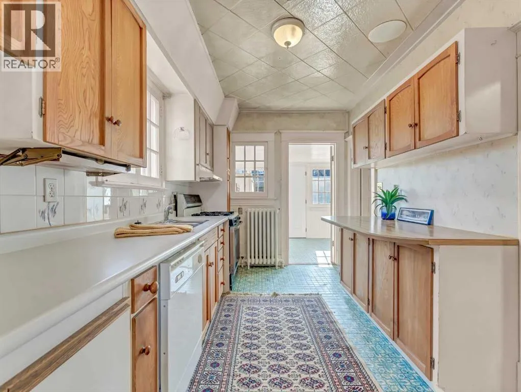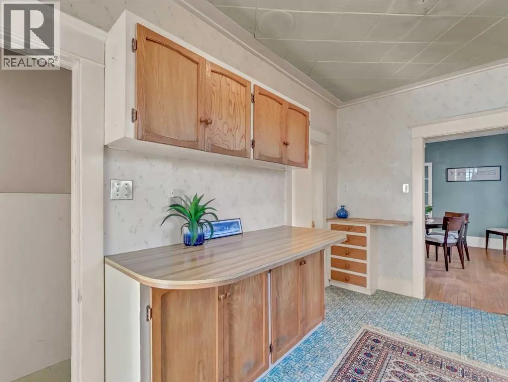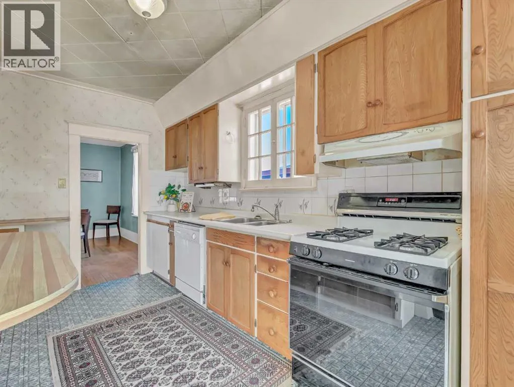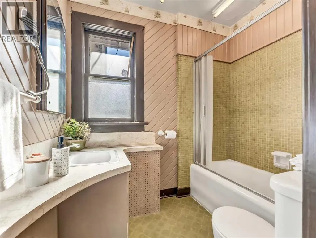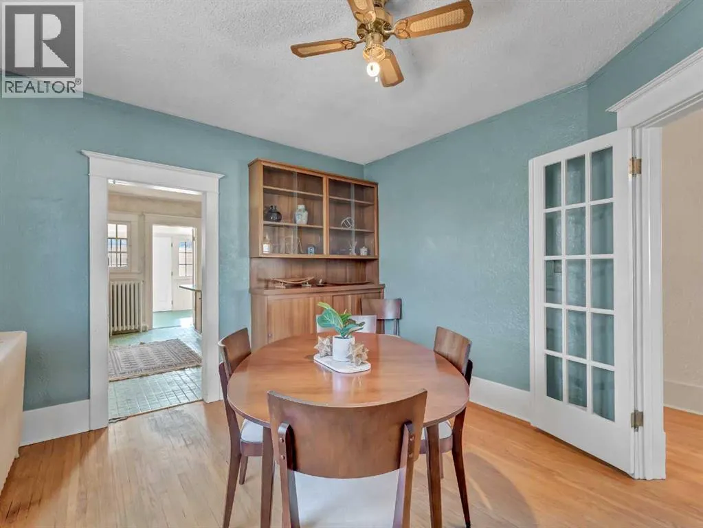 Welcome to this charming 1914 character bungalow in NE Crescent Heights! Situated on a generous lot and ideally located near schools, parks, playgrounds, the Hockey Hounds arena, and the Big Marble Go Centre, this home offers timeless appeal in a family-friendly neighbourhood.Step inside to a spacious entryway that opens into a bright and inviting living room, complete with a cozy wood-burning fireplace and an abundance of natural light. New front and back doors add peace of mind, while hardwood flooring flows throughout most of the main level. Just off the living room, the formal dining room showcases beautiful French doors and a built-in china cabinetâperfect for hosting and highlighting the homeâs historic charm.The kitchen offers plenty of counter space and cabinetry, and the adorable back porch provides a lovely spot to enjoy your morning coffee. The main floor also includes a 4-piece bathroom and two bedrooms, one featuring double closets.Downstairs, youâll find a fantastic vintage rec room with cozy log cabin vibes, a fireplace, and a dry barâan ideal space for entertaining or relaxing. This level also includes a spacious 3-piece bathroom, laundry area with sink, abundant storage, and an additional bedroom with its own charming fireplace feature.Outside, the large backyard offers ample space to enjoy, along with a double detached garage and a huge driveway for plenty of parking. The shingles were redone less than 5 years ago. This home is full of character and special details throughout and presents an incredible opportunity for someone looking to restore a classic beauty to its former glory. (id:27476)
