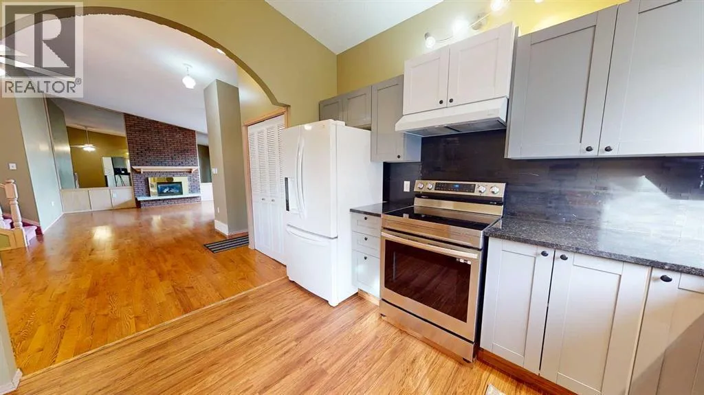 It all starts with a spacious entry..warm welcoming colours and an original design to create this home of distinction located in coveted Connaught. The spacious living room to your right has a cathedral ceiling, a majestic stone fireplace, oak hardwood flooring and beautifully crafted use of window light. To your left the formal dining room with a perfect wall for a china cabinet and hardwood floors. The heart of the home is the well designed newly renovated island kitchen with newer flooring, some newer appliances and cabinets. There is a new door from eating area to a new deck outside the kitchen. The wall in dining room and kitchen feature an etched glass partition that overlooks the family room on the third level. This gives an incredible flow of space and light. The primary bedroom has a three piece ensuite with new shower and toilet and a walk in closet. The second of the three bedrooms on this level has patio doors that lead to the covered deck. Just one more thing to make you fall in love with this home. You have a terrific..well designed third level with family room, fourth bedroom, fireplace, three piece bath with new shower and walk out to the back yard. The walk out family room gives you access to the patio, beautifully landscaped yard with fire pit area, underground sprinklers and view. The fourth level has another family room with bar and tons of storage. This level would make a super games room! This home is in a coveted location. It backs onto a green strip just steps away from the golf course. It is private and well treed. You are just minutes away from all amenities including parks, schools and shopping. Additional features include, newer shingles, central air, gas hook up for Bar b Que, attached double garage with newer driveway, direct entry to home from garage, shelving and cabinets in garage, newer taps, new paint, some newer flooring, new furnace, new central air, new hot water tank, granite counter tops, new patio doors off kitchen to new d eck, front beam repair, new decking, tree removal and leaf filters gutter guards and so much more. Super newer appliance package You and your family deserve a home of this quality. Call for your private viewing. (id:27476)