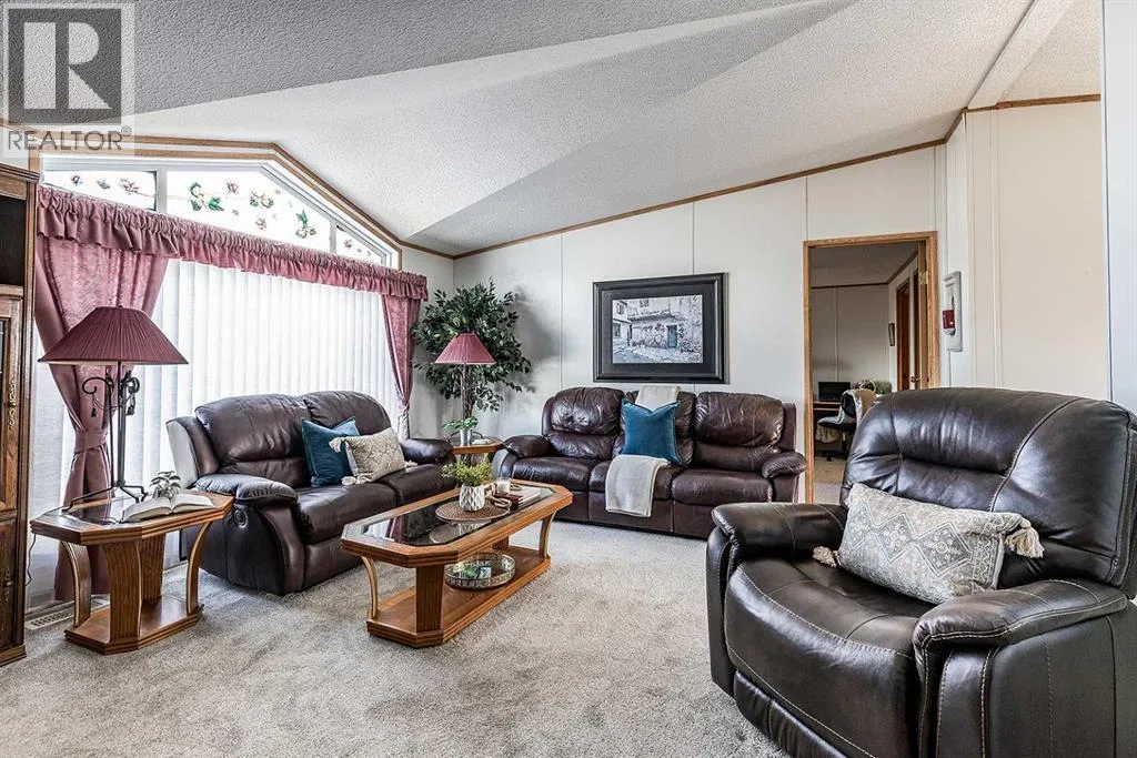 Welcome to this well maintained move-in ready Manufactured Home in the adult living community of Meadowlark Village. With large windows and vaulted ceilings, this home feels bright and spacious. Nicely laid out with a good sized living room that leads into the well equipped kitchen with plenty of cabinetry & counterspace including an island, corner pantry, and dining area that's flooded with sunlight. The large primary suite is host to a walk-in closet and full four piece bathroom with ample storage. The guest bedroom enjoys access to the second full bathroom. A handy laundry room/mudroom is located just off the back entrance and flows into the second bathroom. This well maintained home features new carpet and newer shingles. A private fenced in patio area is the perfect spot for your flower pots, raised garden beds, and patio furniture to enjoy morning coffee and outdoor entertaining. Complete with a 22' x 20' garage and paved driveway, this home truly has everything you need! Meadowlark Village is a 35+ Adult Living Community that allows pets (with some restrictions), and residents have access to the wonderful community clubhouse. Located near walking paths, major shopping centers, restaurants, and medical offices. Lot rent is $767/month and includes snow removal, grounds keeping, water, sewer, garbage pick-up, and clubhouse access. (id:27476)