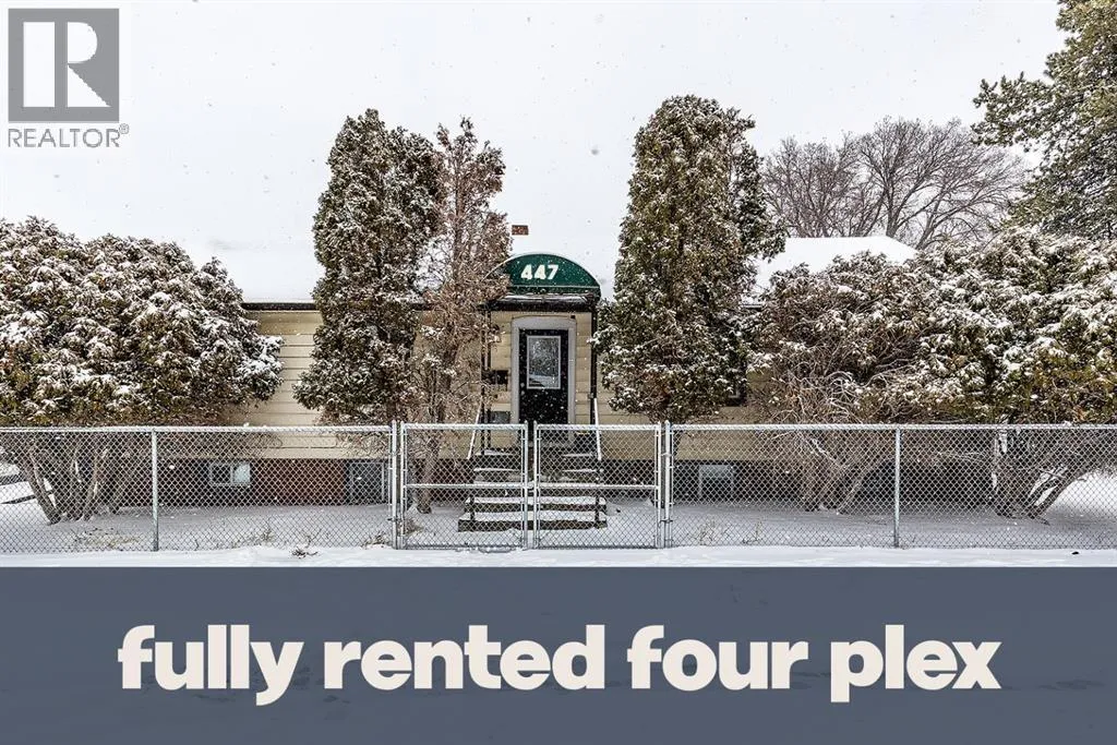 Welcome to 447 Allowance Ave SE, a solid four-plex in Medicine Hatâs River Flats offering an excellent opportunity for investors looking for strong rental potential.This property features four self-contained units, including two spacious 2-bedroom, 1-bath suites and two comfortable 1-bedroom, 1-bath plus den suites, appealing to a wide range of tenants. Several units have been updated with modern flooring and fresh paint, creating clean and inviting living spaces.The property also includes a detached garage/workshop, ideal for additional storage, maintenance space, or potential extra rental value (currently rented). Tenants will appreciate the four off-street parking stalls, a valuable feature in this central location. The fully fenced yard adds additional functionality, making it practical for tenant enjoyment, security, and defined outdoor space.Situated in the River Flats, residents enjoy convenient access to downtown amenities, parks, walking trails, and transit, making it an attractive rental location.Whether youâre expanding your portfolio or looking for a solid multi-family investment, 447 Allowance Ave SE is a property worth exploring. Call your REALTOR® to book a private viewing! (id:27476)