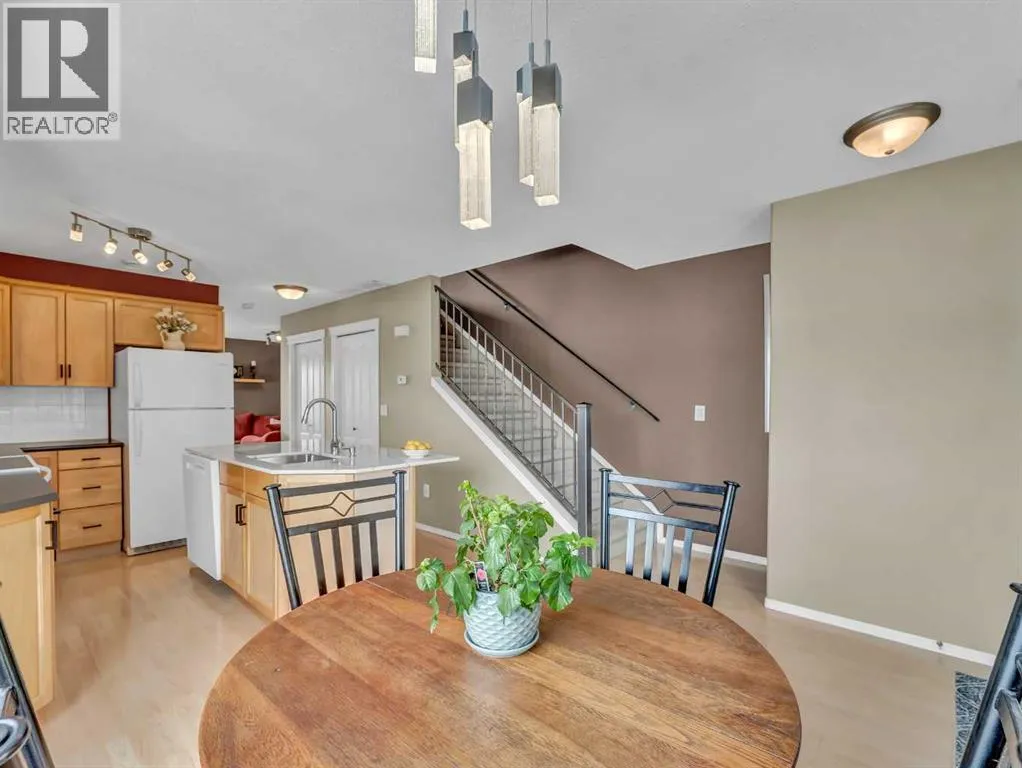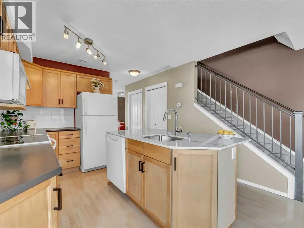 Welcome to 321 Washington Way SE, a bright and inviting end unit condo in the popular River Flats neighborhood. This home is ideal for families, first-time buyers, or anyone seeking a low-maintenance home close to amenities. Plenty of natural light and well-designed spaces make it comfortable and practical. The main floor opens with a dining area that connects to the kitchen and living room. The kitchen has an island with ample workspace, making cooking and daily life easier. Beyond the kitchen is a bright living room with a large bay window, offering a warm, relaxing spot to gather with family and friends. Upstairs, there are two comfortable bedrooms, a four-piece bathroom, and laundry on the same floor for convenience. The primary suite features a walk-in closet and its own four-piece ensuite, providing a private retreat at the end of the day. At the front of the home, youâll find 2 parking stalls and a patio perfect for barbecuing or enjoying extra outdoor living space in spring and summer. Parking is located at the front of the property, making daily living simple and accessible. This neighborhood is close to schools, shopping, parks, playgrounds, tennis courts, and scenic walking and biking paths, so youâll enjoy convenience and a great lifestyle. Whether you prefer quiet evenings at home or enjoy nearby amenities, this property offers comfort, practicality, and a great place to call home. (id:27476)