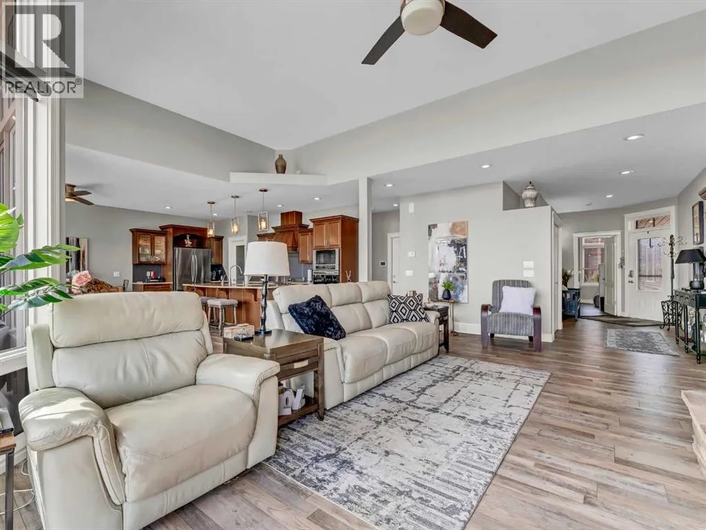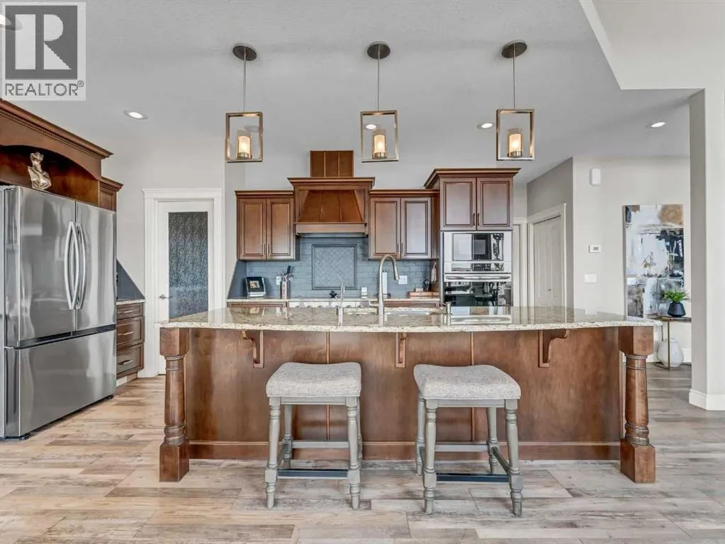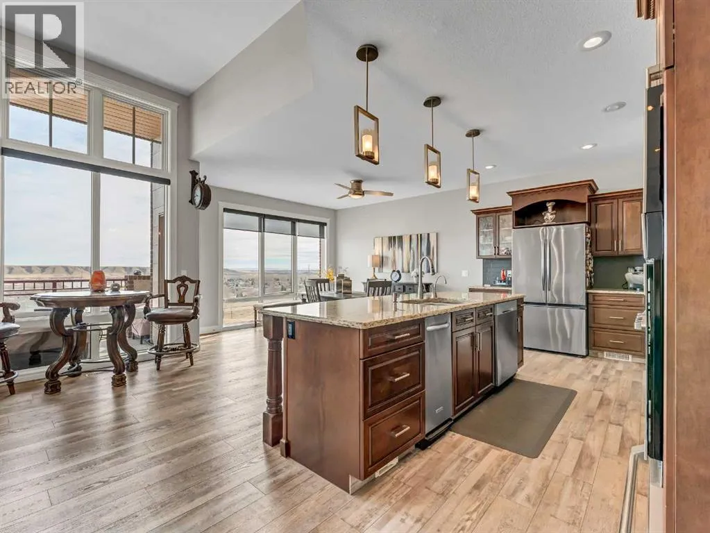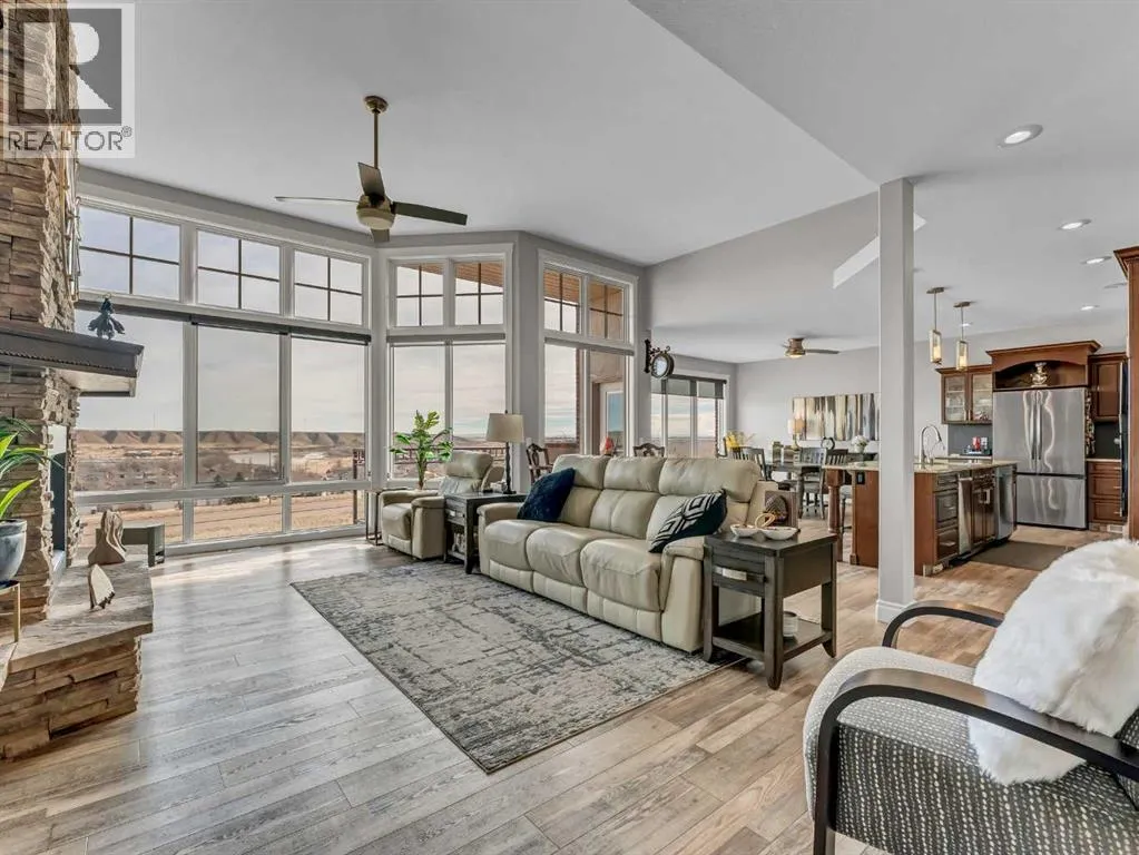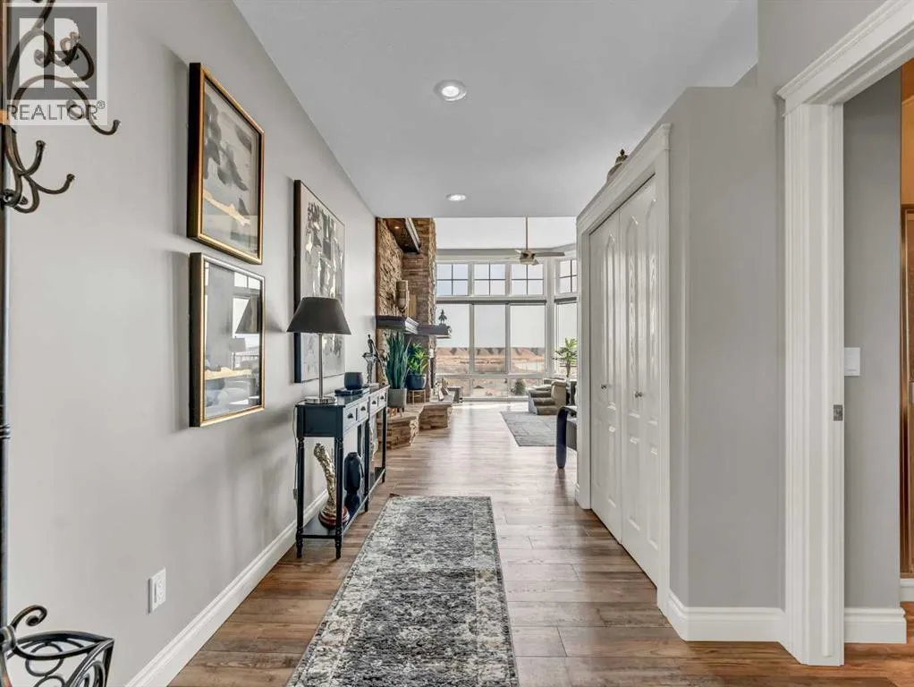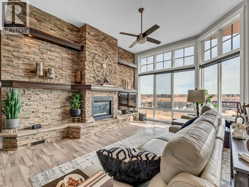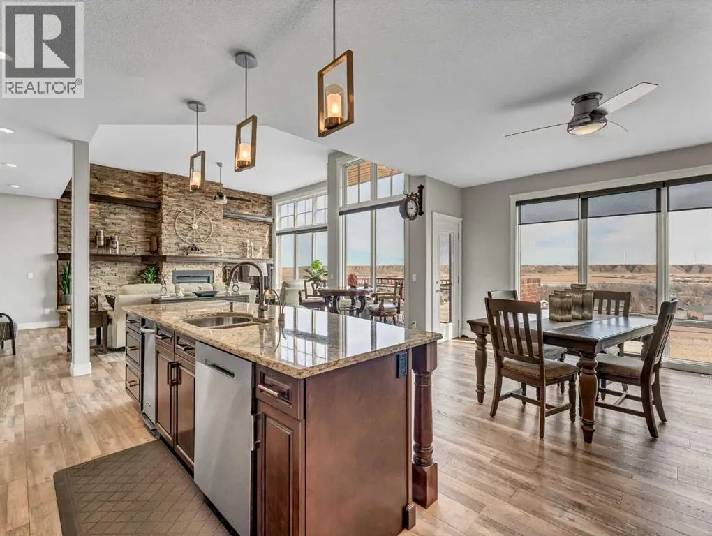 This stunning executive-style walkout bungalow offers unobstructed views of the river valley and breathtaking eastern sunrisesâpaired with extensive, high-end upgrades throughout.The main floor features soaring ceilings, a tiled entry, and a striking floor-to-ceiling stone fireplace feature wall. The beautifully updated kitchen showcases custom cabinetry, granite countertops, a walk-in pantry with additional counter space, and thoughtful design that blends function with style. A spacious bedroom and 3-piece bathroom complete the main level.The fully upgraded lower level is designed for comfort and retreat, featuring a large primary suite with a spa-like ensuite including a soaking tub, marble shower, makeup vanity with sink, and a massive walk-in closet with built-in shelving and drawers. Additional highlights include a wet bar, office nook, in-floor heating, and a second family room with walkout access to a private patio with sunshade.Luxury vinyl plank flooring, updated lighting, and fresh paint further enhance the homeâs appeal. A heated double garage with epoxy-coated floors adds both function and style. Enjoy both upper and lower outdoor spaces with a top balcony and walkout patio, offering a private setting to take in the incredible views. The seamless indoor-outdoor flow makes this home ideal for both everyday living and entertaining, all within a quiet and private setting. (id:27476)