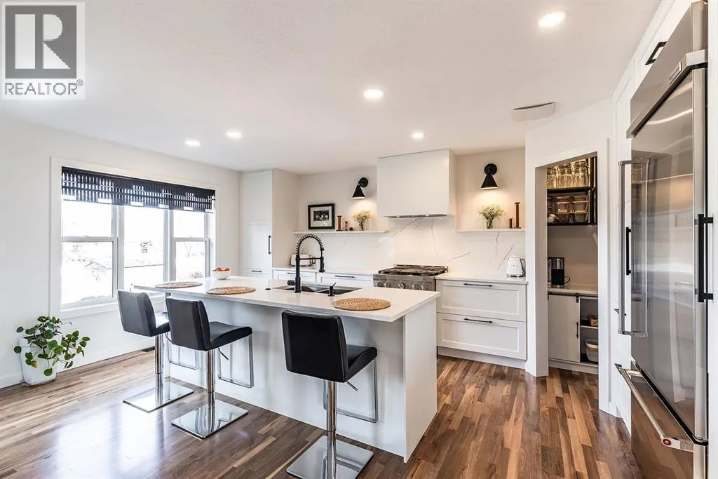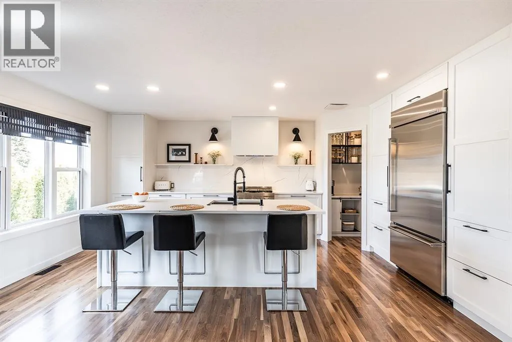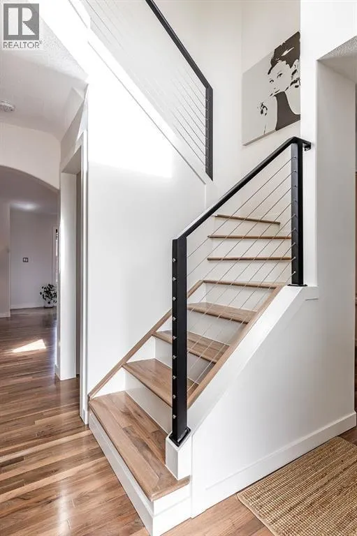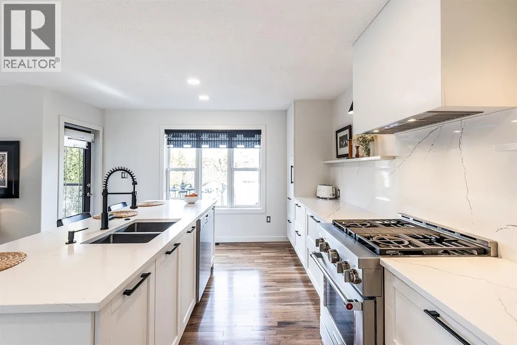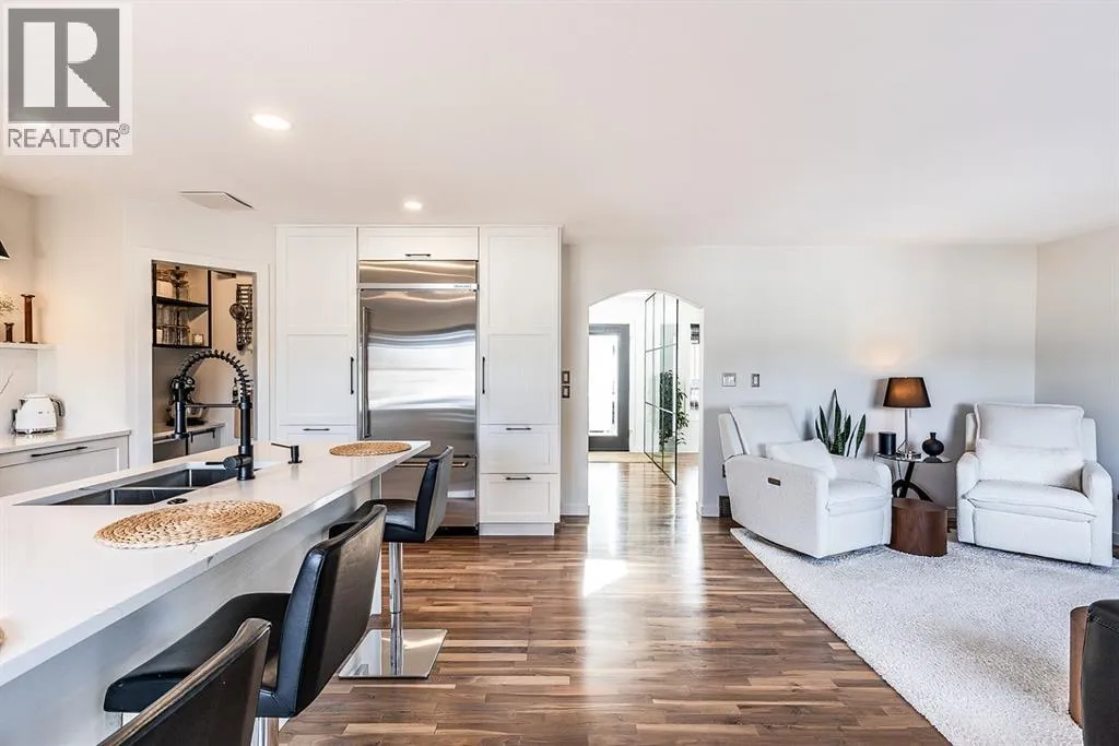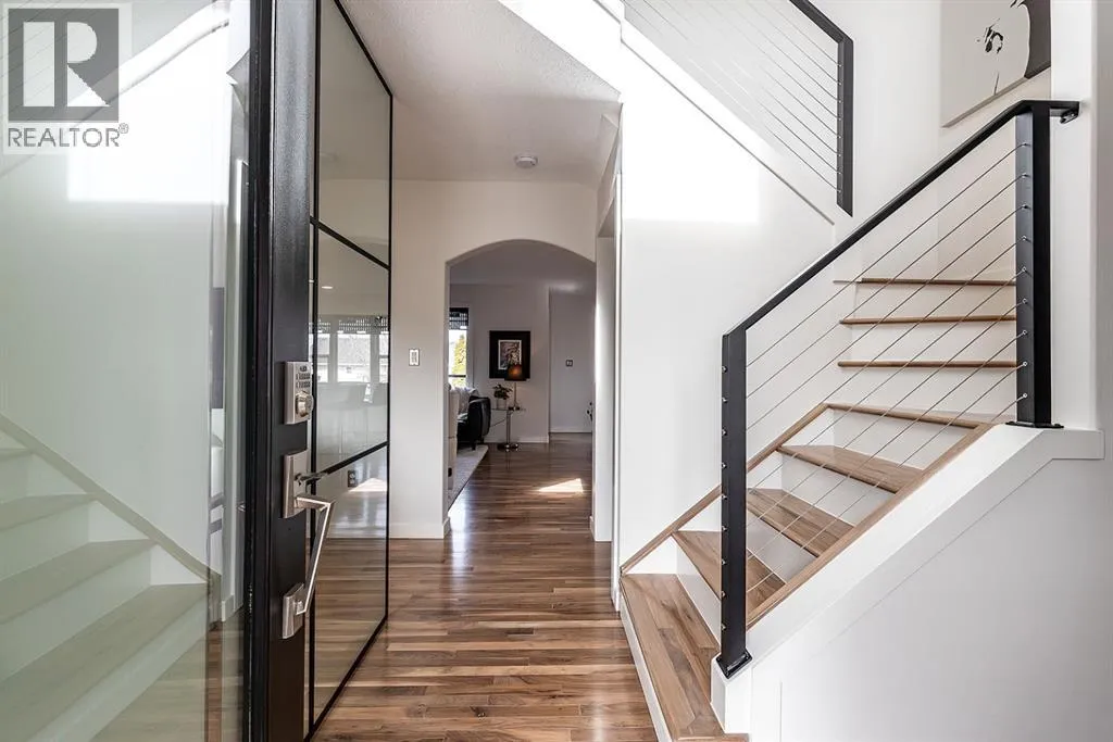 Step into refined living designed for discerning buyersâthis fully renovated home offers upscale luxury from top to bottom, inside and out. Every detail has been thoughtfully curated to create a seamless blend of modern sophistication and everyday comfort.The open-concept main floor is both minimalist and striking, featuring rich walnut hardwood flooring and a beautifully designed kitchen where quartz countertops extend effortlessly into a full-height backsplash. Sleek KitchenAid Professional stainless steel appliances are integrated into the cabinetry and matte black fixtures add a bold, contemporary edge, while the dining area is elevated by a stunning modern glass wallâcreating a bright, airy space perfect for entertaining.Upstairs, youâll find three generously sized bedrooms, including a serene primary retreat complete with a 4-piece ensuite featuring a relaxing soaker tub. An additional full bathroom ensures convenience for family or guests.The fully finished basement offers a cozy and inviting atmosphere with cork flooring and carpet underfootâideal for movie nights, family gatherings, or quiet evenings in. This level also includes a fourth bedroom and another full bathroom, providing flexibility for guests or a home office.A truly unique highlight is the double attached garage, transformed into an exceptional extension of the home. With durable epoxy flooring, new heater and new spray foamed door/side mount opener, it doubles as an incredible entertaining space while still maintaining functionality. Additionally, the RV parking is an added bonus. Outside, the backyard is a fully landscaped summer oasis designed for relaxation and enjoyment. Both the rear deck and front porch are constructed with low-maintenance composite decking, offering durability without compromising style.Perfectly located close to scenic trails, schools, shopping, and everyday amenities, this home delivers the ideal balance of luxury, lifestyle, and location. (id:27476)