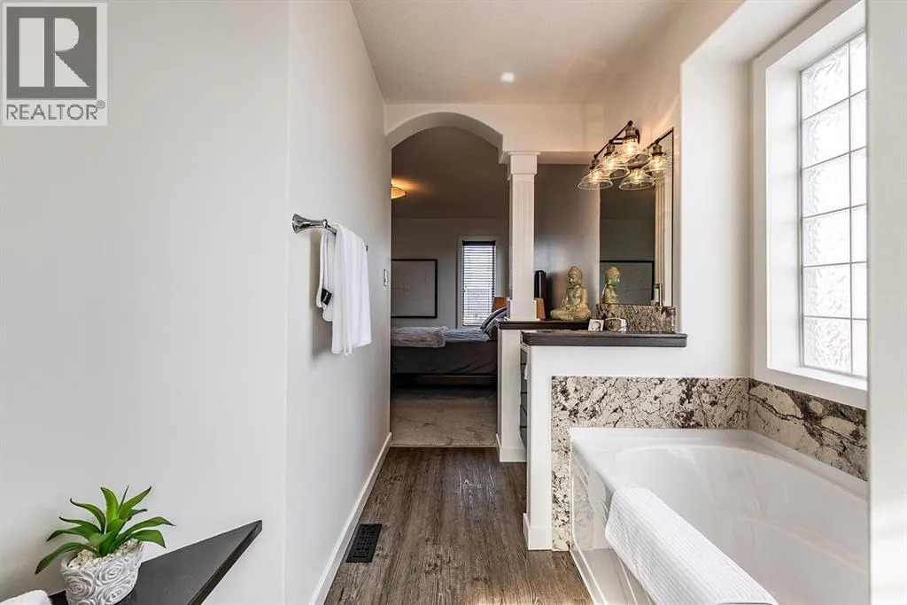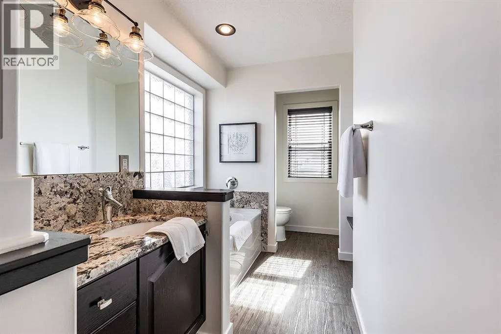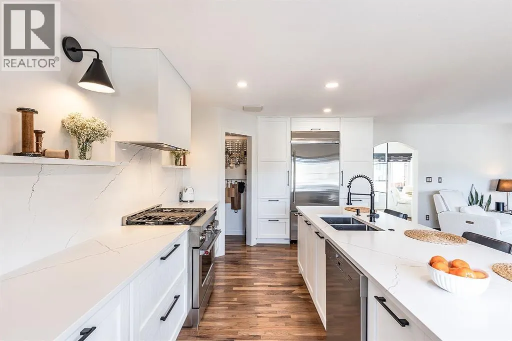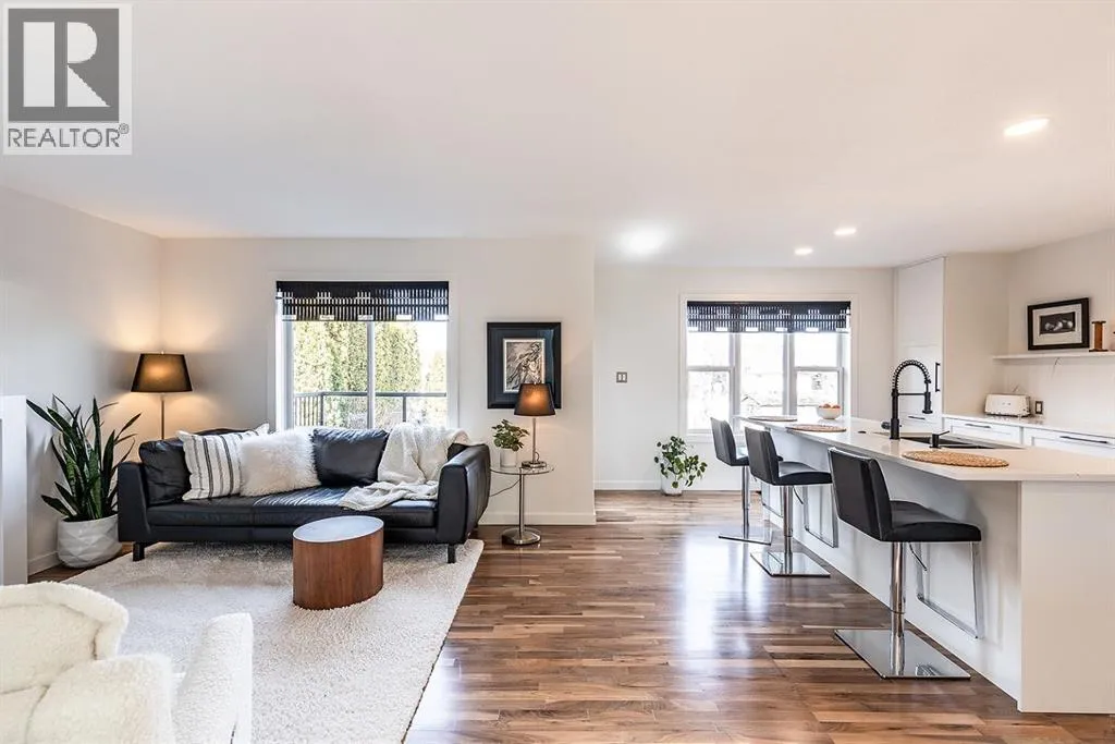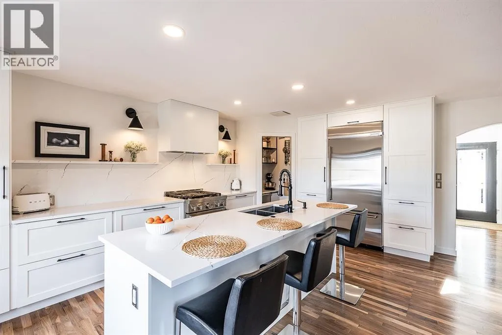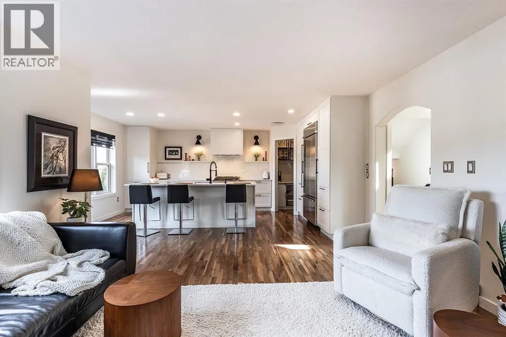 Step into refined living designed for discerning buyersâthis fully renovated home offers upscale luxury from top to bottom, inside and out. Every detail has been thoughtfully curated to create a seamless blend of modern sophistication and everyday comfort.The open-concept main floor is both minimalist and striking, featuring rich walnut hardwood flooring and a beautifully designed kitchen where quartz countertops extend effortlessly into a full-height backsplash. Sleek KitchenAid Professional stainless steel appliances are integrated into the cabinetry and matte black fixtures add a bold, contemporary edge, while the dining area is elevated by a stunning modern glass wallâcreating a bright, airy space perfect for entertaining.Upstairs, youâll find three generously sized bedrooms, including a serene primary retreat complete with a 4-piece ensuite featuring a relaxing soaker tub. An additional full bathroom ensures convenience for family or guests.The fully finished basement offers a cozy and inviting atmosphere with cork flooring and carpet underfootâideal for movie nights, family gatherings, or quiet evenings in. This level also includes a fourth bedroom and another full bathroom, providing flexibility for guests or a home office.A truly unique highlight is the double attached garage, transformed into an exceptional extension of the home. With durable epoxy flooring, new heater and new spray foamed door/side mount opener, it doubles as an incredible entertaining space while still maintaining functionality. Additionally, the RV parking is an added bonus. Outside, the backyard is a fully landscaped summer oasis designed for relaxation and enjoyment. Both the rear deck and front porch are constructed with low-maintenance composite decking, offering durability without compromising style.Perfectly located close to scenic trails, schools, shopping, and everyday amenities, this home delivers the ideal balance of luxury, lifestyle, and location. (id:27476)