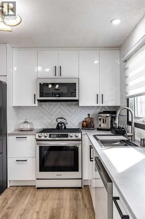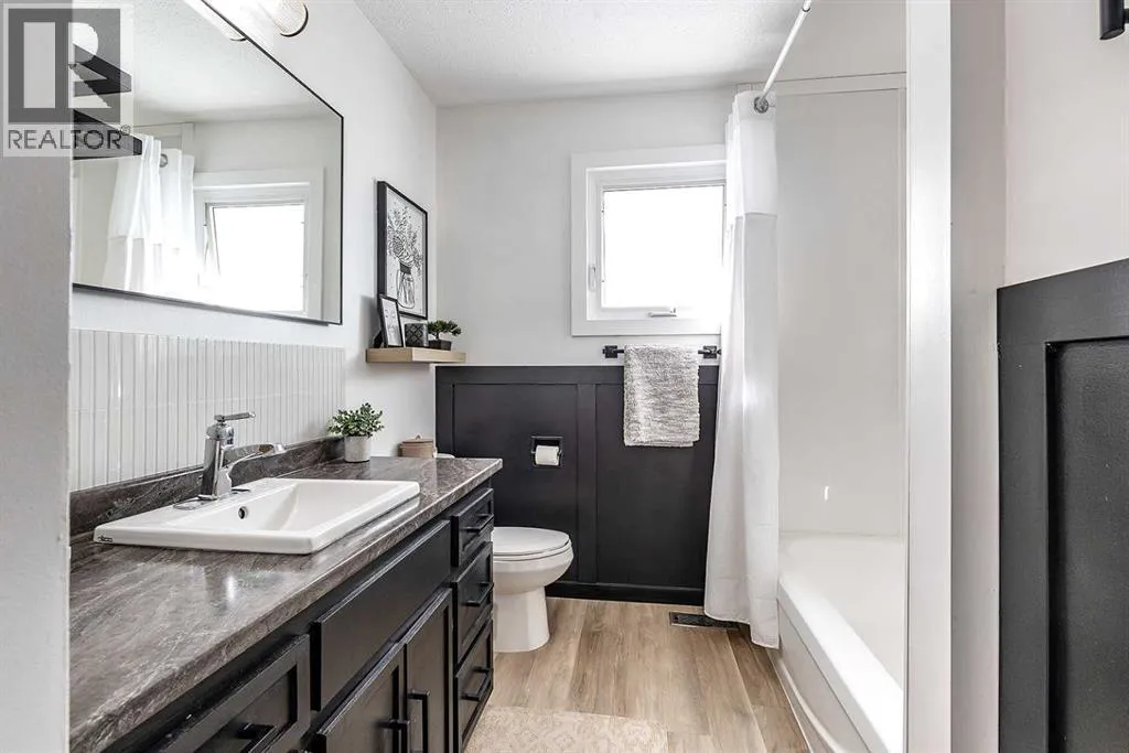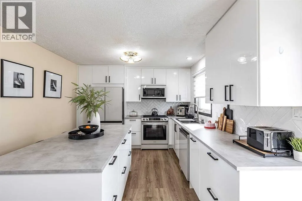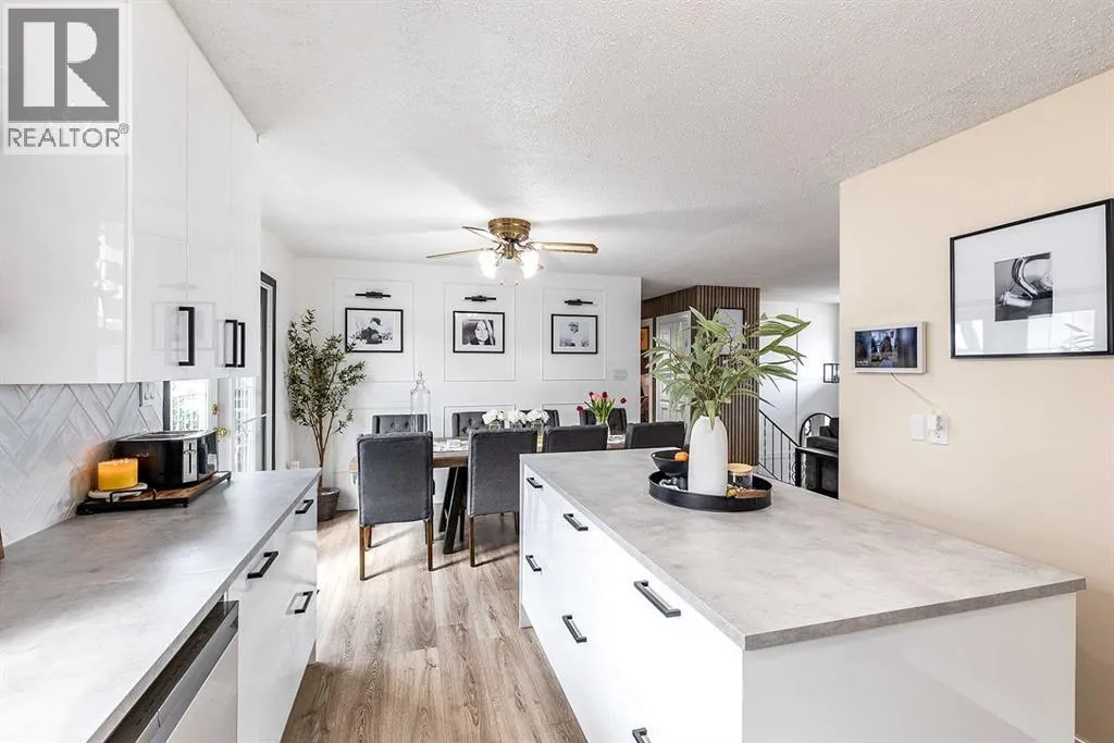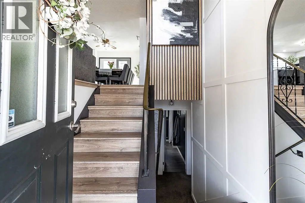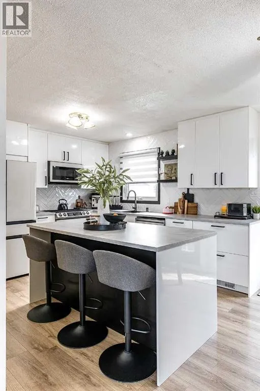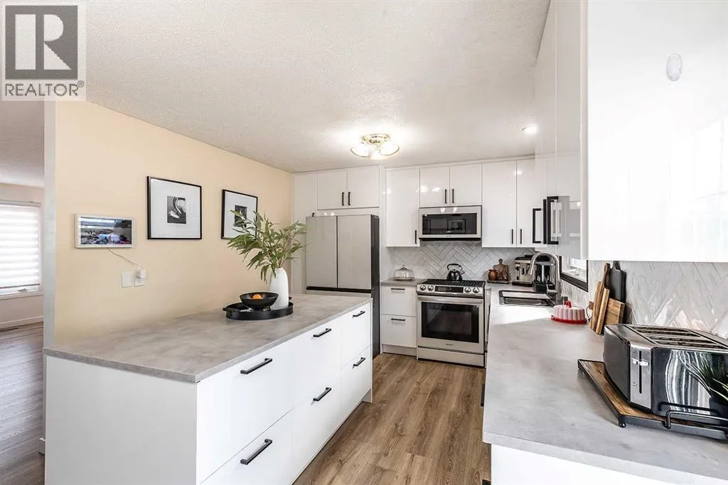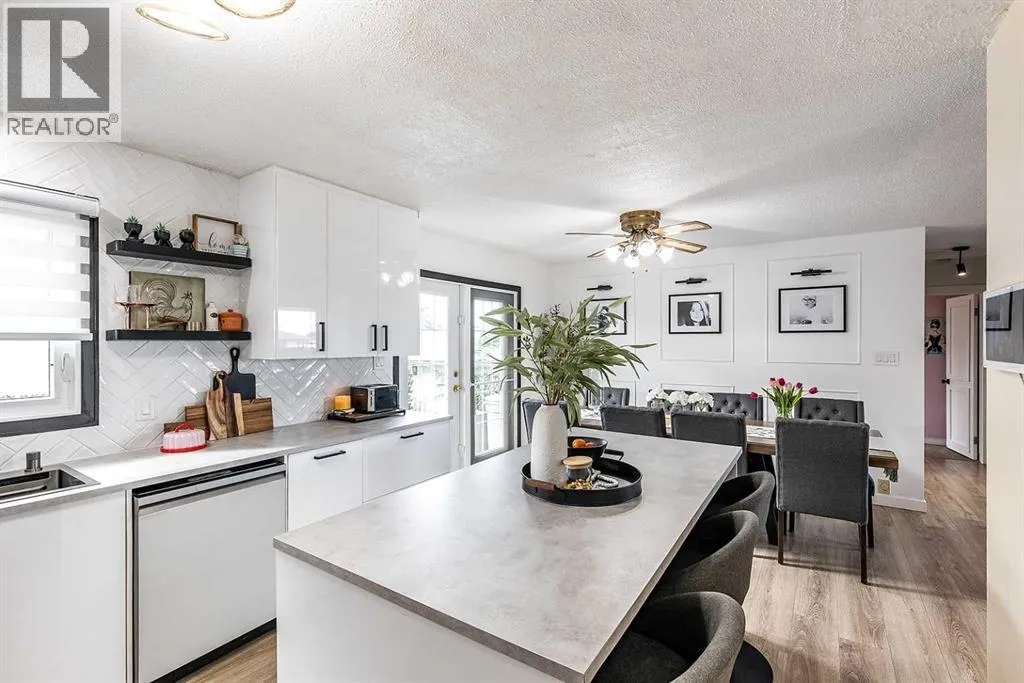 If youâve been looking for a home that feels updated, functional, and move-in ready, this corner-lot bi-level in NECH delivers. With 4 bedrooms, 2 bathrooms, and thoughtful upgrades throughout, this home is sure to impress. Step inside and youâre immediately greeted by a fresh, contemporary feel. Updated flooring and paint create a bright, cohesive space, while a striking vertical wood feature wall that adds warmth and architectural interest. The main floor offers an open-concept living and dining area, highlighted by custom built-in shelving with accent lighting and a sleek electric fireplaceâcreating a space that feels both stylish and inviting. The fully renovated kitchen is a standout, featuring crisp white cabinetry, newer appliances, and a large island with seating. Down the hall, the bedrooms are finished with timeless wainscotting details, and the updated 4 pc bathroom completes the main level. The lower level offers excellent additional living space with a spacious rec room, 2 more bedrooms, a 3 pc bathroom, and a well-designed laundry room with ample cabinetry and counter space. A separate back entrance adds convenience and flexibility. Outside, the yard is set up for both relaxation and entertaining, with a cozy deck, expansive patio area ideal for summer evenings and weekend BBQs. Underground sprinklers, a newer vinyl fence, and storage shed add to the functionality. The oversized heated single garage provides plenty of room for vehicles, storage, or hobbies, with additional space for trailer or RV parking. Located on a quiet street in a great neighbourhood, this home is just a short walk to parks, schools, the Big Marble Go Centre, and shopping amenities. All thatâs left to do is move in and start enjoying everything this home has to offer. (id:27476)