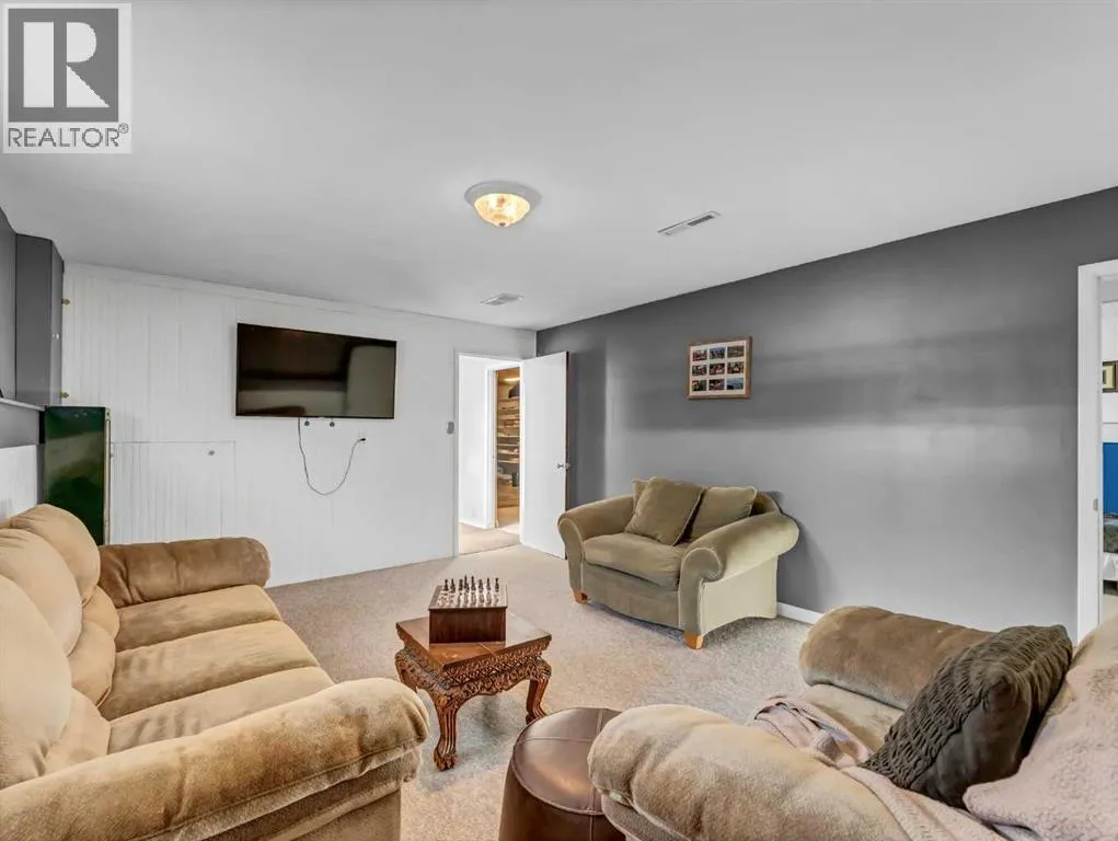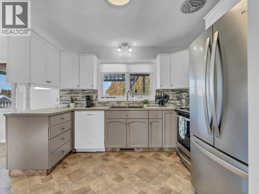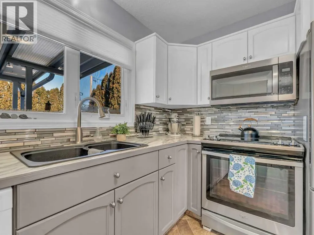 MOVE-IN READY family home in a highly desirable location, perfectly positioned with a greenbelt out front and a park directly behindâoffering privacy, views, and only one neighbouring property.From the moment you step inside, youâre welcomed by an abundance of natural light and a thoughtfully designed main floor that blends functionality with modern finishes. The spacious living room flows seamlessly into the dining area, creating an ideal space for everyday living and entertaining. A versatile flex room on the main floor adds exceptional valueâperfect for a home office, gym, reading nook, or playroom.The kitchen is both stylish and practical, featuring well-appointed cabinetry, pull-out pantry storage, and ample counter space. Large windows in the kitchen and dining area overlook the beautifully maintained backyard and park beyond, bringing the outdoors in. Step directly from the dining room onto the generous covered deckâideal for relaxing or hosting guests. The backyard also offers convenient RV parking with alley access.The main floor is complete with two well-sized bedrooms and a full 4-piece bathroom.Downstairs, the fully developed basement expands your living space with a large bedroom currently used as the primary retreat, complete with a walk-in closet. The spacious family room is perfect for gatherings, movie nights, or entertaining. An additional bedroom, a 3-piece bathroom, and abundant storage complete the lower level.Additional features include an attached garage and a rare setting with a park behind and alley access, enhancing both privacy and convenience.A true turnkey property in todayâs marketâthis home is ready for its next owners to move in and enjoy. Book your showing today. (id:27476)