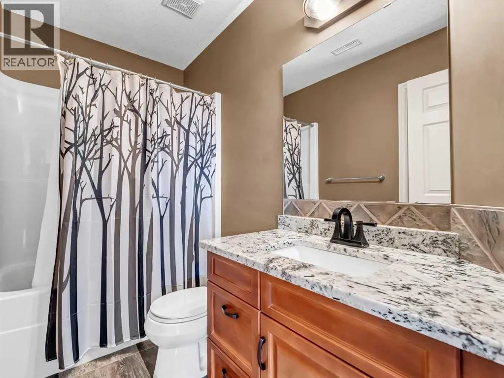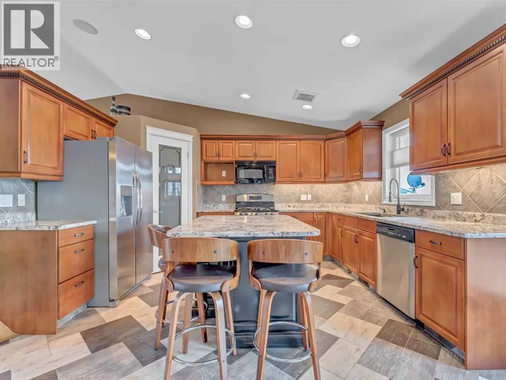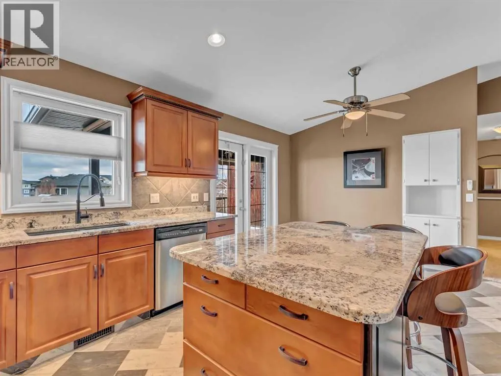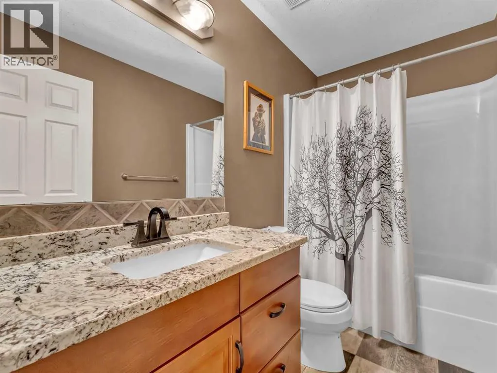 Welcome to 33 Terrace Green NE, a beautifully maintained walkout bungalow nestled in a quiet cul-de-sac with a park conveniently located just across the street. This quality-built home offers 1,309 sq ft of thoughtfully designed living space, showcasing exceptional craftsmanship and upgraded finishes throughout.The main floor features a bright, open layout highlighted by large windows that flood the home with natural light. The upgraded kitchen by Wood Visions is a standout, complete with stunning granite countertops, a corner pantry, and ample cabinetryâperfect for both everyday living and entertaining. Elegant upgraded flooring flows through the front entry, kitchen, and living room, enhancing the homeâs warm and inviting feel.This home offers two bedrooms on the main level, including a spacious primary retreat with private access to the upper deck and a 3-piece ensuite featuring a walk-in shower.The fully developed walkout lower level expands your living space with a cozy 3-way gas fireplace, entertainment area with projector and wired sound, a 4-piece bathroom, and direct access to a beautifully designed concrete patioâcomplete with a hot tub for ultimate relaxation.Additional features include a central sound system throughout, quality window coverings, and a finished, heated garage. The exterior is just as impressive, with a maintenance-free front yard, beautiful fountain out back, underground sprinklers, and mature trees providing both beauty and privacy. Enjoy outdoor living on the covered upper deck with awning or the professionally finished lower patio and driveway.This home offers the perfect blend of comfort, quality, and locationâan exceptional opportunity in a sought-after neighborhood. (id:27476)