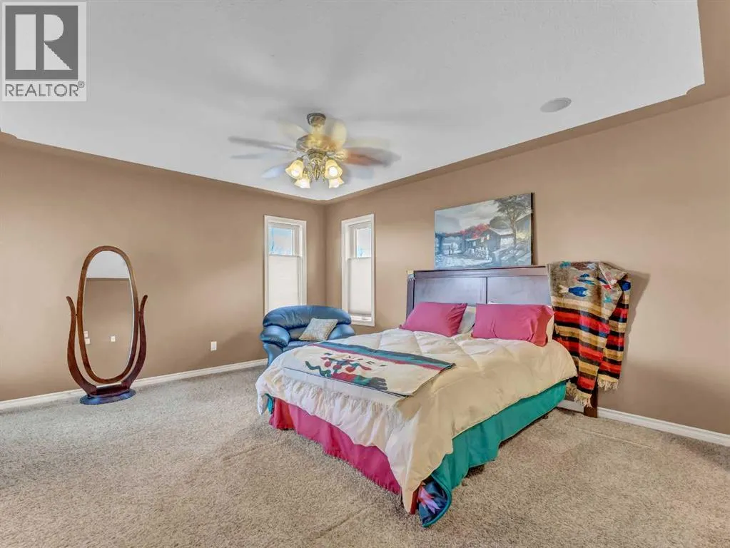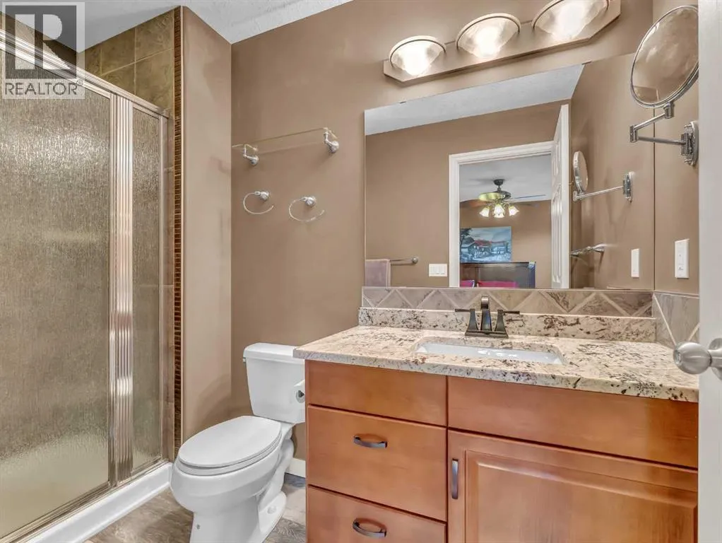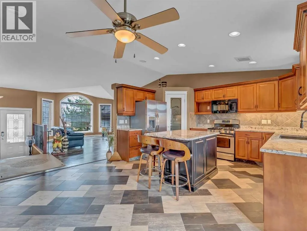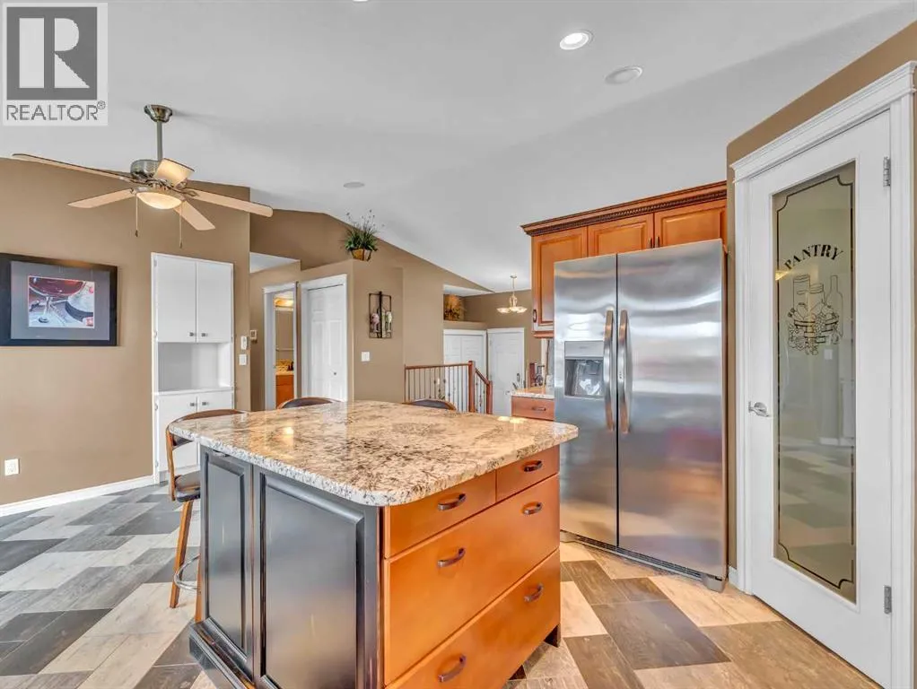 Welcome to 33 Terrace Green NE, a beautifully maintained walkout bungalow nestled in a quiet cul-de-sac with a park conveniently located just across the street. This quality-built home offers 1,309 sq ft of thoughtfully designed living space, showcasing exceptional craftsmanship and upgraded finishes throughout.The main floor features a bright, open layout highlighted by large windows that flood the home with natural light. The upgraded kitchen by Wood Visions is a standout, complete with stunning granite countertops, a corner pantry, and ample cabinetryâperfect for both everyday living and entertaining. Elegant upgraded flooring flows through the front entry, kitchen, and living room, enhancing the homeâs warm and inviting feel.This home offers two bedrooms on the main level, including a spacious primary retreat with private access to the upper deck and a 3-piece ensuite featuring a walk-in shower.The fully developed walkout lower level expands your living space with a cozy 3-way gas fireplace, entertainment area with projector and wired sound, a 4-piece bathroom, and direct access to a beautifully designed concrete patioâcomplete with a hot tub for ultimate relaxation.Additional features include a central sound system throughout, quality window coverings, and a finished, heated garage. The exterior is just as impressive, with a maintenance-free front yard, beautiful fountain out back, underground sprinklers, and mature trees providing both beauty and privacy. Enjoy outdoor living on the covered upper deck with awning or the professionally finished lower patio and driveway.This home offers the perfect blend of comfort, quality, and locationâan exceptional opportunity in a sought-after neighborhood. (id:27476)