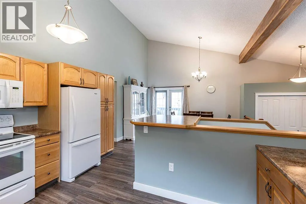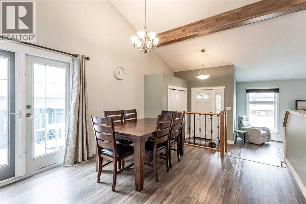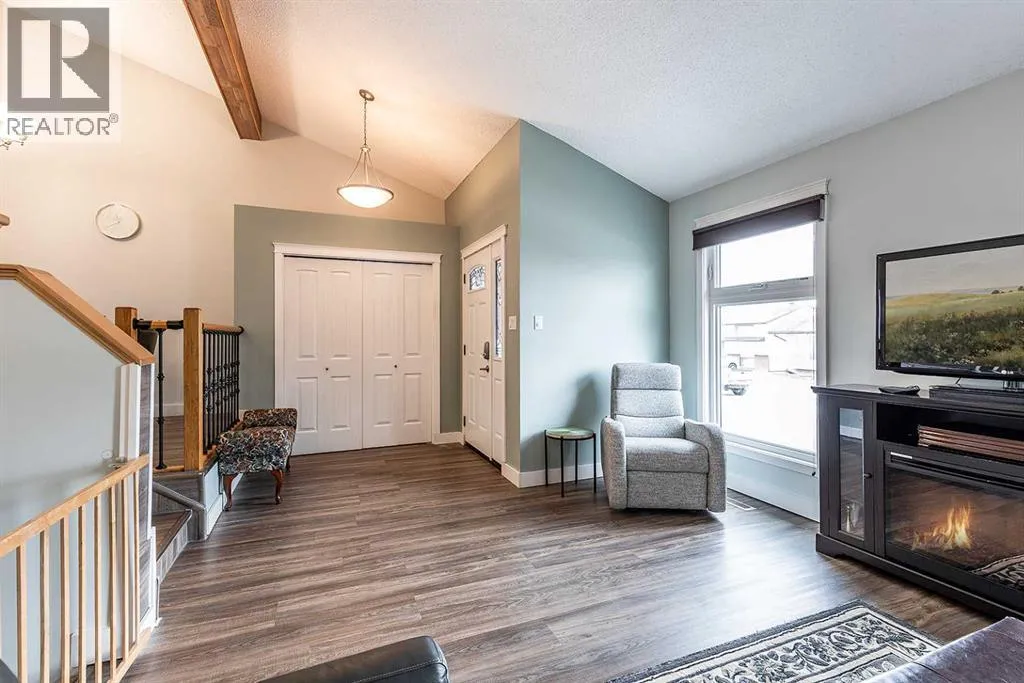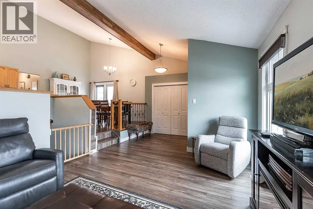 Situated in the heart of Ross Glen, near schools and the green belt, this thoughtfully UPDATED bungalow with 2 CAR GARAGE, offers huge VALUE Upgrades in one of the cityâs most prized neighbourhoods. The home has great curb appeal with the updated front exterior of faux stone and stylish siding and the rest of the house is stucco! Enjoy a large driveway with RUBBERSTONE, not only does it look sharp, it makes snow removal a breeze! Enough room for Trailer or RV PARKING! Step inside and you are welcomed by a lofty vaulted ceiling with a refinished decorative beam. The west facing home is filled with natural light. With UPGRADED energy efficient WINDOWS in 2019, youâll enjoy comfortable space and savings on utility bills. The sunken living room design provides a natural separation of space. The kitchen has updated countertops and cabinets, newer vinyl plank flooring and new carpet in the bedrooms. With 3 bedrooms on the main with a 4pc bathroom, the homesâ layout is practical for families and retirees. Just off the dining area, step out onto the patioâperfect for easy indoor-outdoor living and direct access to the backyard, complete with manual connect underground sprinklers, and newer concrete sidewalk. Downstairs, youâll find a freshly painted lower level featuring a fourth bedroom and a fully renovated bathroom with a jacuzzi tub and corner shower. A cold room offers added storage. The HEATED double detached garage is equipped with 220V power, and finished with newer insulated garage doors and liftMaster Openers, and insulated atticâwell suited for both storage and workspace needs. Outside, the rubber stone driveway and updated deck and front steps, with cork spray coating, reflect the same level of care and attention. Summary of updates include Electrolux washer (2024/25), vinyl plank flooring, baseboard, trim, interior doors, carpeting in the bedrooms, exterior doors windows, Furnace (2019), Shingles (aprox 2020) and more! Only a couple blocks from the East Glen C oulee, access to walking paths, near Medicine Hat Christian and Ross Glen School; only minutes from the mall. Donât Miss out on this oneâcontact a real estate agent today to book a showing!! (id:27476)