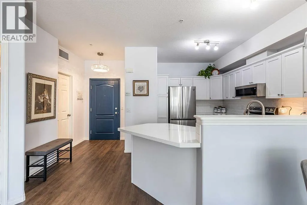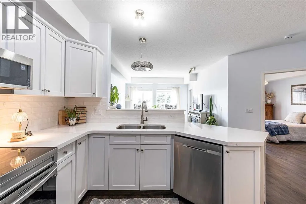 Enjoy condo living at its finest, in this updated unit with underground parking. Thereâs an easy kind of comfort in this bright condo that you notice from the moment you step inside. Sunlight pours through the large windows, illuminating the stylish vinyl plank flooring that runs cohesively throughout. The space immediately feels open, calm, and welcoming. The kitchen is stunning, with quartz countertops, white tile backsplash, updated cabinetry, and a full stainless steel appliance package. Enjoy a peaceful VIEW OF THE RIVER and of the lush courtyard from the living room and balcony.The bedroom is well-sized and quiet, offering a simple, restful retreat with the same natural light and calm feel carried through the unit. The bathroom has been nicely updated with tasteful finishes, keeping the look consistent and fresh. Just off to the side, youâll also find an in-suite laundry room with additional storage â adding everyday convenience without taking away from your living space. This unit also includes underground heated parking and a dedicated storage unit. Life at River Ridge Estates brings even more to enjoy, with access to an indoor pool, theatre room, games room, workshop, and even an underground car wash â amenities that give you flexibility and comfort right where you live. Set in a quiet, well-connected area, youâre close to river pathways with everyday essentials like shopping, dining, and service just a short drive away. Itâs a location that feels peaceful and tucked away, while still keeping you close to everything you need. Donât miss your chance to see it in person â reach out to your real estate agent to book a private showing today. (id:27476)