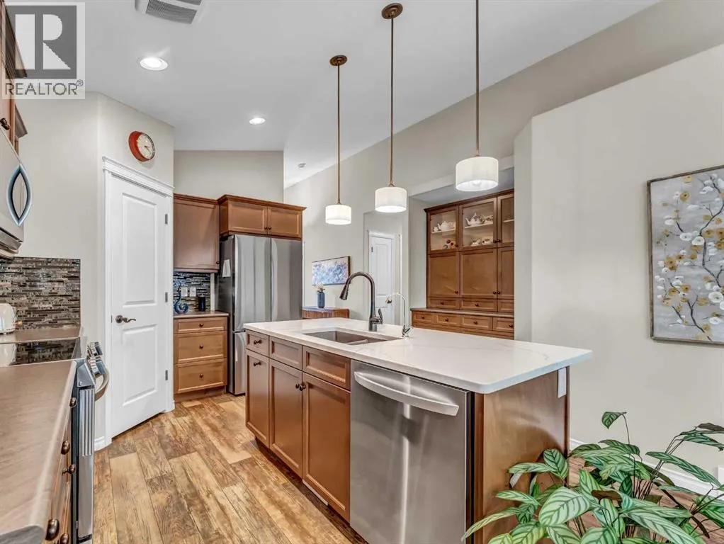Your next home awaits ! LIVE ON ONE LEVEL in this move in ready property. Enjoy the exceptional quality and condition this home provides. The open kitchen features a quartz topped island , a walk-in pantry , and ample cabinetry. All appliances are less than a year old ! The spacious dining area provides plenty of space for family gatherings. Adjacent is a cosy living room that is just the right size. The spacious primary bedroom features an ensuite with a walk-in shower, and a huge walk-in closet. There is a good sized second bedroom , another full bathroom with a tub/shower combo , and also an office with a pocket door conveniently situated near the front entry. There is laminate flooring throughout the home for easy upkeep. Excellent parking is provided by the heated, finished , and insulated attached double garage ( 22 x 29 ), as well the double front driveway. New outdoor lights recently installed as well. There is a separate laundry room (new washer and dryer) incorporated into the garage, a wash sink, a water softener, and a central vacuum system. Another huge bonus to this property is the East facing privately fenced outdoor space with a concrete patio and outdoor gas fire pit. The large planters are ready for your spring planting ideas. Located in one of Medicine Hat's premier 45+adult living communities, pets are allowed with management approval. The monthly HOA fee takes care of all landscaping and snow removal, provides use of a community clubhouse and garden area, as well as professional management. Come home to carefree living in Chartwell Gardens! (id:27476)