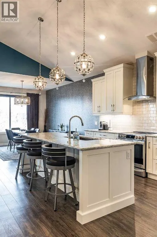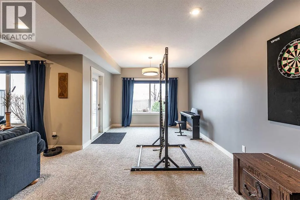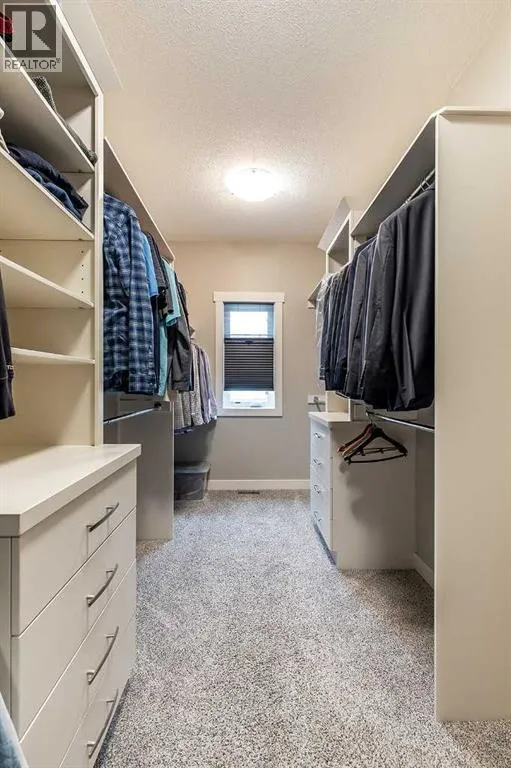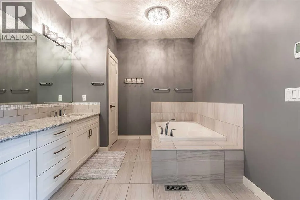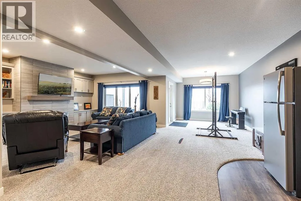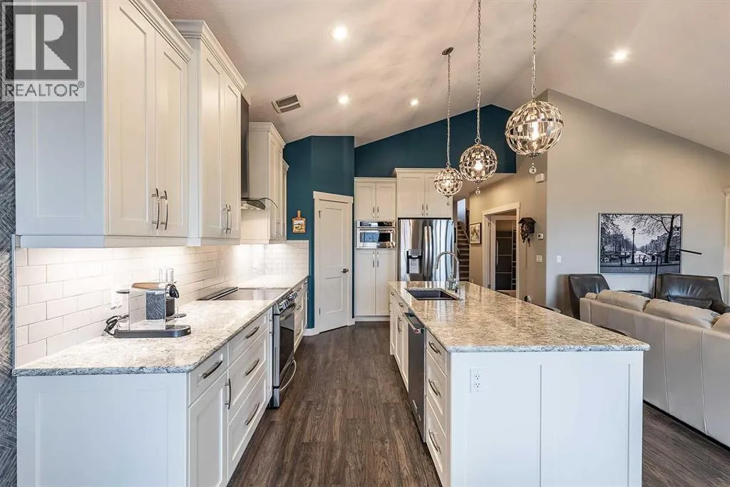 Executive walkout with high-end finishes; and a beautiful VIEW of the pond and environmental reserve. Offering 3000 sq. ft. of total living space, this home is exceptionally well kept with high-end finishes throughout. The main level features an open-concept layout with cathedral ceilings, quality flooring, custom wall detailing, and a built-in entertainment unit around a classy fireplace focal point. The kitchen is designed for both function and style, with a large island, a pantry, GORGEOUS COUNTERS, stainless premium appliancesâ¦this one checks all the boxes! The dining area opens directly onto the covered back patio, the perfect place to relax in the afternoon shade and take in the views. A main floor office with french doors adds flexibility, and the laundry/mudroom provides a seamless transition to the double attached heated garage with APOXY FLOORING, complete with built-in shelving, Husky Cabinets, and additional storage. Upstairs, the primary suite is privately positioned and well-appointed, offering a spacious walk-in closet and a modern ensuite with dual sinks, a glass shower, a soaker tub, and heated tile flooring for added comfort. The walkout basement is fully developed with a clean, open layout, two additional bedrooms, impeccable family room with more BUILT INs; gas fireplace, and a professionally finished bar with full size fridgeâideal for entertaining. Step outside to a landscaped yard with another covered patio space. The low maintenance yard is perfect for those who want to exercise their green thumb with minimal obligation to up keep. A well-executed home in a prime settingâshows extremely well; book a private showing to see for yourself! (id:27476)