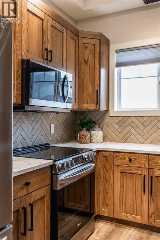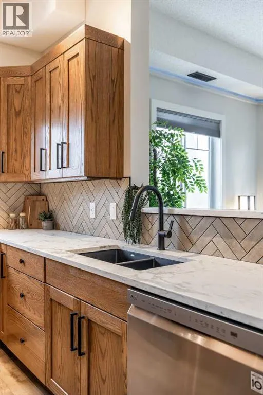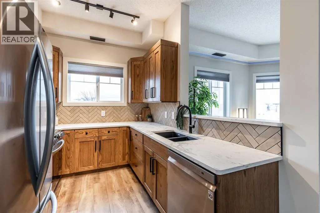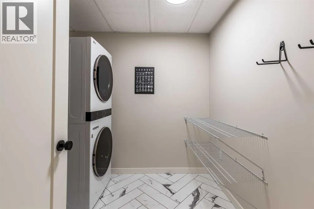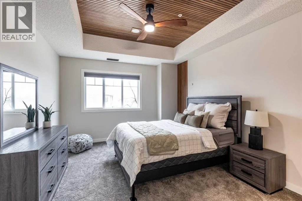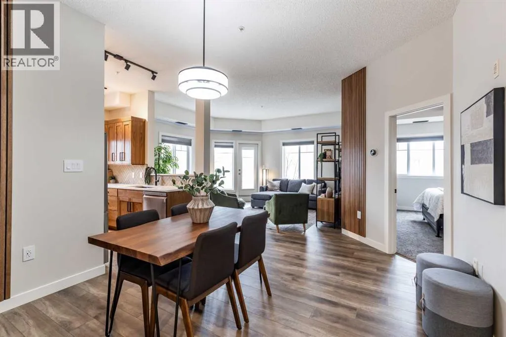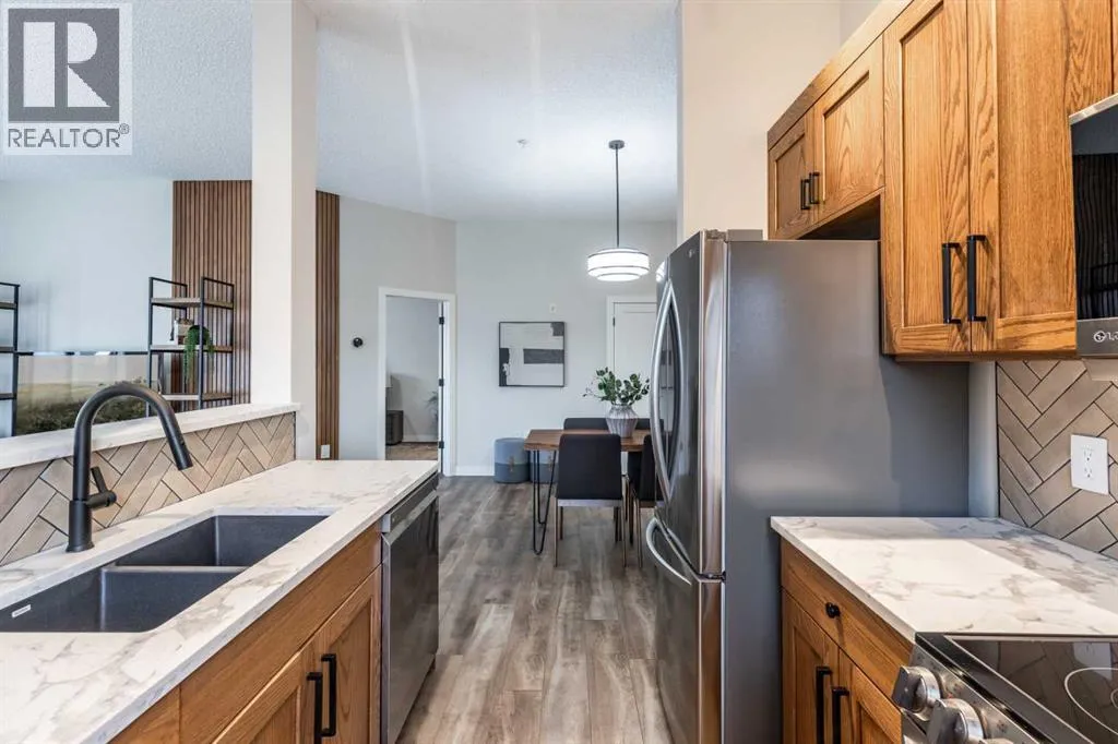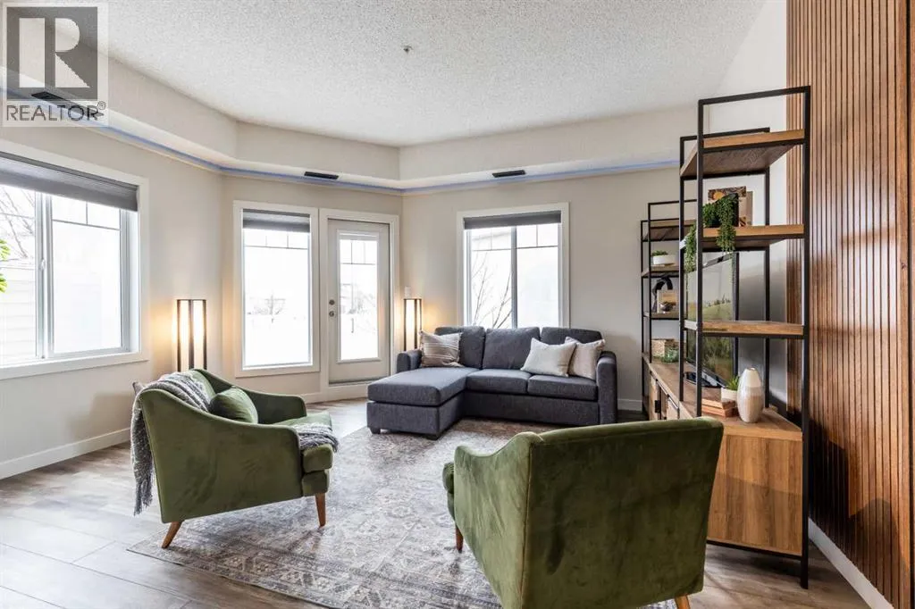 Welcome to this absolutely stunning, fully renovated executive-style main floor, corner condo unit offering just under 1,100 sq ft of beautifully designed living space in a quiet, well-maintained building. Youâll appreciate the impressive 10-foot ceilings and abundance of natural light that create an open, airy feel throughout. The entire unit has been thoughtfully updated from top to bottom, showcasing modern finishes, and a cohesive, high-end design. The kitchen is a true centerpiece, with both style and functionality in mind. Cabinets have been refinished in a rich, darker stain, brand-new soft-close hinges, and updated stainless steel appliances. Undermount lighting adds warmth and perfectly complements the honed quartz countertops, striking herringbone-pattern backsplash and upgraded black granite undermount sink. The open-concept layout flows seamlessly into the dining and living area where custom oak slat feature walls create a bold and contemporary statement. The spacious two-bedroom layout includes a beautifully updated primary retreat with a fully renovated ensuite bathroom featuring modern black fixtures, and walkthrough closet with custom shelving and dresser. The bedroom ceiling showcases custom wood accent detailing, adding character and warmth. Doors and closets throughout the unit have been upgraded, offering a blend of solid and hollow core construction for durability and efficiency. Additional features include upgraded flooring with added underlay for comfort and sound reduction, LED halo-style lighting accents, new blinds throughout, allergen/dust filtering screens on windows and so much more. Step outside to your private balconyâperfect for relaxing or enjoying your morning coffeeâwhile taking in the peaceful surroundings. The property is ideally situated adjacent to scenic walking paths, making it easy to enjoy the outdoors right from your doorstep. This quiet, well-managed building offers great amenities including a recreation room, small self -serve fitness area, and elevator access. Pet-friendly (with restrictions), itâs ideal for a variety of lifestyles. Condo fees of $547.87/month include all utilities (except cable and Wi-Fi), providing excellent value and convenience. The unit also comes with one underground titled parking stall and a dedicated storage space. Ideal for downsizers or a young professional couple, this gorgeous, one-of-a-kind condo stands out from anything else on the market. Reach out to your favorite REALTOR® today to set up a viewing! (id:27476)