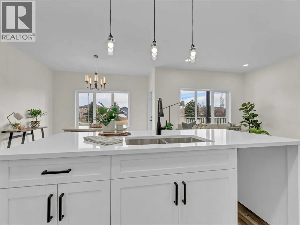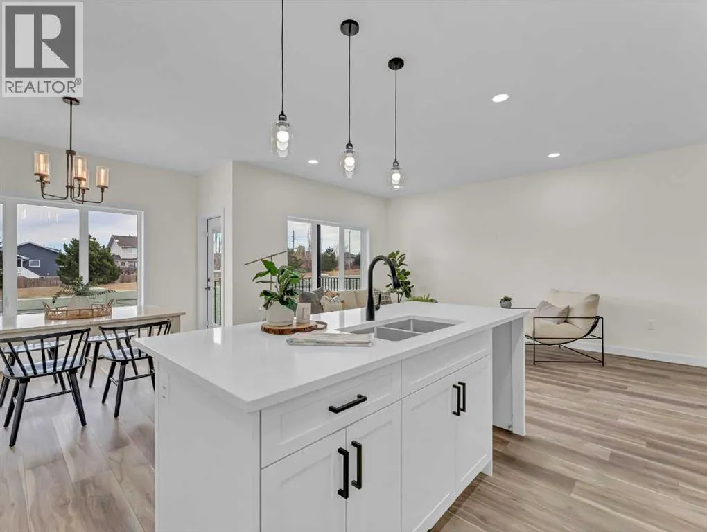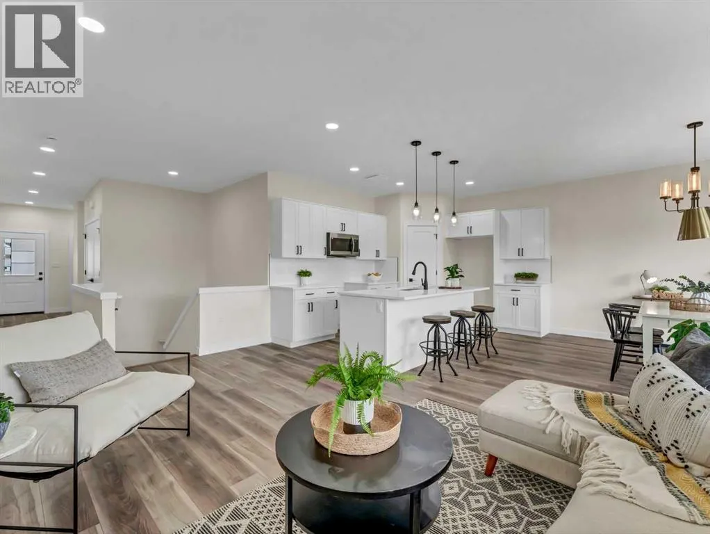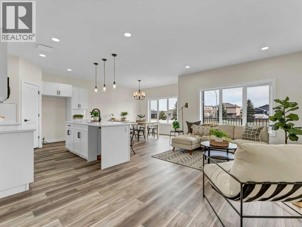 This beautiful new construction bungalow offers the perfect blend of style, comfort, and flexibility with over 1,100 sq. ft. of thoughtfully designed main floor living. Located in a growing community, this property is fully completed from top to bottom and move-in ready for a family to call it home. Step inside to a bright and open main level featuring luxury vinyl plank flooring throughout and a seamless flow between the spacious kitchen, dining, and living areasâideal for both everyday living and entertaining. The kitchen showcases crisp white cabinetry, quartz countertops, a corner pantry, and a large central island offering ample prep and storage space. The adjacent dining and living areas open onto a 12' x 8' covered deck, perfect for relaxing or enjoying easy indoor-outdoor living. The main floor is anchored by a generous primary retreat with a walk-in closet and a sleek 4-piece ensuite, along with a convenient 2-piece powder room and main floor laundry. Downstairs, the fully finished basement expands your living space with two additional bedrooms, a full bathroom, and a large family roomâideal for movie nights, guests, or a kidsâ hangout space. Completing the package is a double attached garage, providing plenty of room for vehicles, storage, and hobbies. (id:27476)