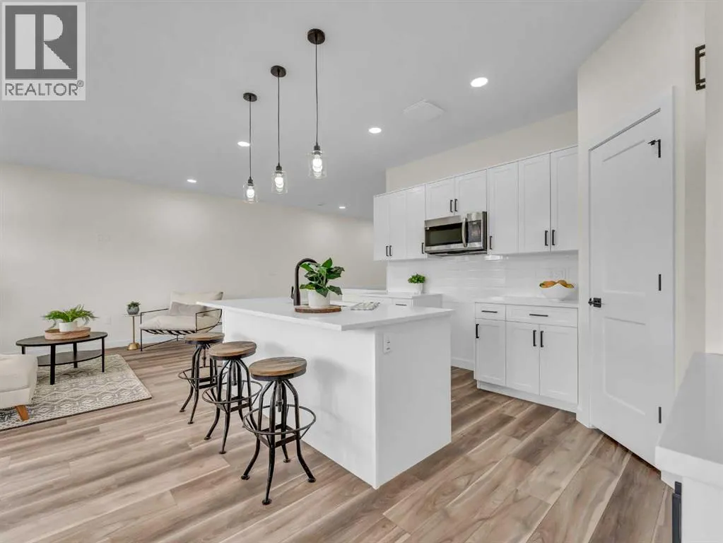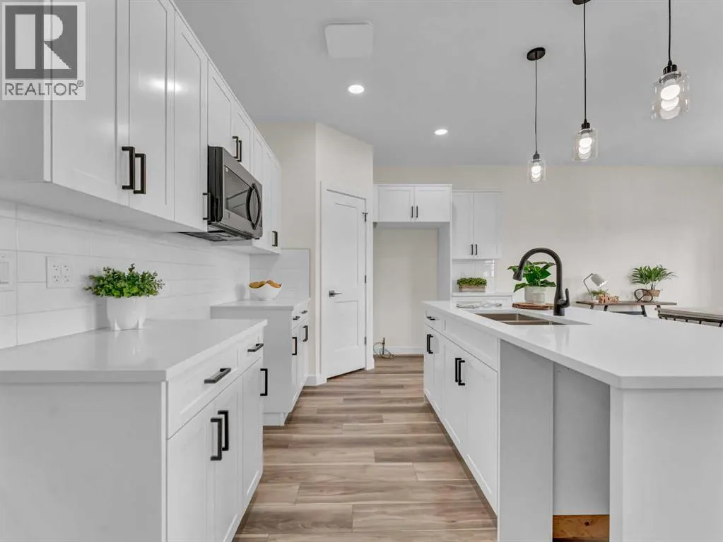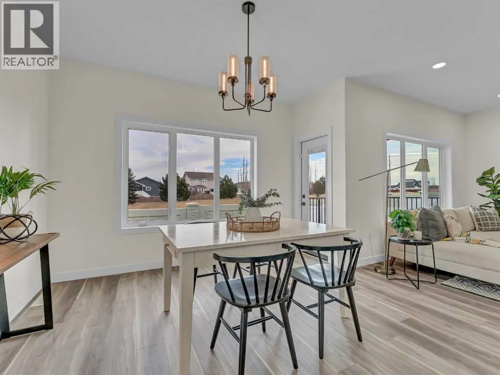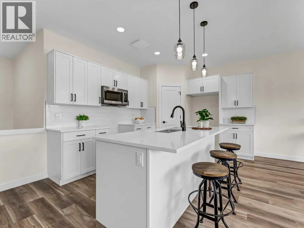 This beautiful new construction bungalow offers the perfect blend of style, comfort, and flexibility with over 1,100 sq. ft. of thoughtfully designed main floor living. Located in a growing community, this property is fully completed from top to bottom and move-in ready for a family to call it home. Step inside to a bright and open main level featuring luxury vinyl plank flooring throughout and a seamless flow between the spacious kitchen, dining, and living areasâideal for both everyday living and entertaining. The kitchen showcases crisp white cabinetry, quartz countertops, a corner pantry, and a large central island offering ample prep and storage space. The adjacent dining and living areas open onto a 12' x 8' covered deck, perfect for relaxing or enjoying easy indoor-outdoor living. The main floor is anchored by a generous primary retreat with a walk-in closet and a sleek 4-piece ensuite, along with a convenient 2-piece powder room and main floor laundry. Downstairs, the fully finished basement expands your living space with two additional bedrooms, a full bathroom, and a large family roomâideal for movie nights, guests, or a kidsâ hangout space. Completing the package is a double attached garage, providing plenty of room for vehicles, storage, and hobbies. (id:27476)