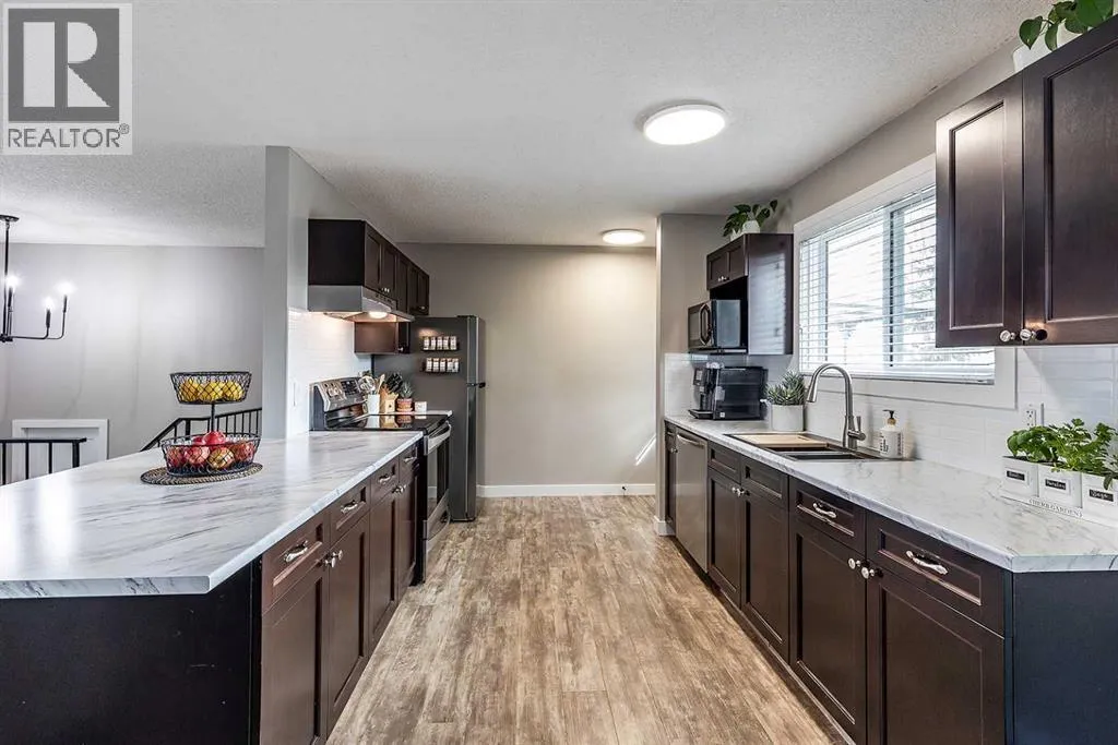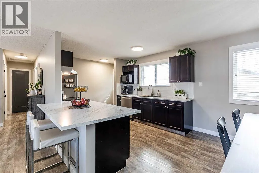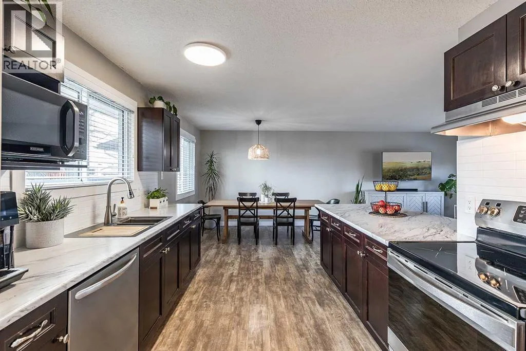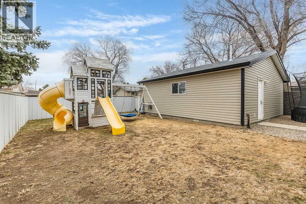 Welcome to this beautifully updated bi-level, tucked away on a quiet street in NECH. From the moment you arrive, youâll appreciate the inviting curb appealâfeaturing a charming blue front door, low-maintenance landscaping, and a semi-circular driveway offering excellent parking and convenience. Step inside to a bright and thoughtfully updated main floor. The open layout flows seamlessly into the dining area and a refreshed kitchen, complete with updated cabinetry (including pull-outs), new countertops, backsplash, and a cozy counter-height seating areaâperfect for morning coffee or casual meals. The main level offers 2 bedrooms and a stylish 4 pc bathroom. One of the bedrooms features a delightful reading nook, creating a special and functional space for kids. Downstairs, the fully finished basement expands your living space with a large rec room, 2 additional bedrooms, a 3 pc bathroom, and laundry and storage areas. Enjoy outdoor living in the backyard with a covered deck and a playset, making it a great space for relaxing or entertaining. The newer double detached garage is a standout feature, complete with radiant heat. Additional updates include newer windows and exterior doors, updated flooring and paint, new interior doors and trim, and a newer washer and dryer. Tinted west-facing front windows upstairs help keep the home cooler during the summer months. Located close to the Big Marble Go Centre, shopping, and amenities, this home offers the perfect blend of comfort, style, and convenience. (id:27476)